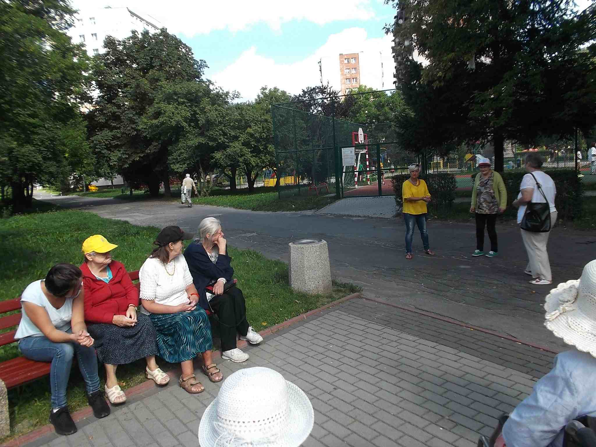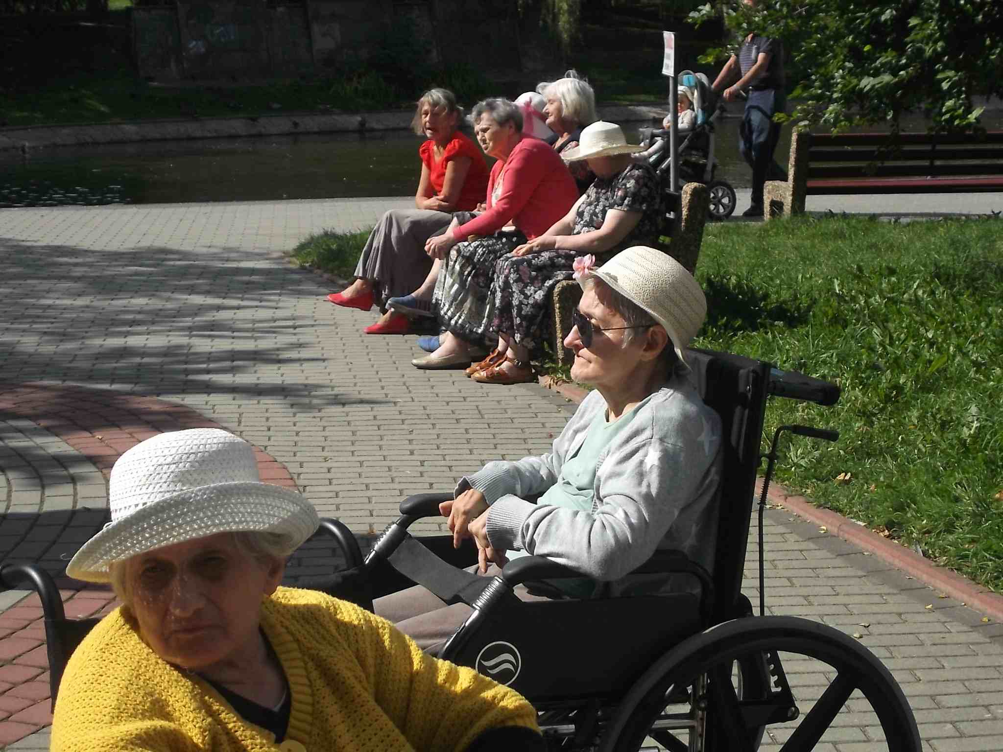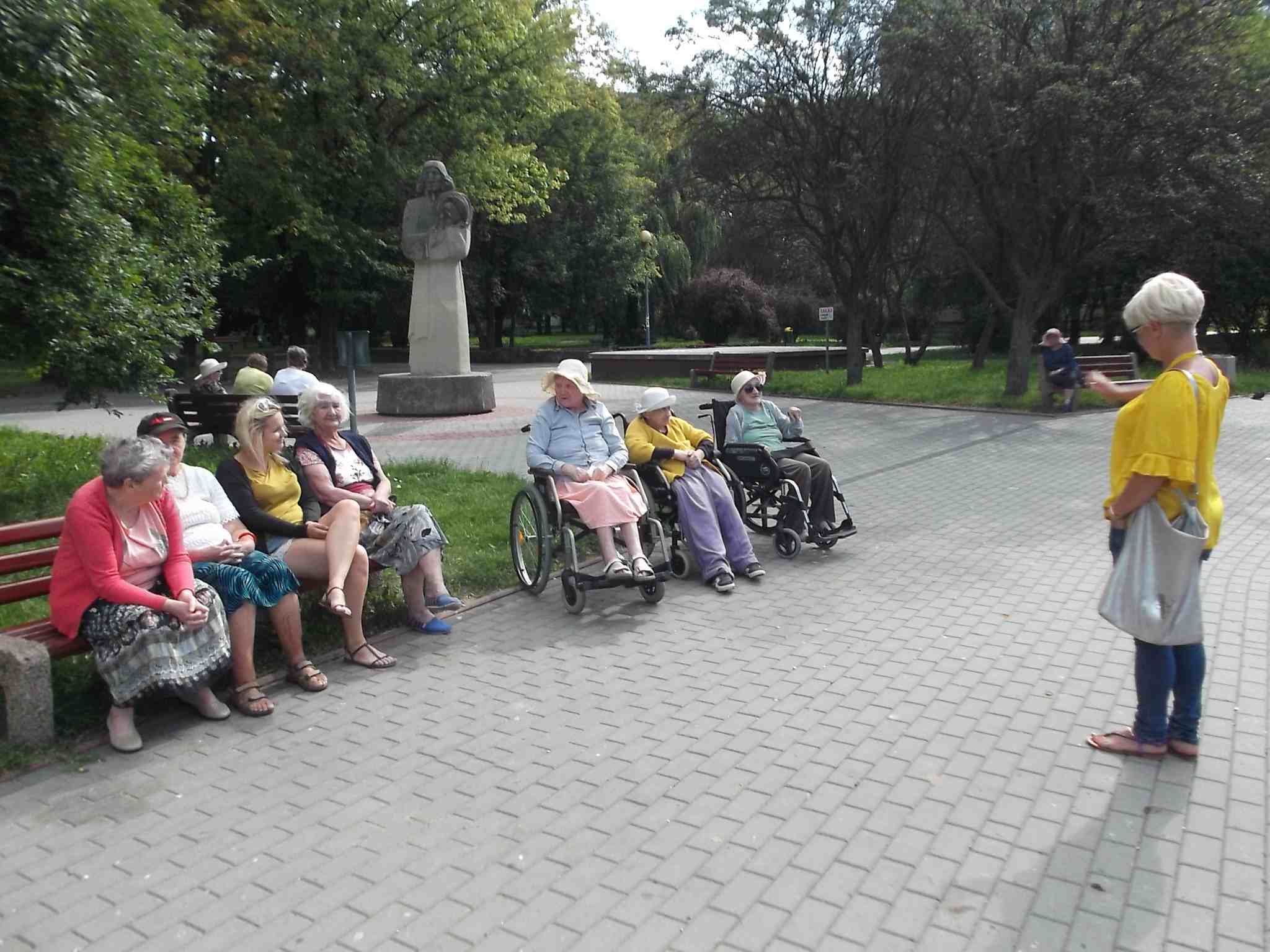 Wybraliśmy się większą grupą na skwer przy ul. Bohaterów Warszawy pokarmić kaczki przy fontannie. Mieszkanki bardzo lubią nasze wspólne spacery!