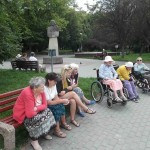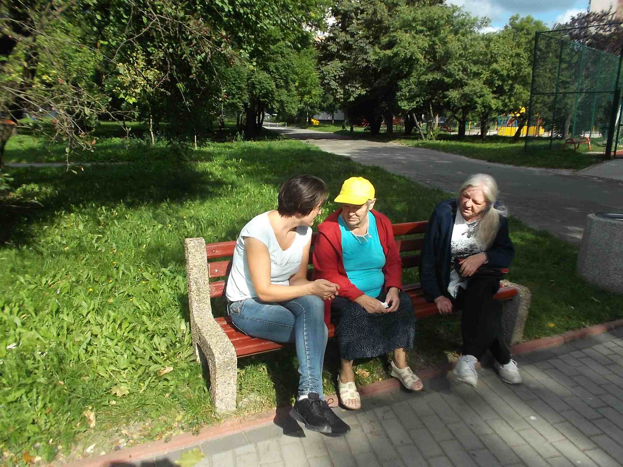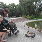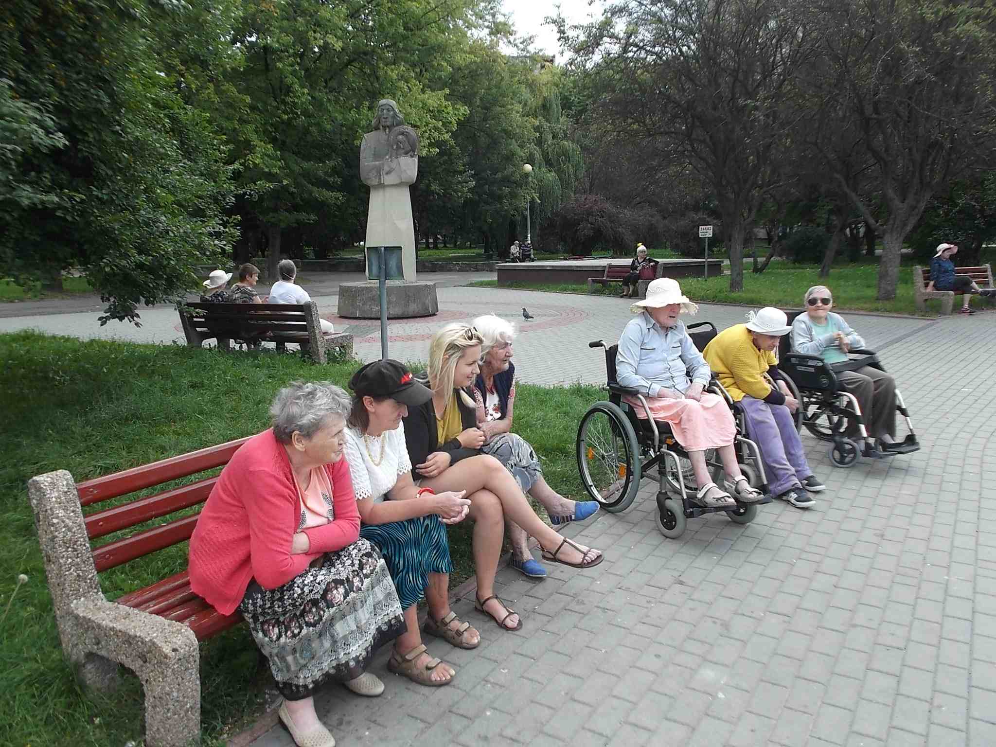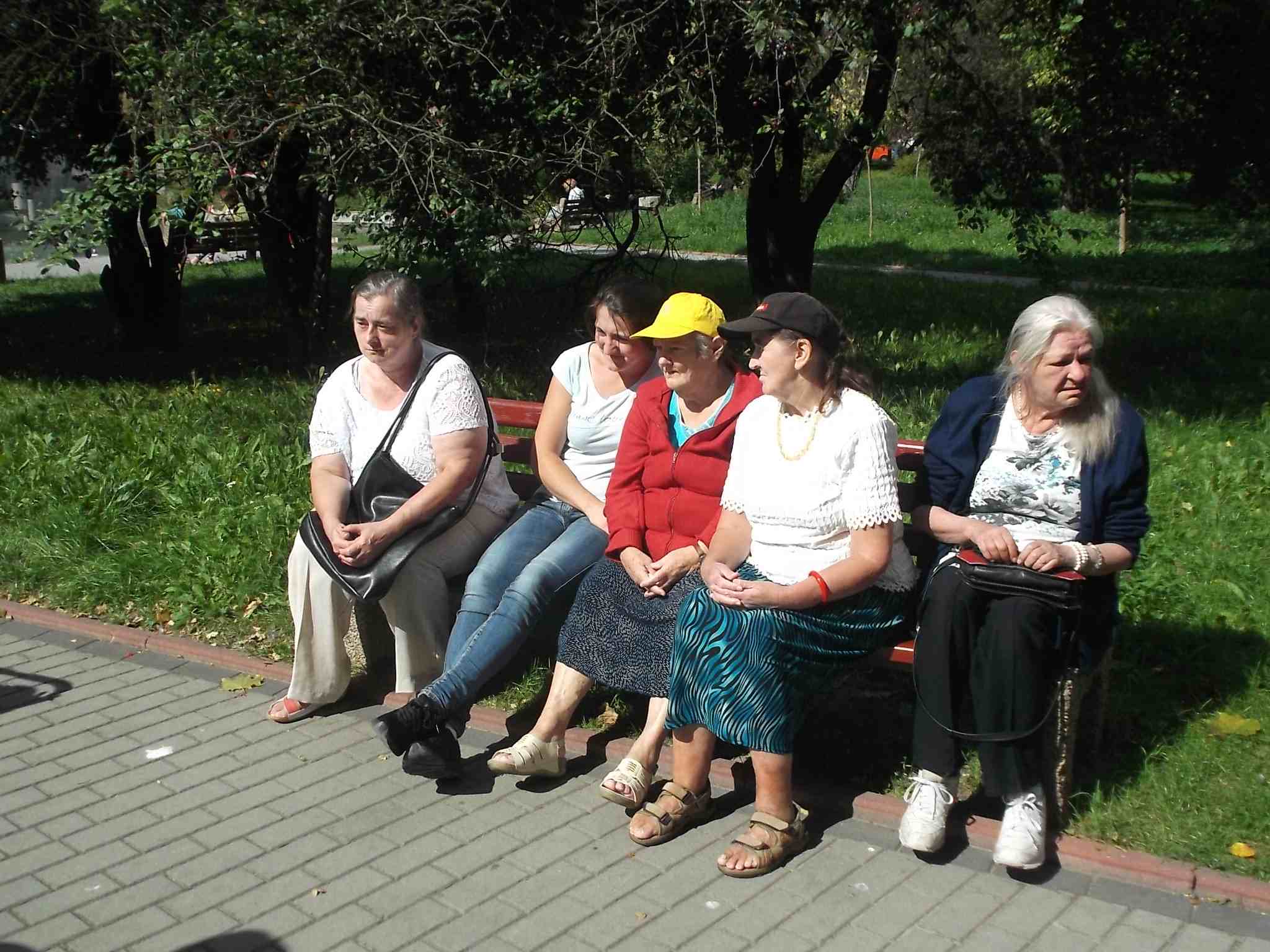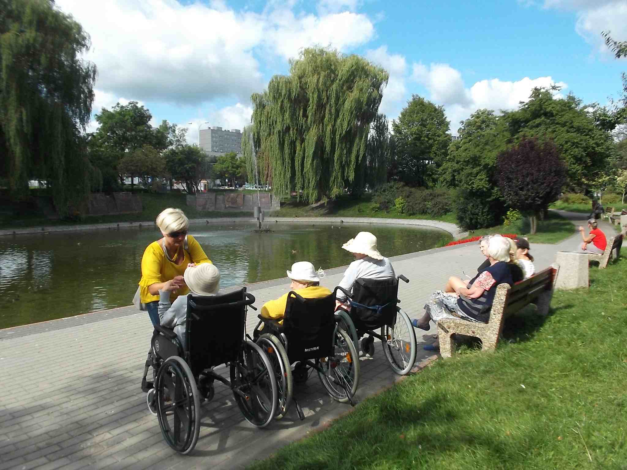 Wybraliśmy się większą grupą na skwer przy ul. Bohaterów Warszawy pokarmić kaczki przy fontannie. Mieszkanki bardzo lubią nasze wspólne spacery!