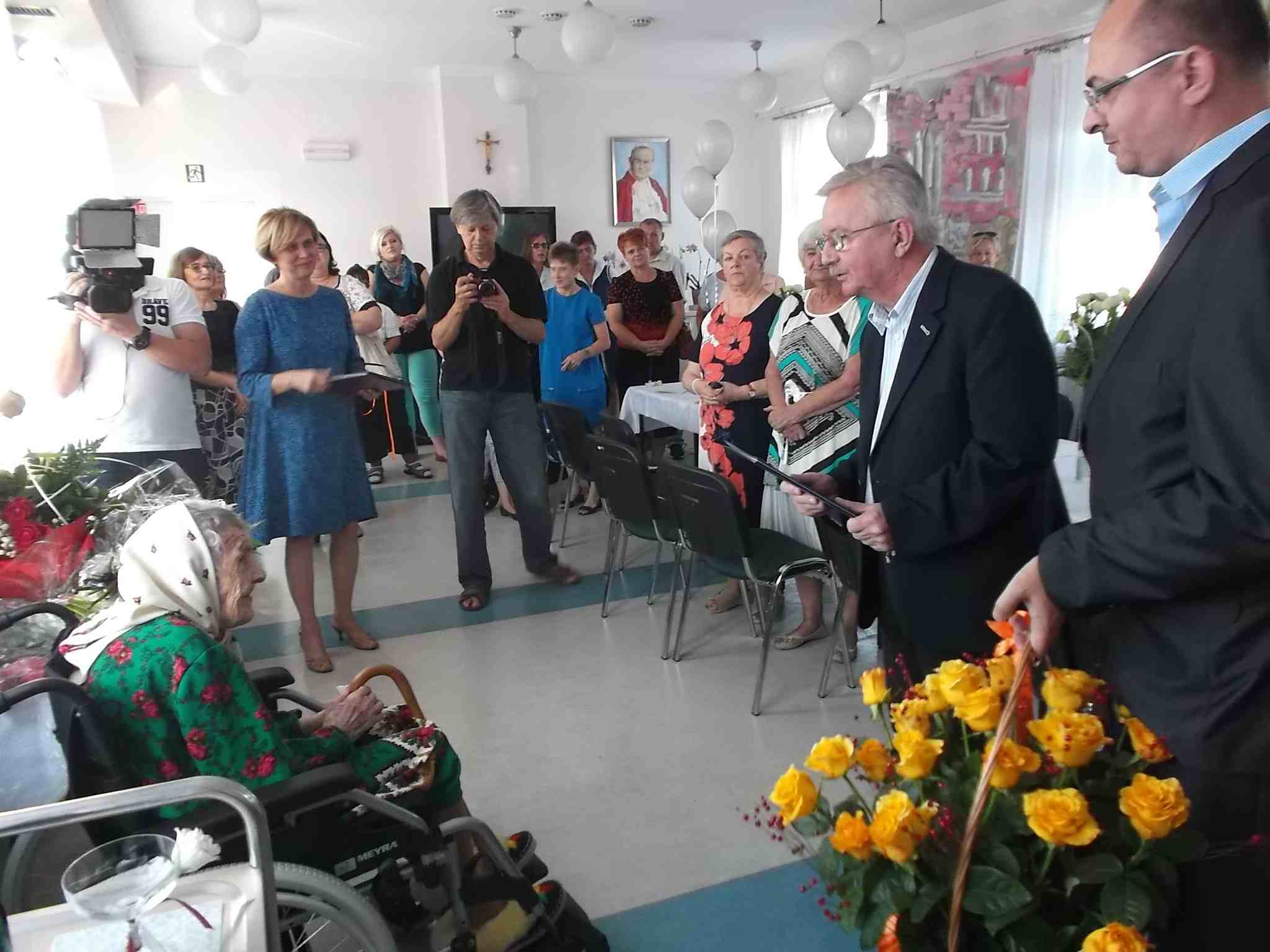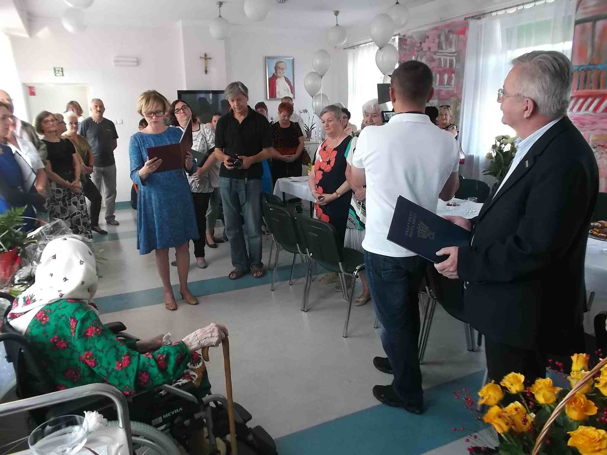Z okazji setnych urodzin Pani Anieli Maleszy w naszym Domu odbyła się uroczystość, podczas której Jubilatka odebrała życzenia od licznie zgromadzonych gości, w tym przedstawicieli władz Urzędu Miasta Kielce.