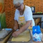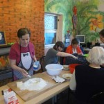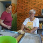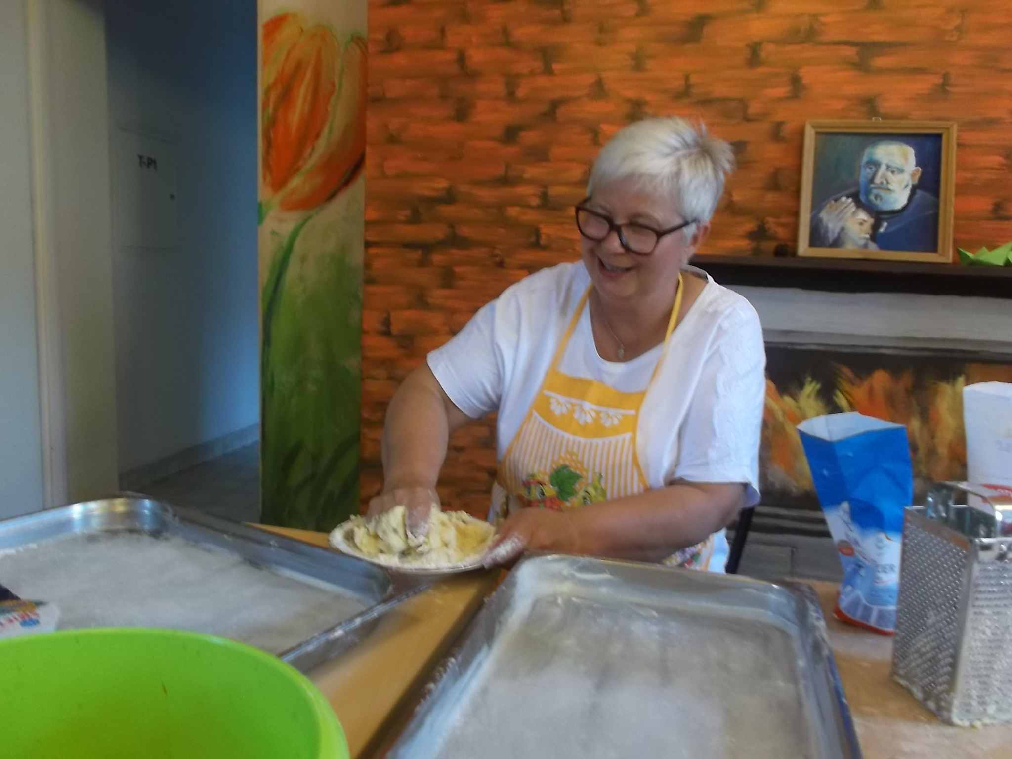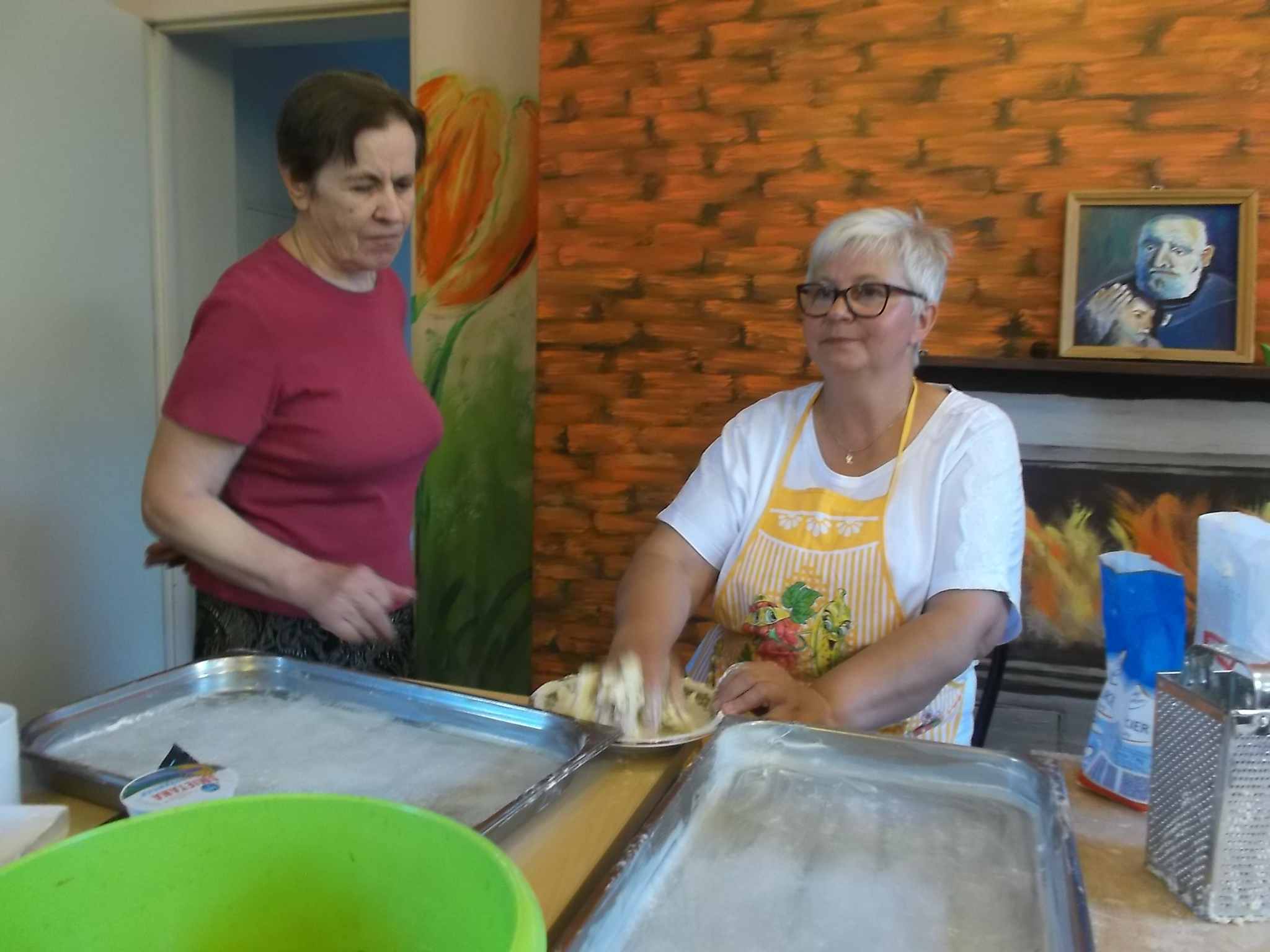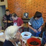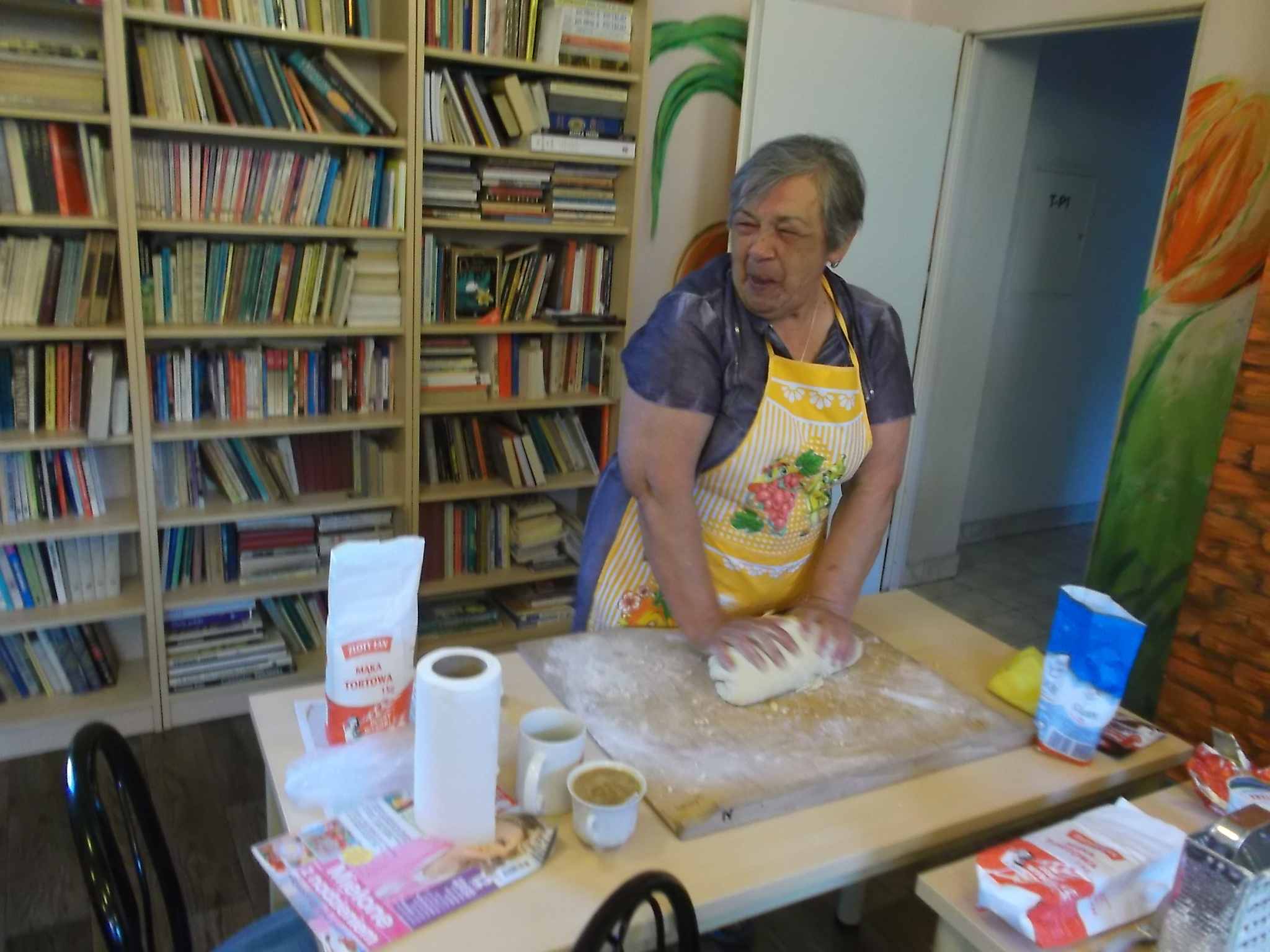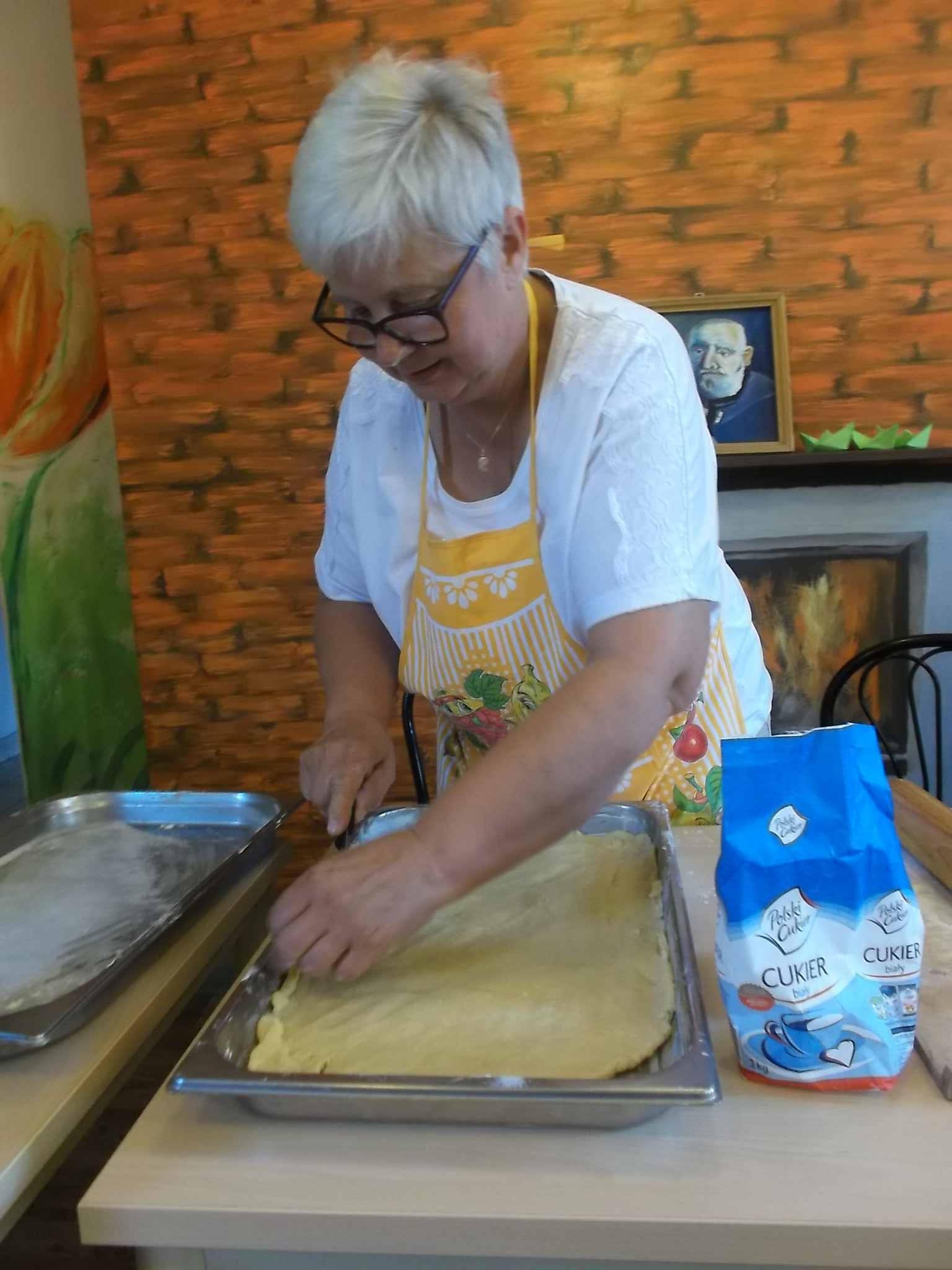 Mieszkanki przygotowały na zajęciach kulinarnych dwa ciasta ze śliwkami: kruche i drożdżowe. Każdy na miarę swoich możliwości mógł włączyć się w prace w kawiarence, np. przy przygotowaniu owoców. Do konsumpcji mieliśmy jeszcze więcej ochotników – nasze panie po raz kolejny dały popis kulinarnych umiejętności!