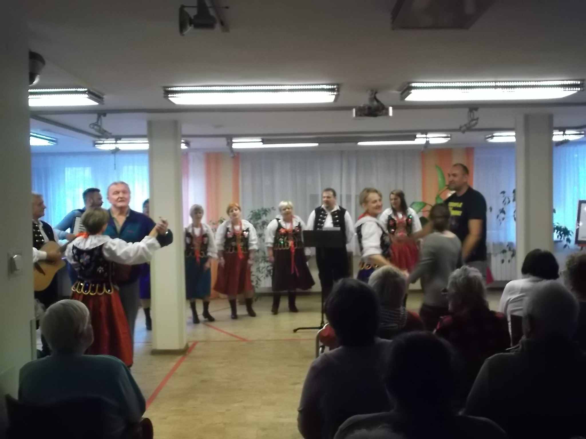 W dn. 29.09.2016 skorzystaliśmy z zaproszenia mieszkańców DPS im. Jana Pawła II i wzięliśmy udział w występie zespołu ludowego Smykovia. Zespół porwał publiczność do wspólnej zabawy – nie brakowało chętnych i do śpiewu i do tańca! Nasze mieszkanki bardzo cenią ludowy repertuar!
