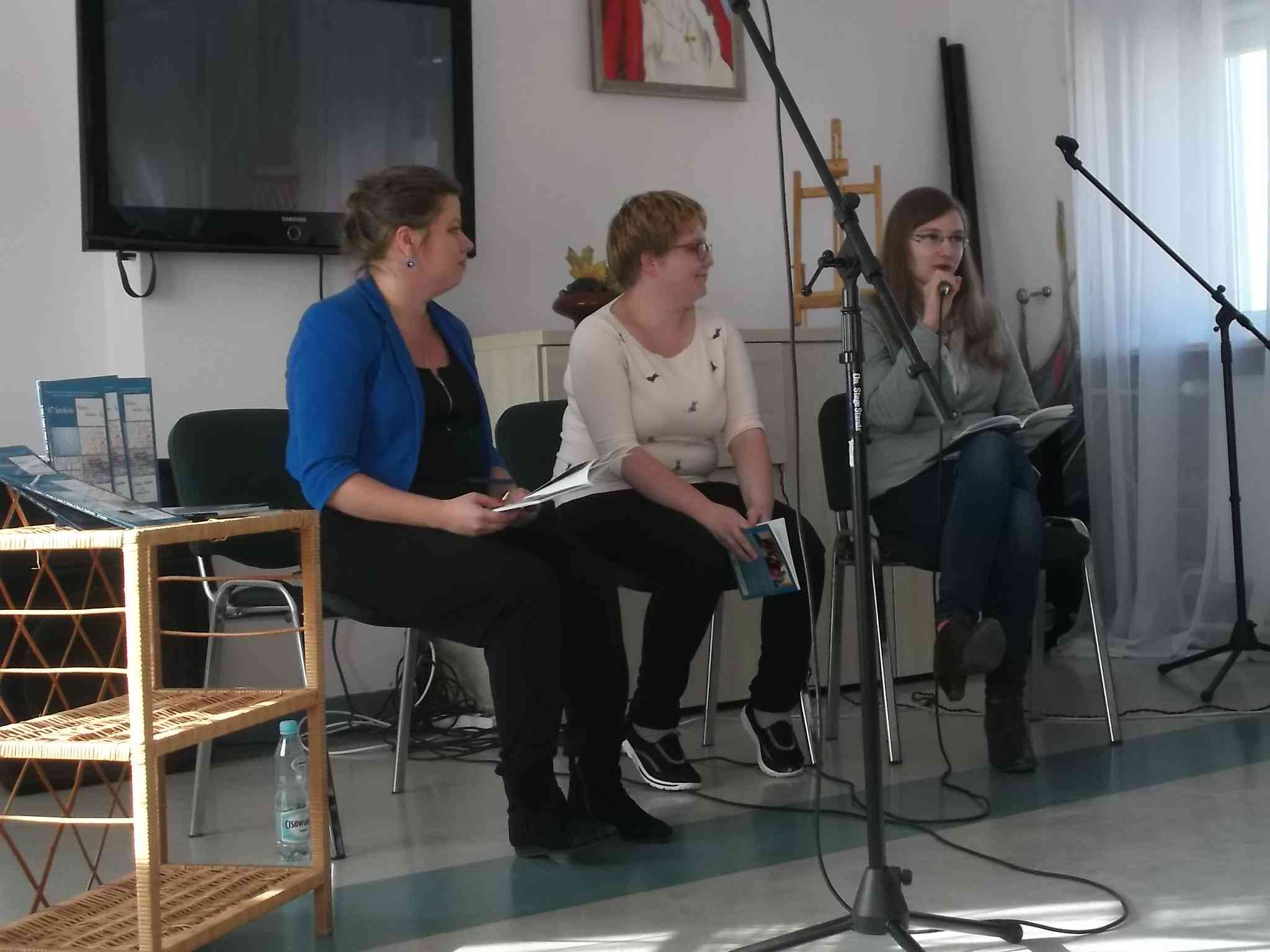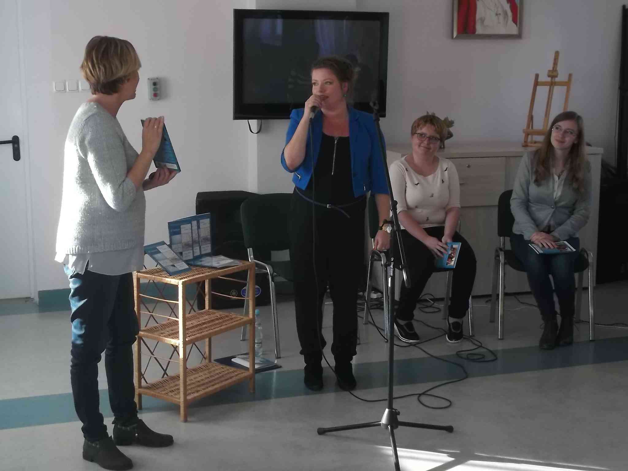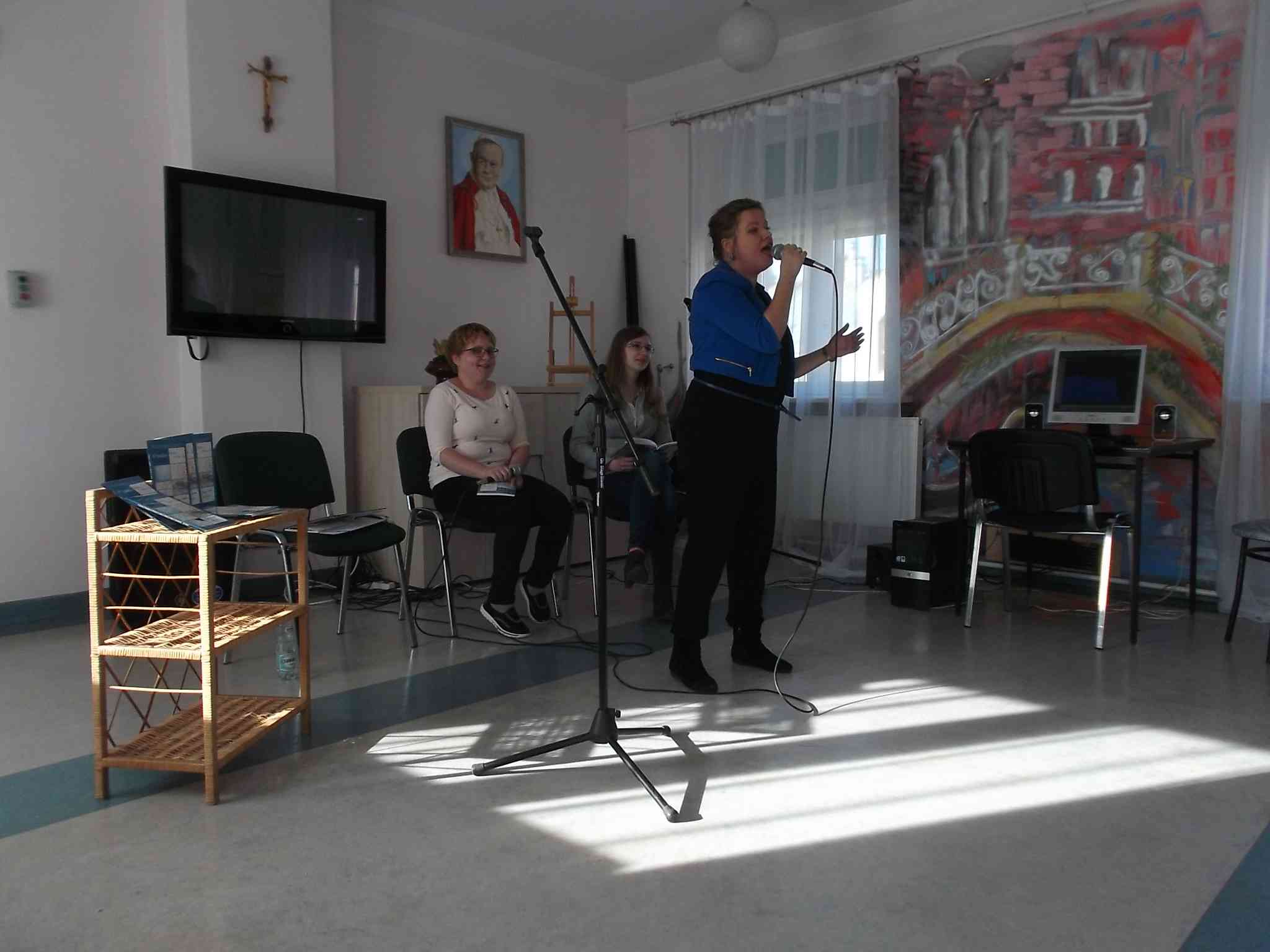W dn. 04.10.2016 odwiedziły nas członkinie grupy literacko-artystycznej „Słowniacy Świętokrzyscy”. Panie: Magdalena Banaś, Karolina Bugajska i Katarzyna Szychowska podzieliły się z mieszkankami swoją twórczością – poezją wydaną w tomiku wierszy „67 kroków”. Jeden egzemplarz autorki nam podarowały. Na występ grupy, poza czytaniem wierszy, składała się również prezentacja wokalnych umiejętności Magdaleny Banaś, która zaśpiewała mieszkankom kilka utworów. Serdecznie dziękujemy Słowniakom za podzielenie się z nami swoimi pasjami i talentami!
