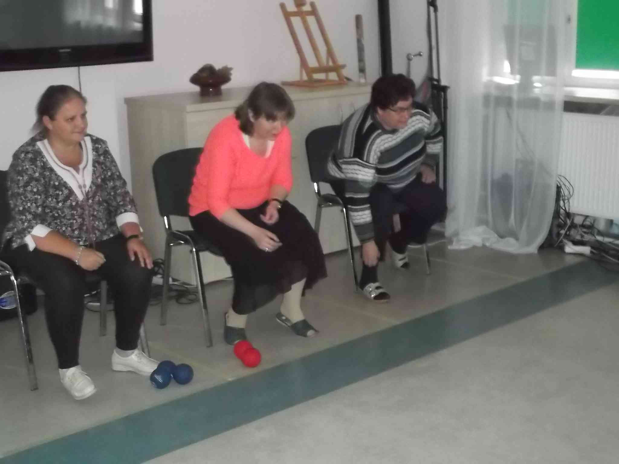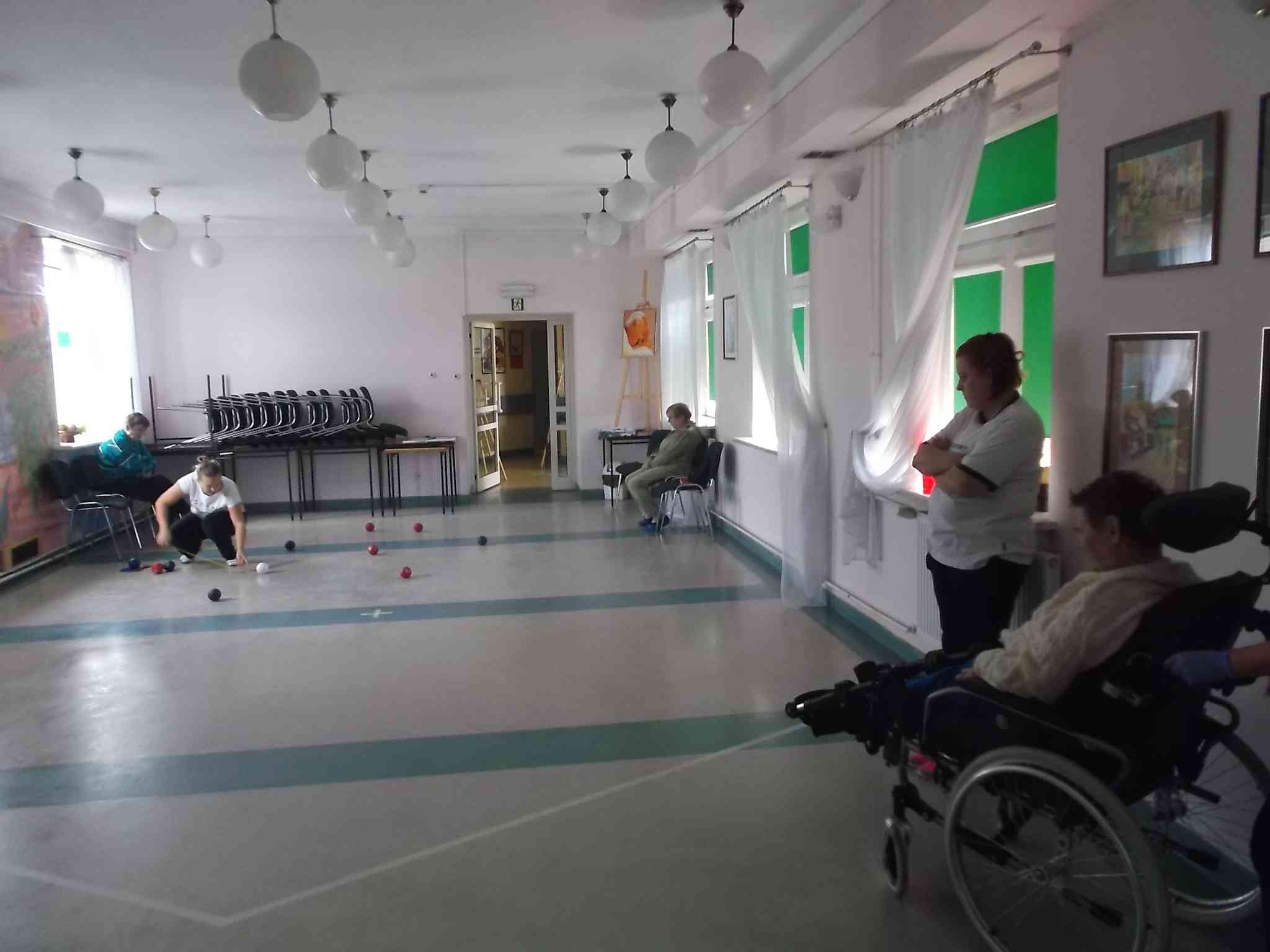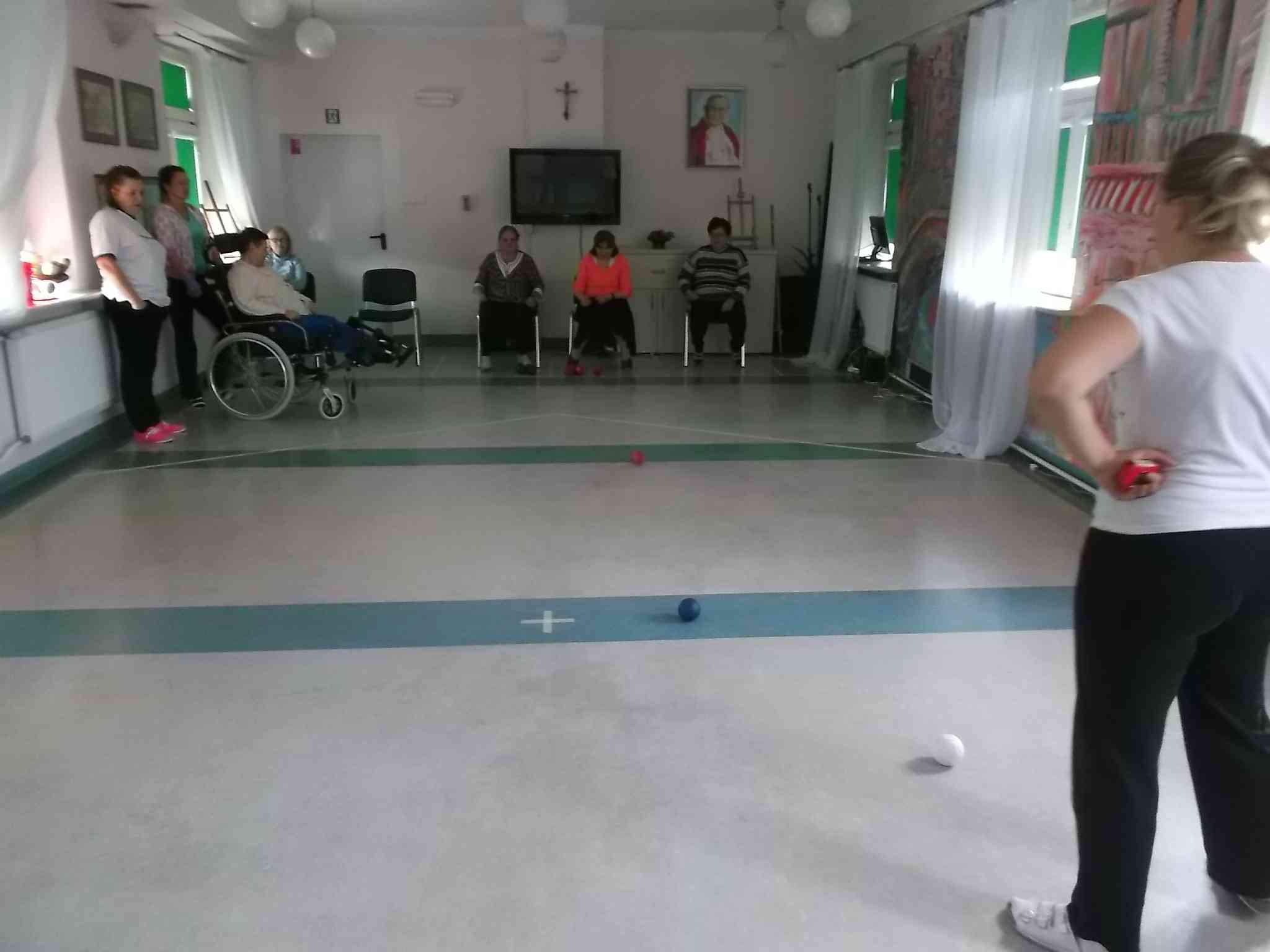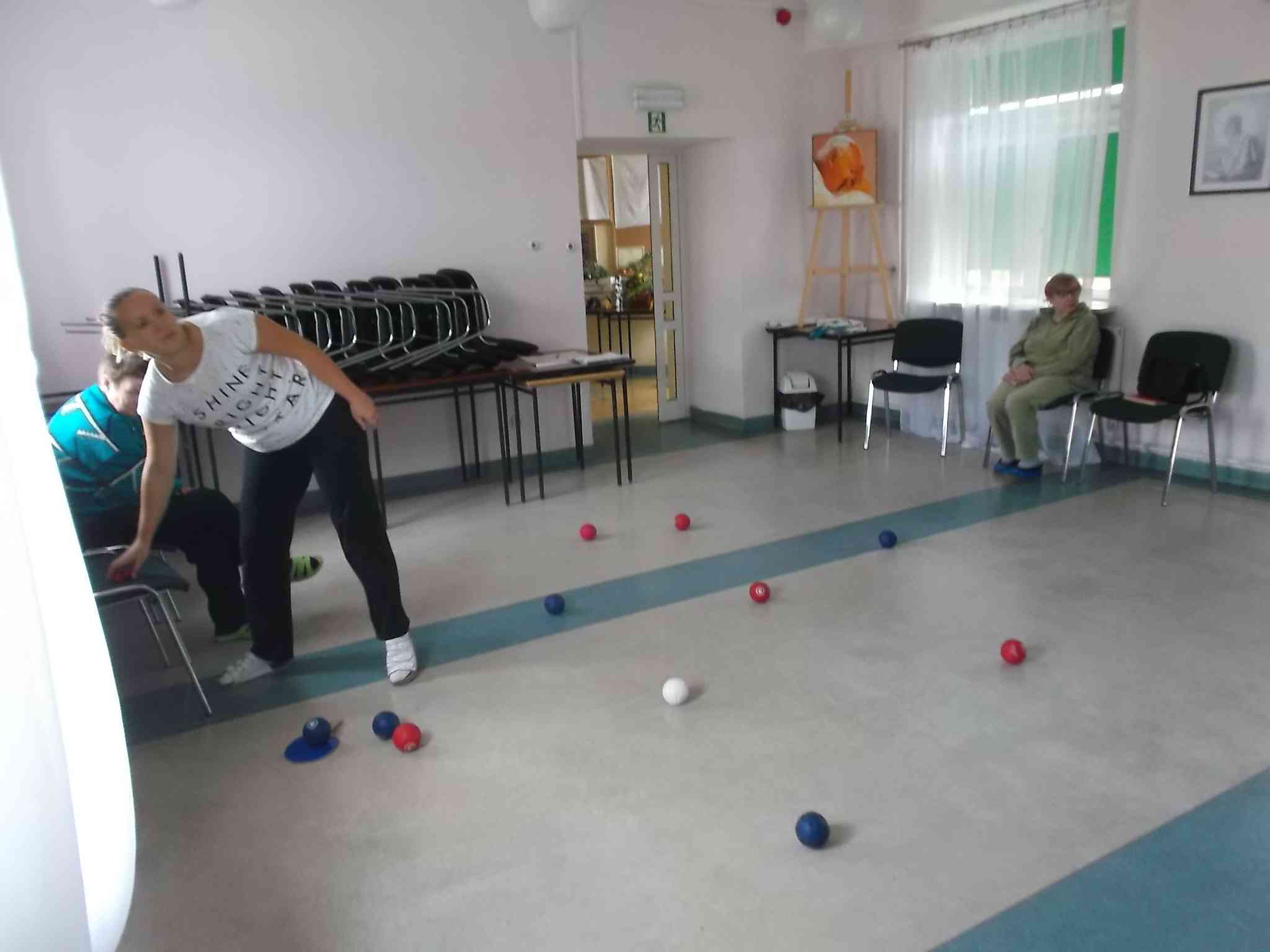 Uczymy się grać w boccię! Po sukcesach reprezentantek naszego Domu na zawodach wojewódzkich do grupy zwolenników bocci dołączają kolejne mieszkanki. Zajęcia pod kierunkiem fizjoterapeutki Anny Felner odbywają się w poniedziałki.