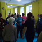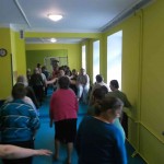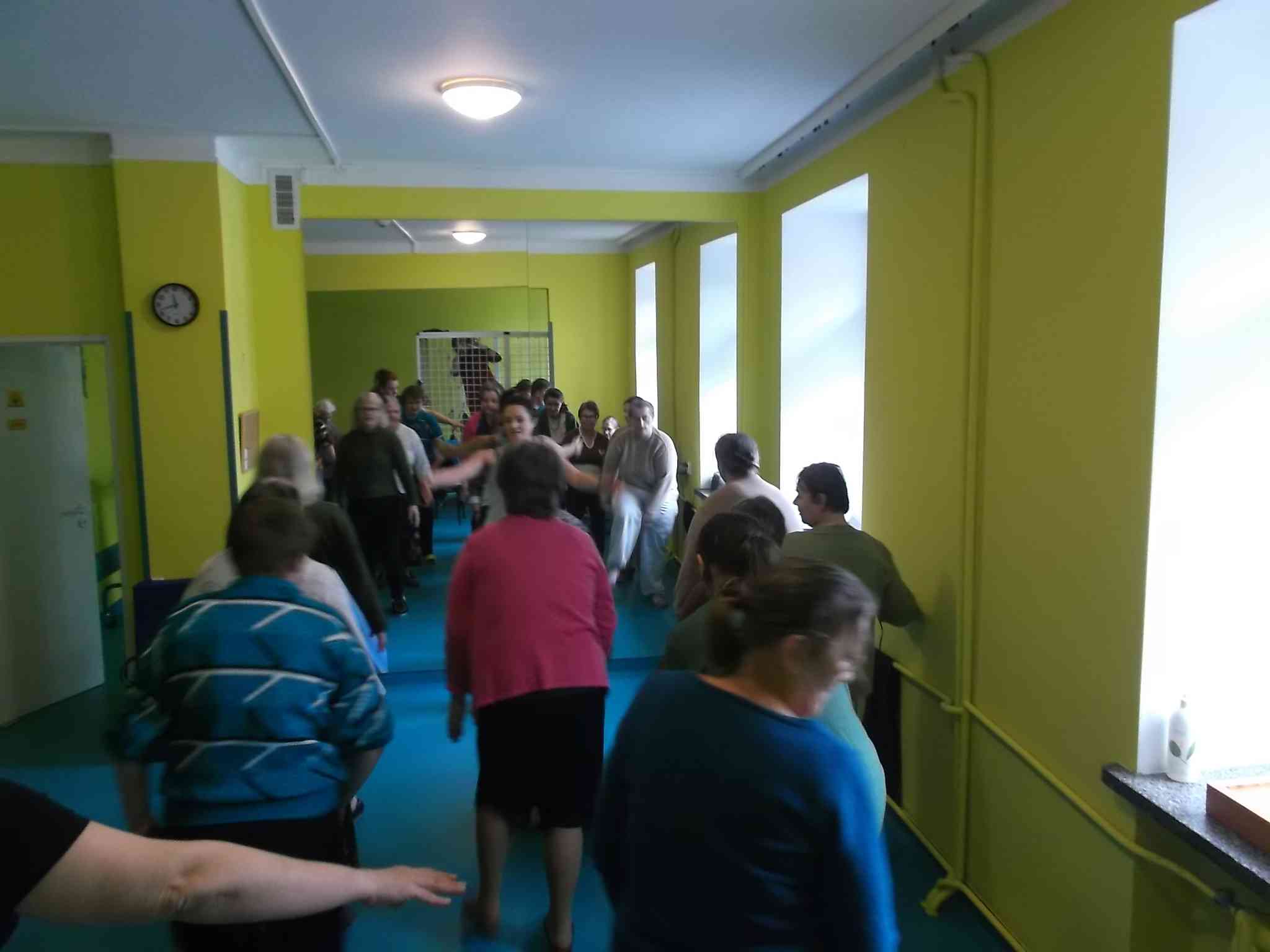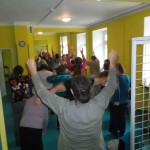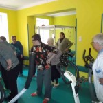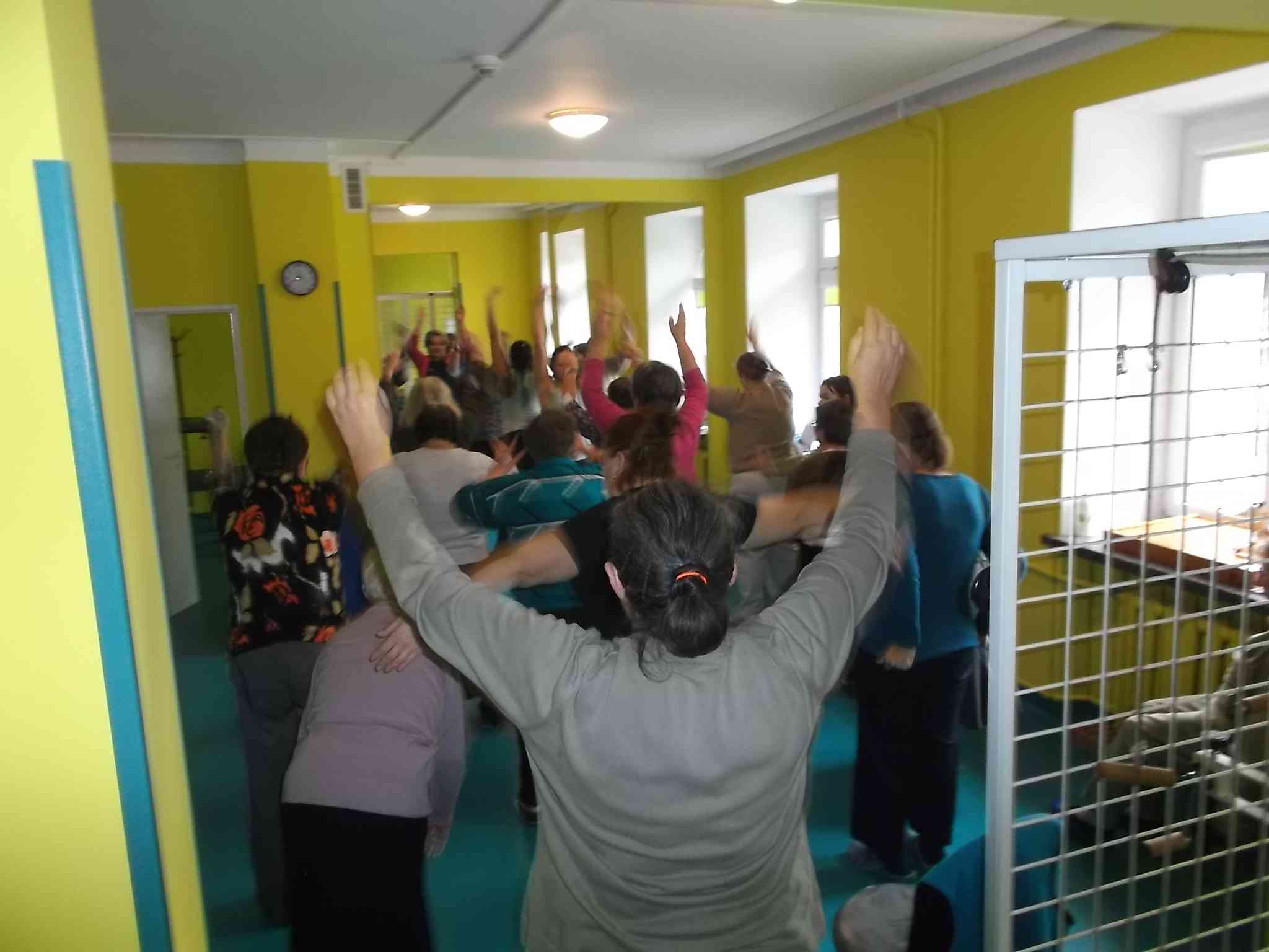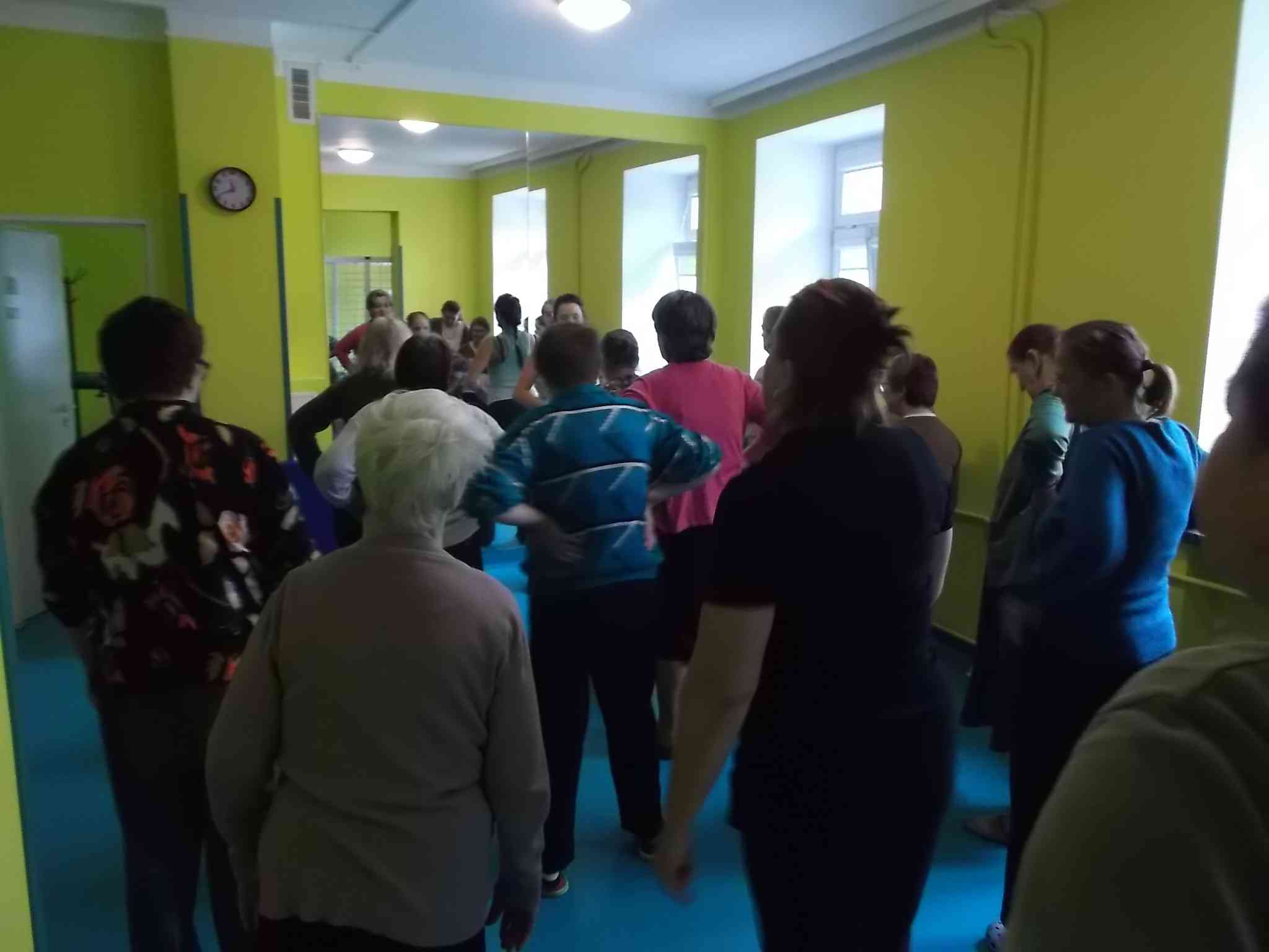 W czwartki zapraszamy mieszkanki do sali rehabilitacji na zajęcia fitness. Panie chętnie ćwiczą pod kierunkiem fizjoterapeutek.