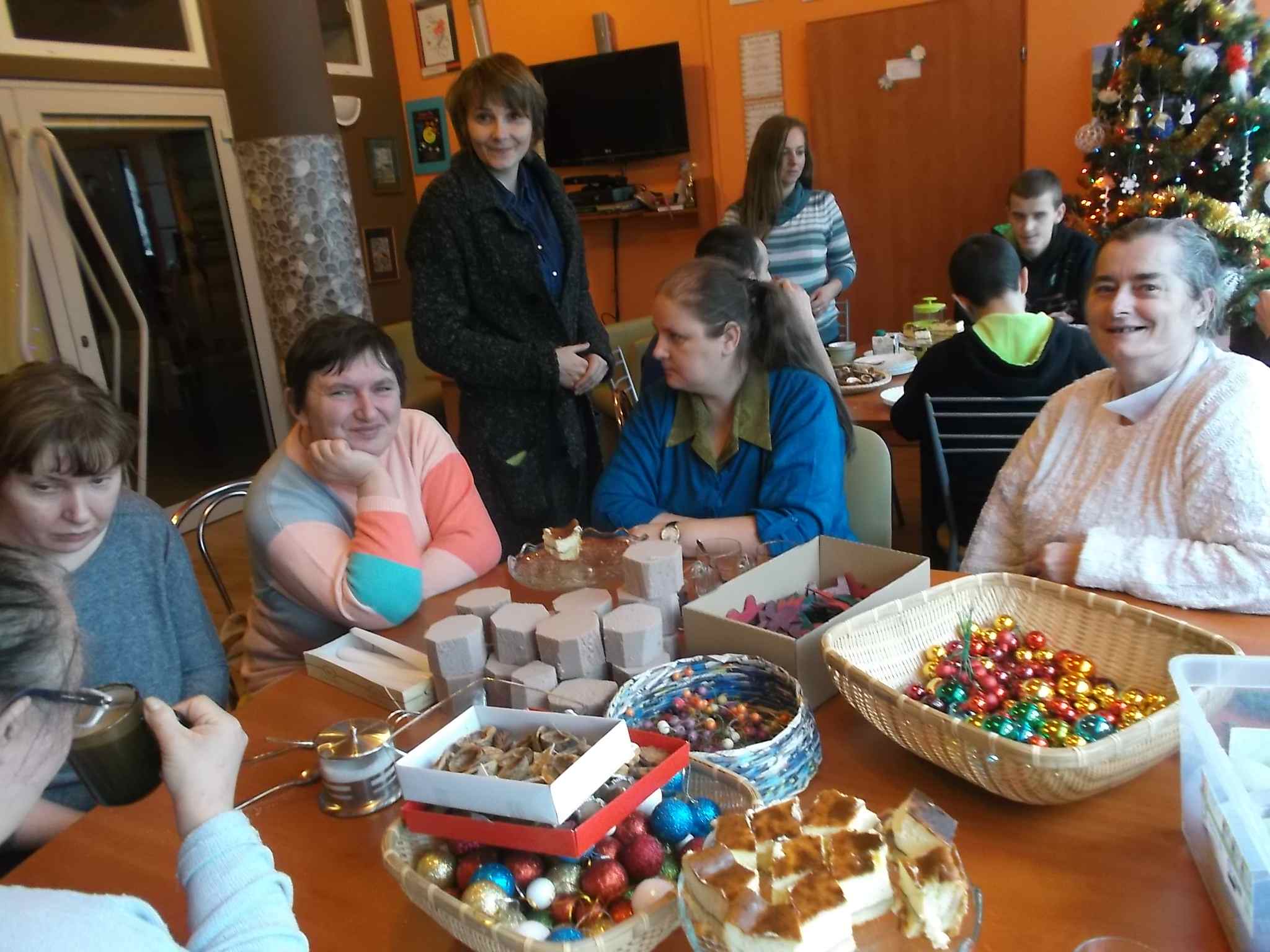 Jak zwykle chętnie korzystamy z zaproszeń zaprzyjaźnionego ŚDS z ul. Kołlątaja! W czasie przedświątecznym wspólnie śpiewaliśmy kolędy i przygotowywaliśmy stroiki, które mieszkanki zabrały ze sobą do Domu. Serdecznie dziękujemy za miłe przedpołudnie w świątecznej atmosferze i za pyszny sernik!