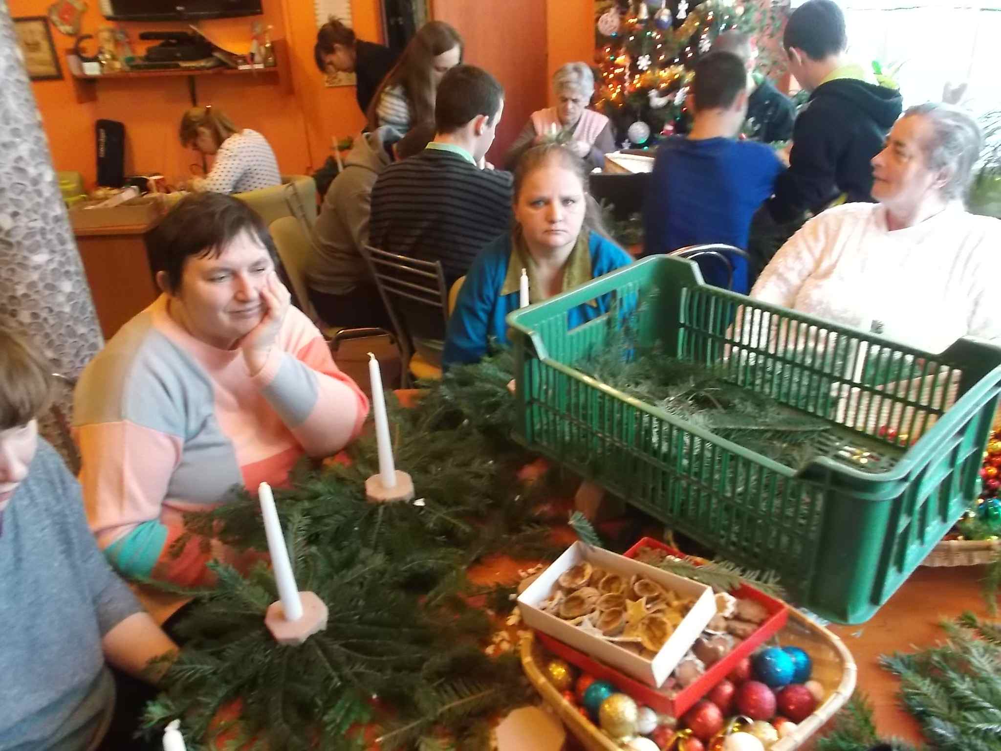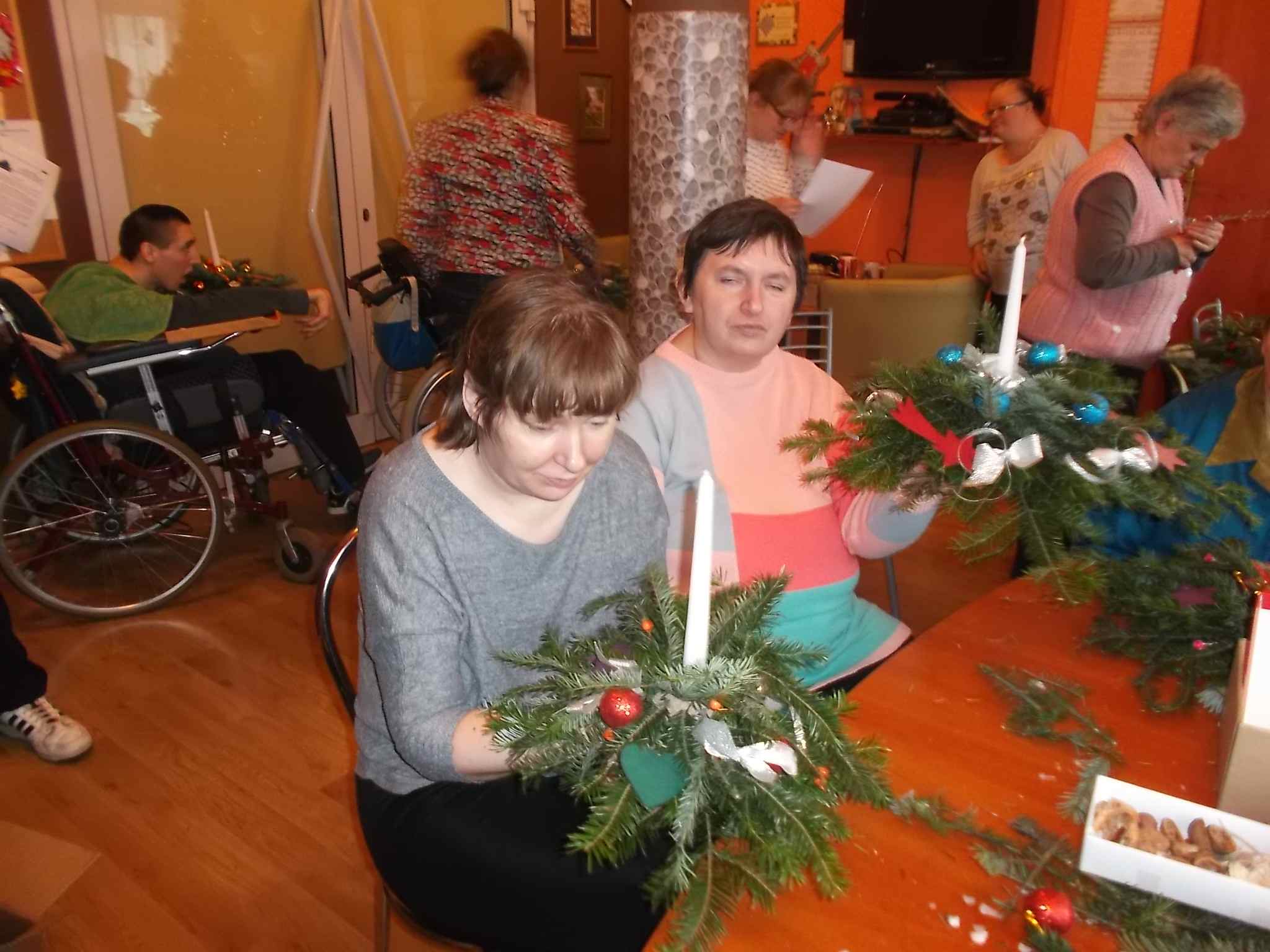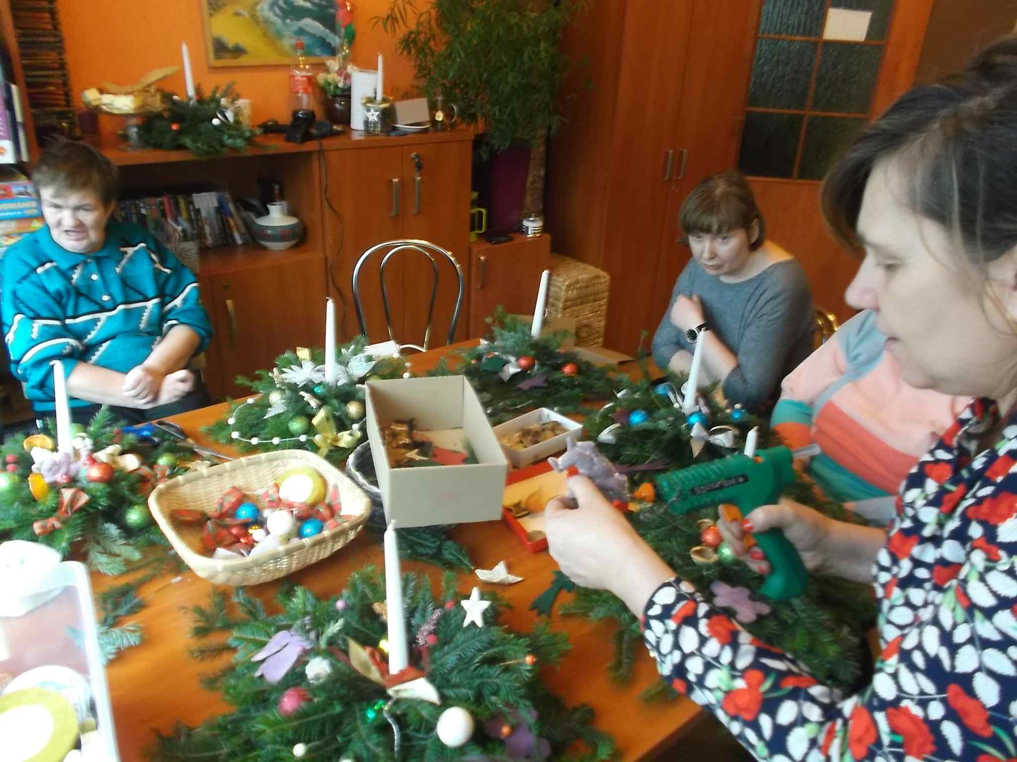Wspólne przygotowywanie stroików w Środowiskowym Domu Samopomocy przy ul. Kołłątaja 20.12.2016