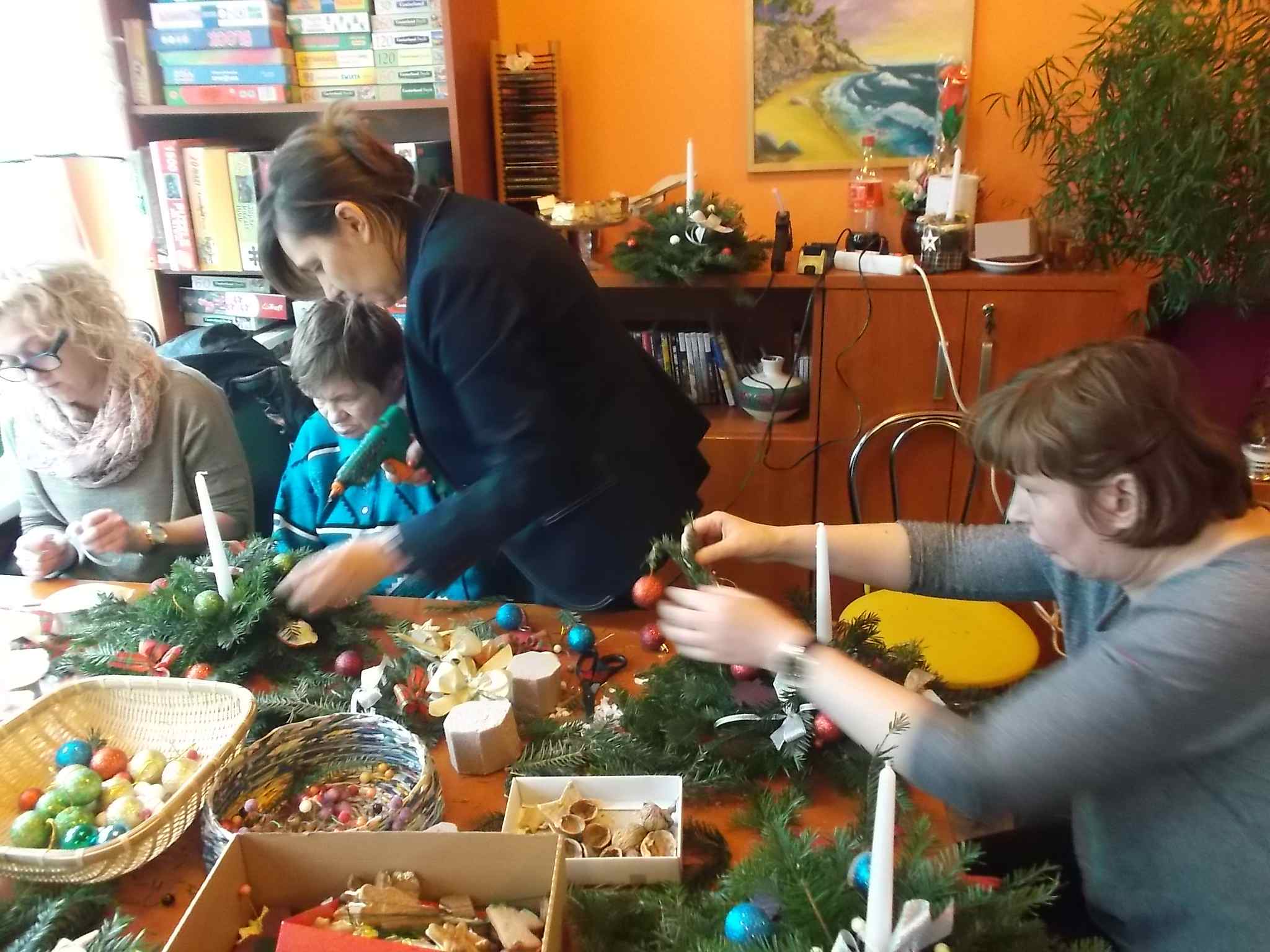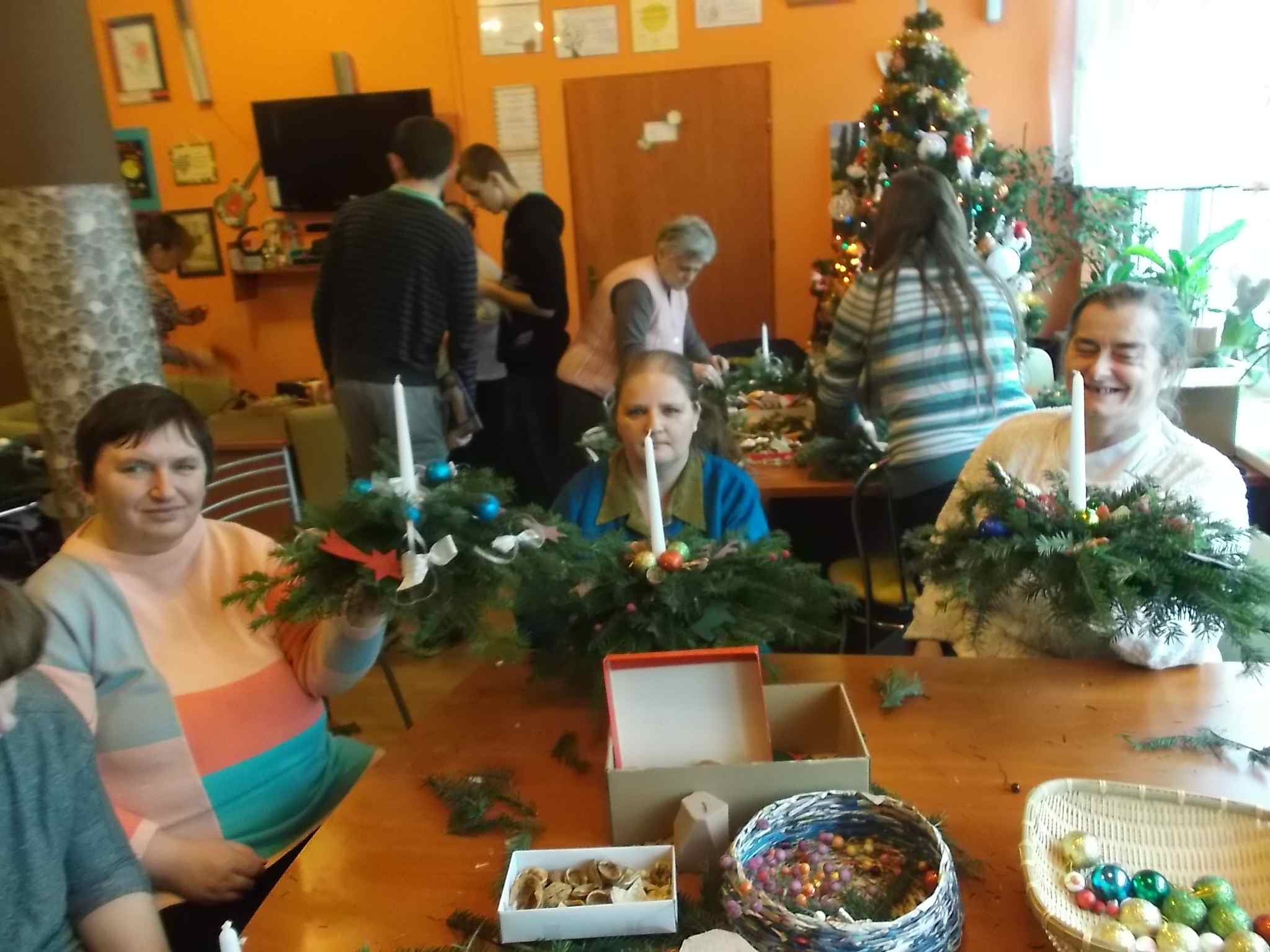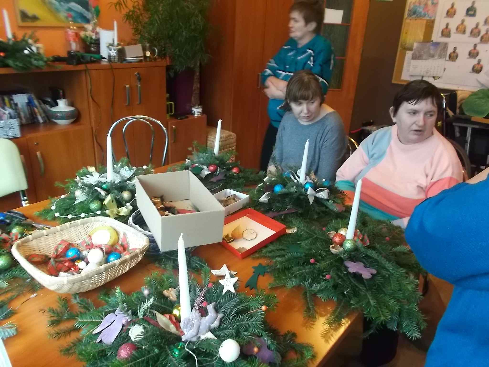 Wspólne przygotowywanie stroików w Środowiskowym Domu Samopomocy przy ul. Kołłątaja 20.12.2016