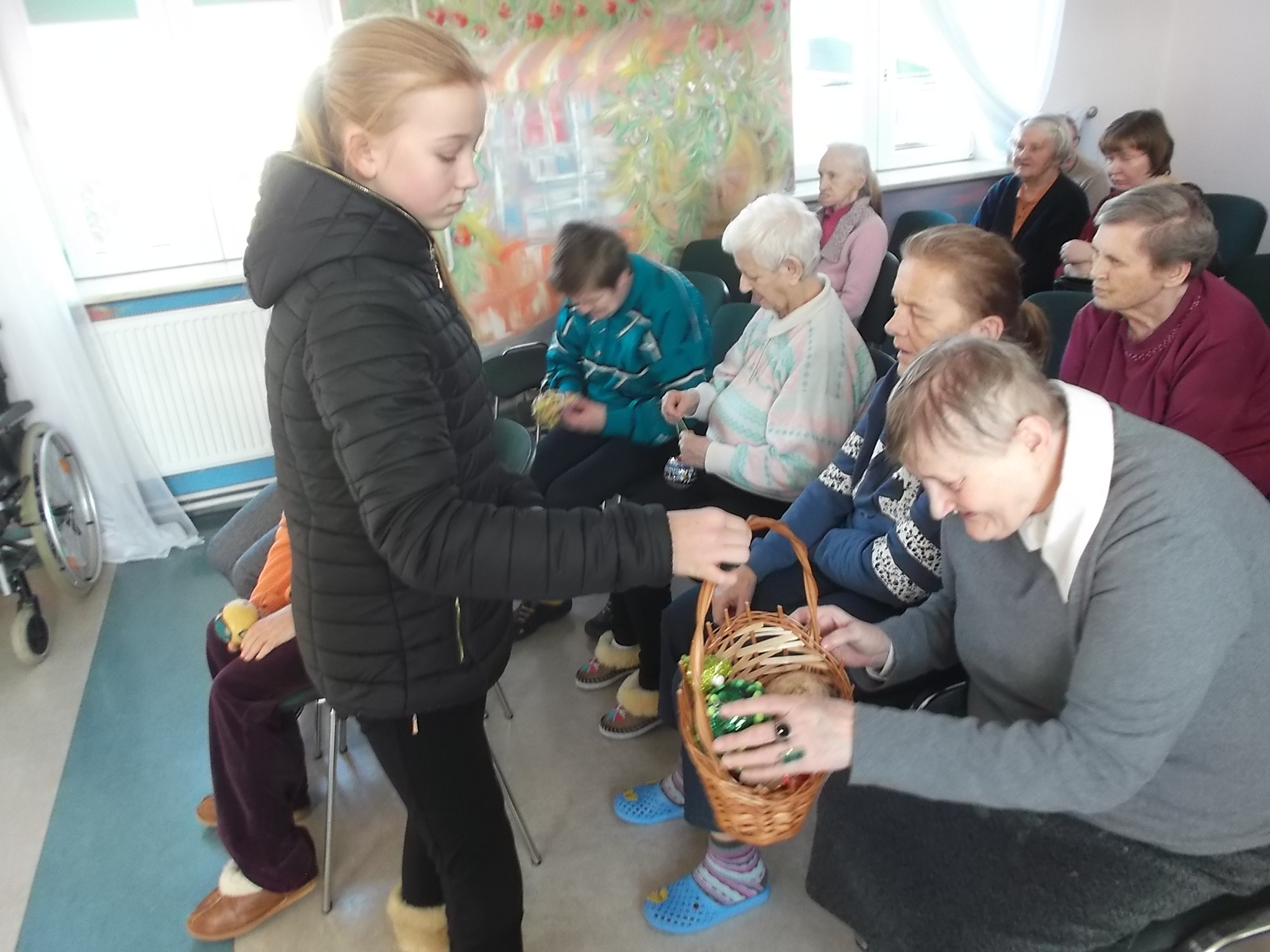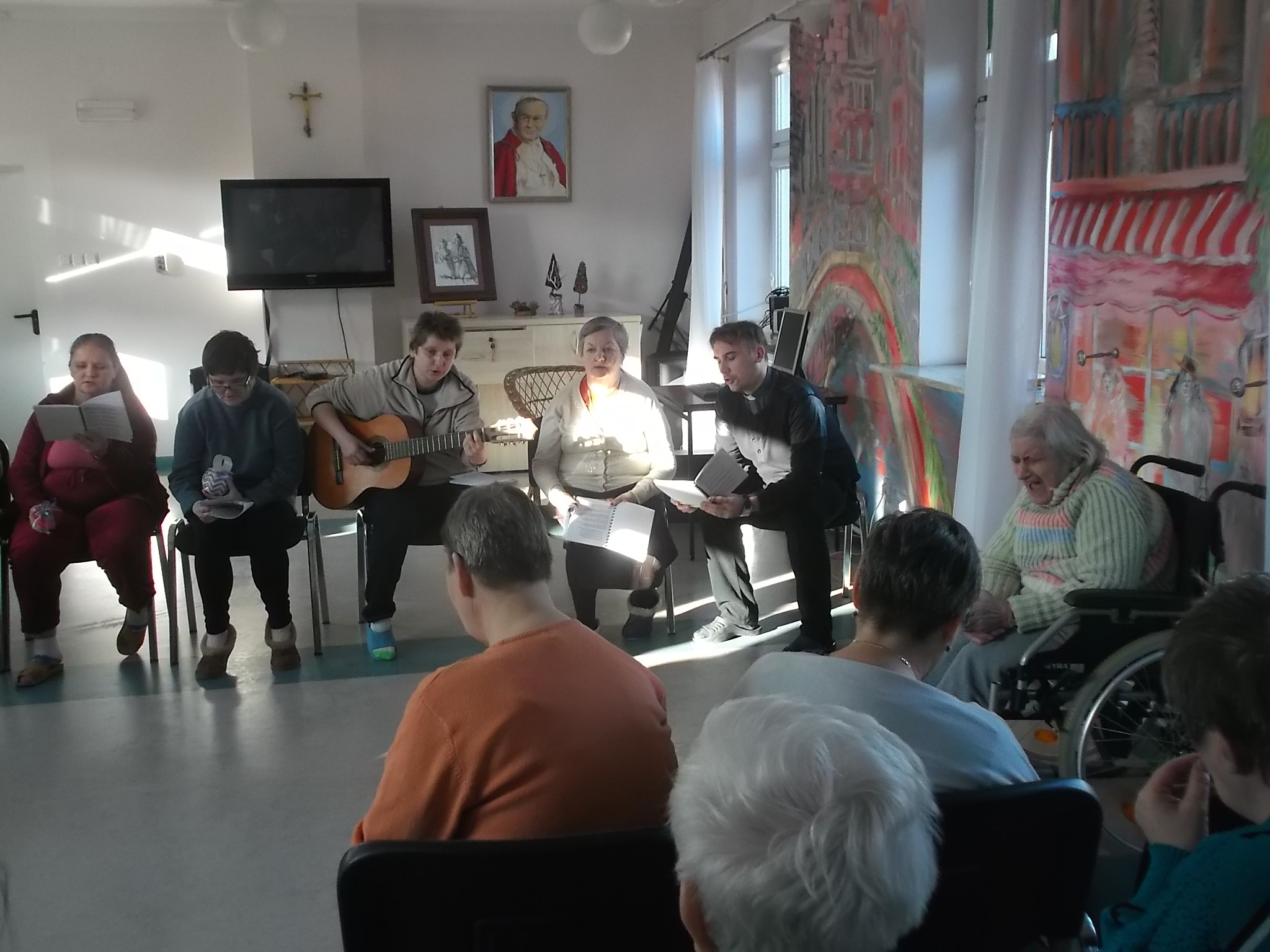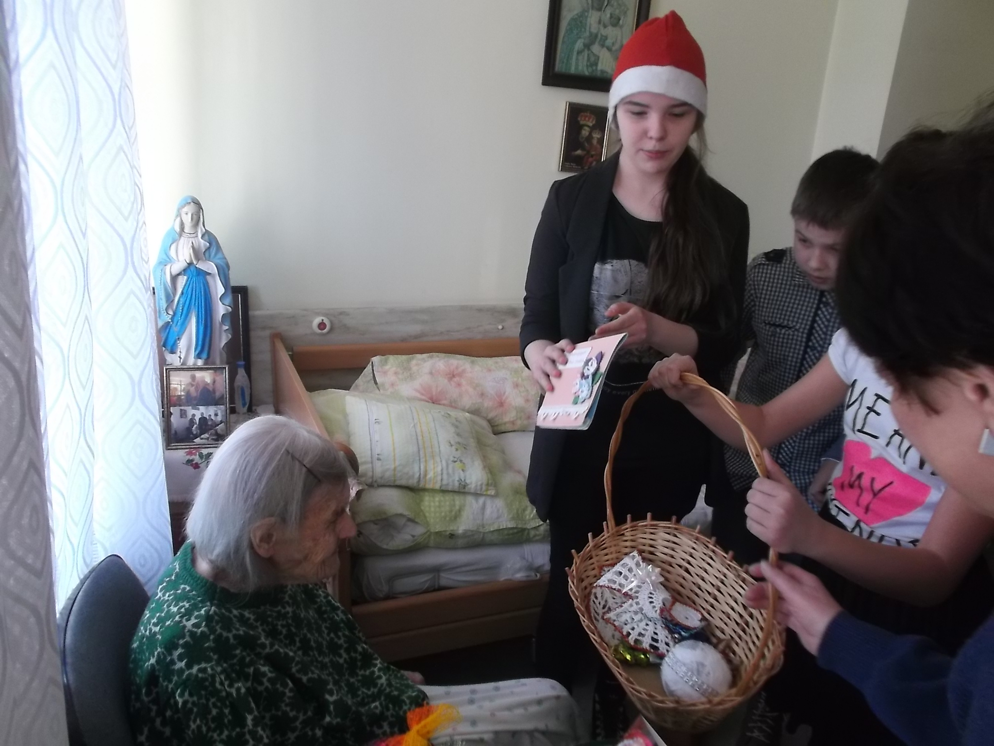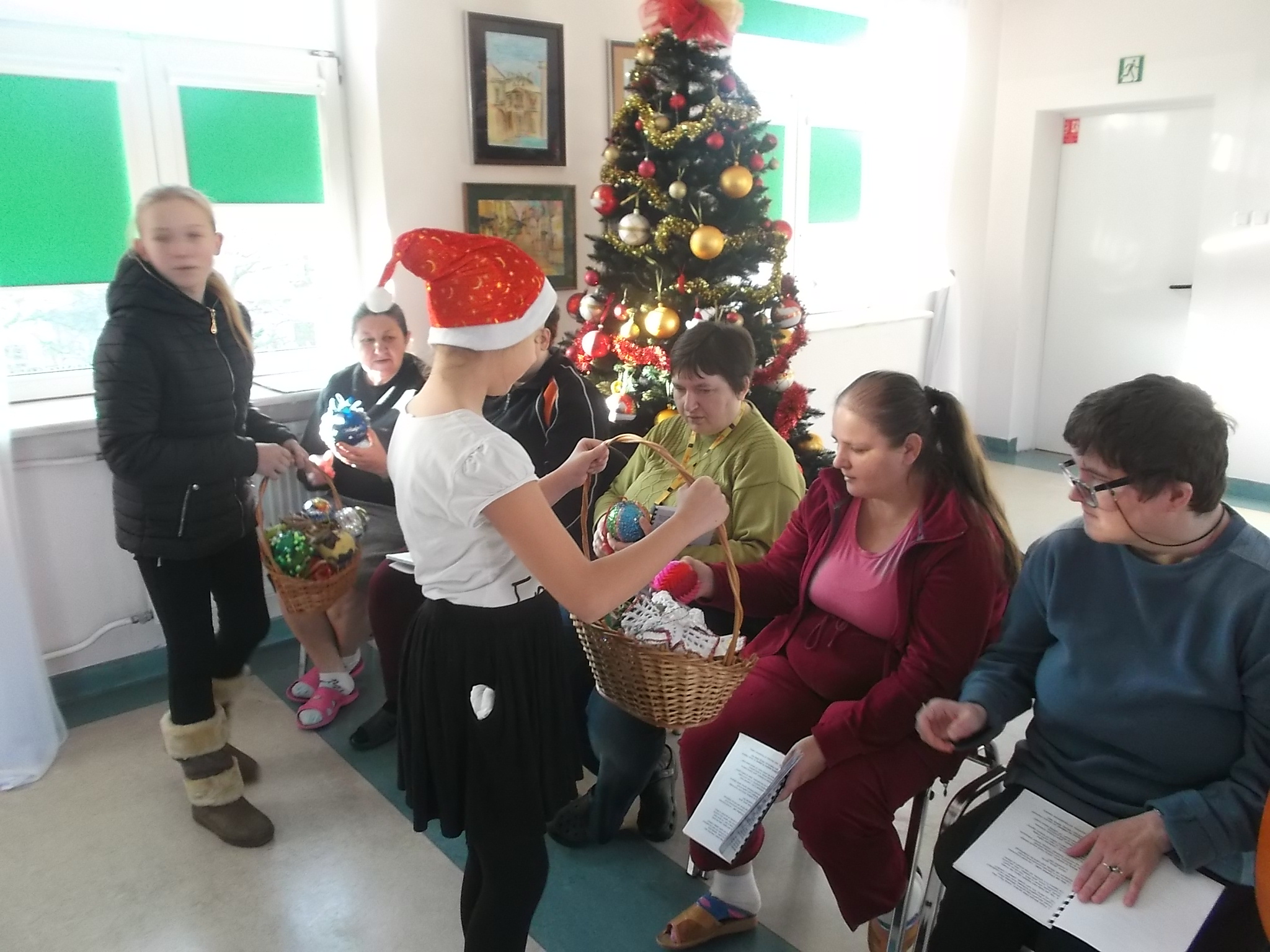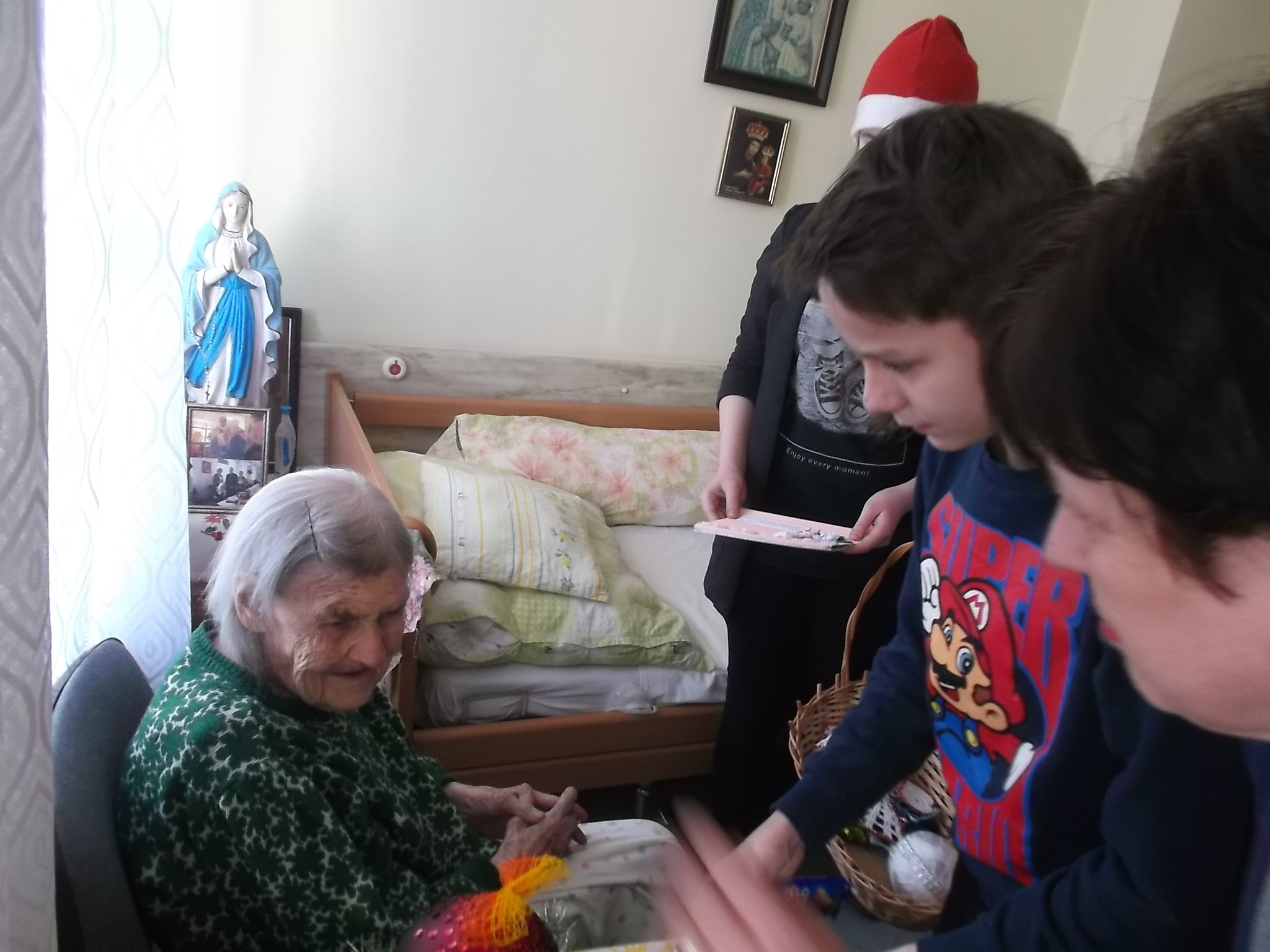W dniu 21.12.2017 nasze mieszkanki przyjęły gości z SP nr 27. Szóstoklasiści sprezentowali naszym paniom własnoręcznie przygotowane ozdoby świąteczne – piękne bombki i inne ozdoby świąteczne wykonane przy pomocy różnych technik, a także stroik zrobiony specjalnie dla naszej 100-letniej mieszkanki, pani Anieli. Wspólnie śpiewaliśmy kolędy. Serdecznie dziękujemy za miłą wizytę!