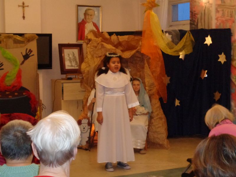 Nasi pierwsi w tym roku goście – młodzież ze świetlicy środowiskowej 4KĄTY z ul. Konopnickiej – przedstawili nam jasełka z pięknie przygotowaną przez siebie scenografią. Młodzież włożyła w swój występ dużo pracy, zrewanżowaliśmy się owacyjnym przyjęciem i słodyczami!