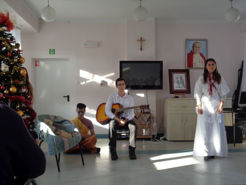 W sobotę 07.01.2017 odwiedzili nas Młodzi Ewangelizatorzy z Koinonii Św. Pawła z przygotowanymi przez siebie jasełkami – nietypowymi, bo zamiast tradycyjnych postaci pojawiali się w nich reprezentanci wszystkich kontynentów! Po występie wspólnie kolędowaliśmy. Dziękujemy za miłe przedpołudnie i coroczne świąteczne wizyty w naszym Domu!