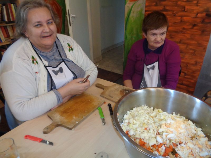 W czasie Postu niektórzy z nas ograniczają słodycze i do Świąt Wielkanocnych nie przygotowujemy na zajęciach kulinarnych deserów J Nasze panie wspólnie zrobiły tradycyjną sałatkę jarzynową, oczywiście – palce lizać :)