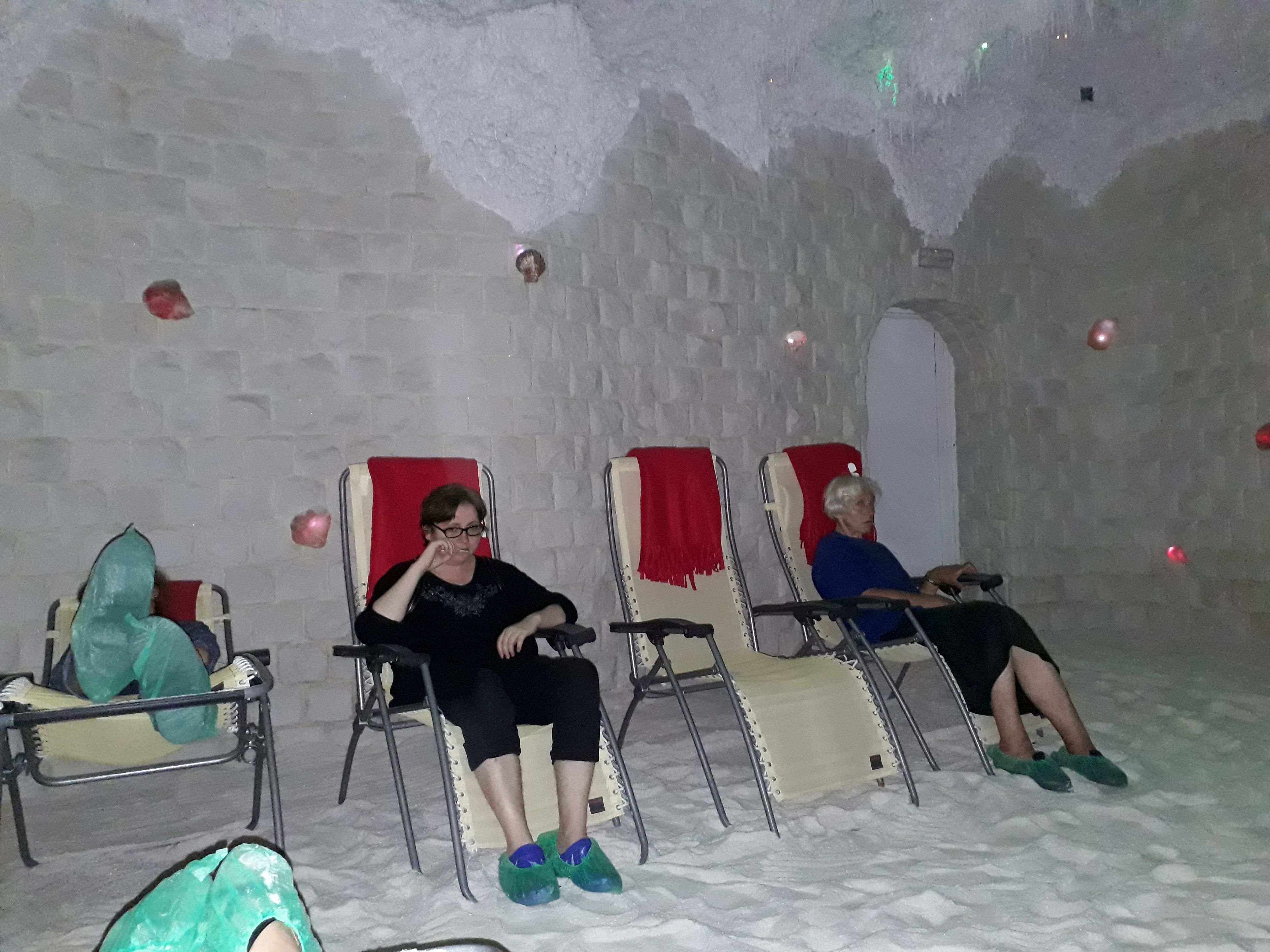Grupa mieszkanek wybrała się na trening relaksacyjny do groty solnej na kieleckim Pakoszu. Szczególnie na paniach, które nie korzystały z zajęć wcześniej, grota robi wrażenie!