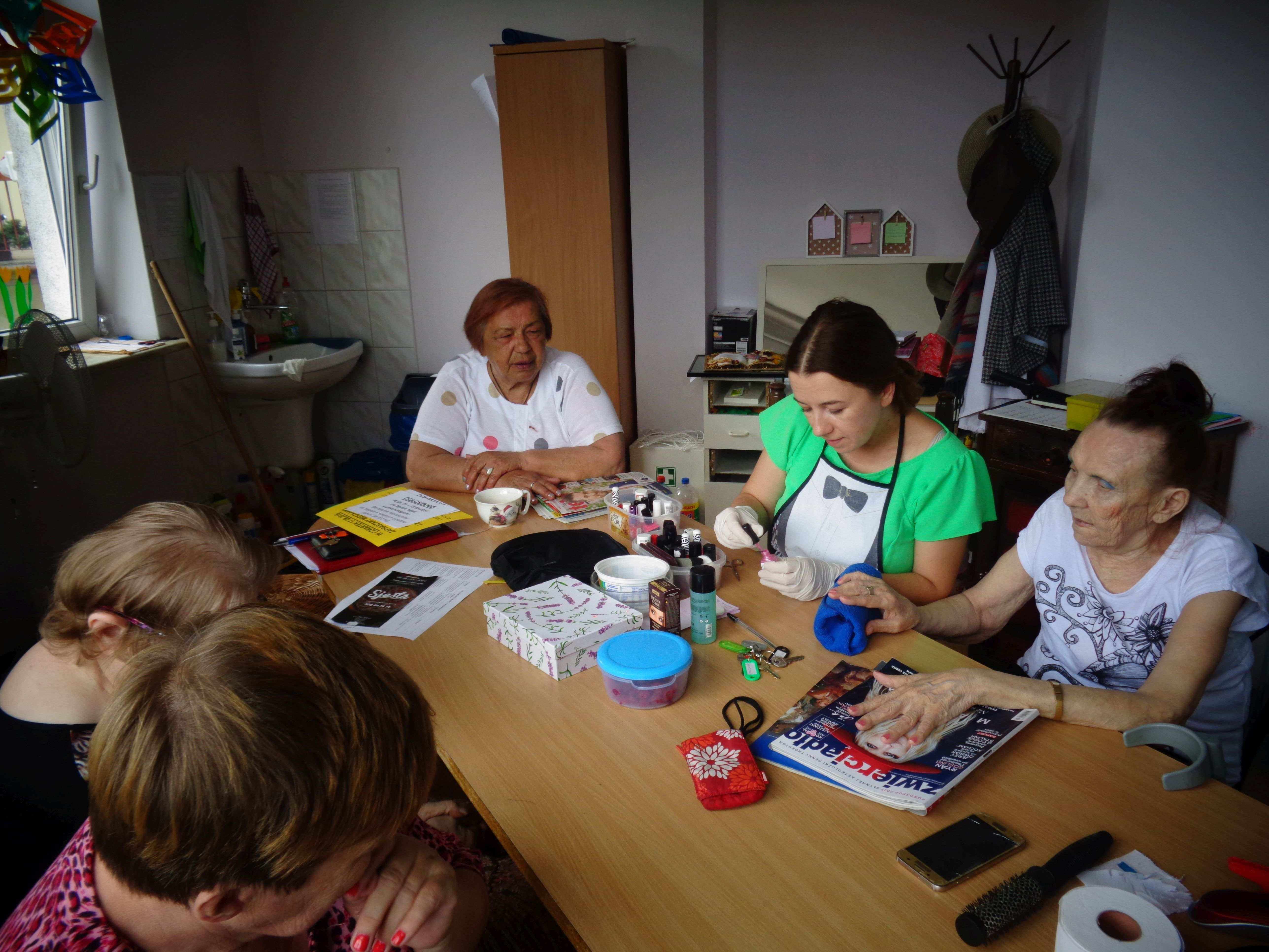 Dzień SPA na stałe wpisał się w nasz harmonogram – jak to w Domu pełnym kobiet! Pani Agnieszka Zepp-Orłowska pomaga mieszkankom dbać o włosy i paznokcie.