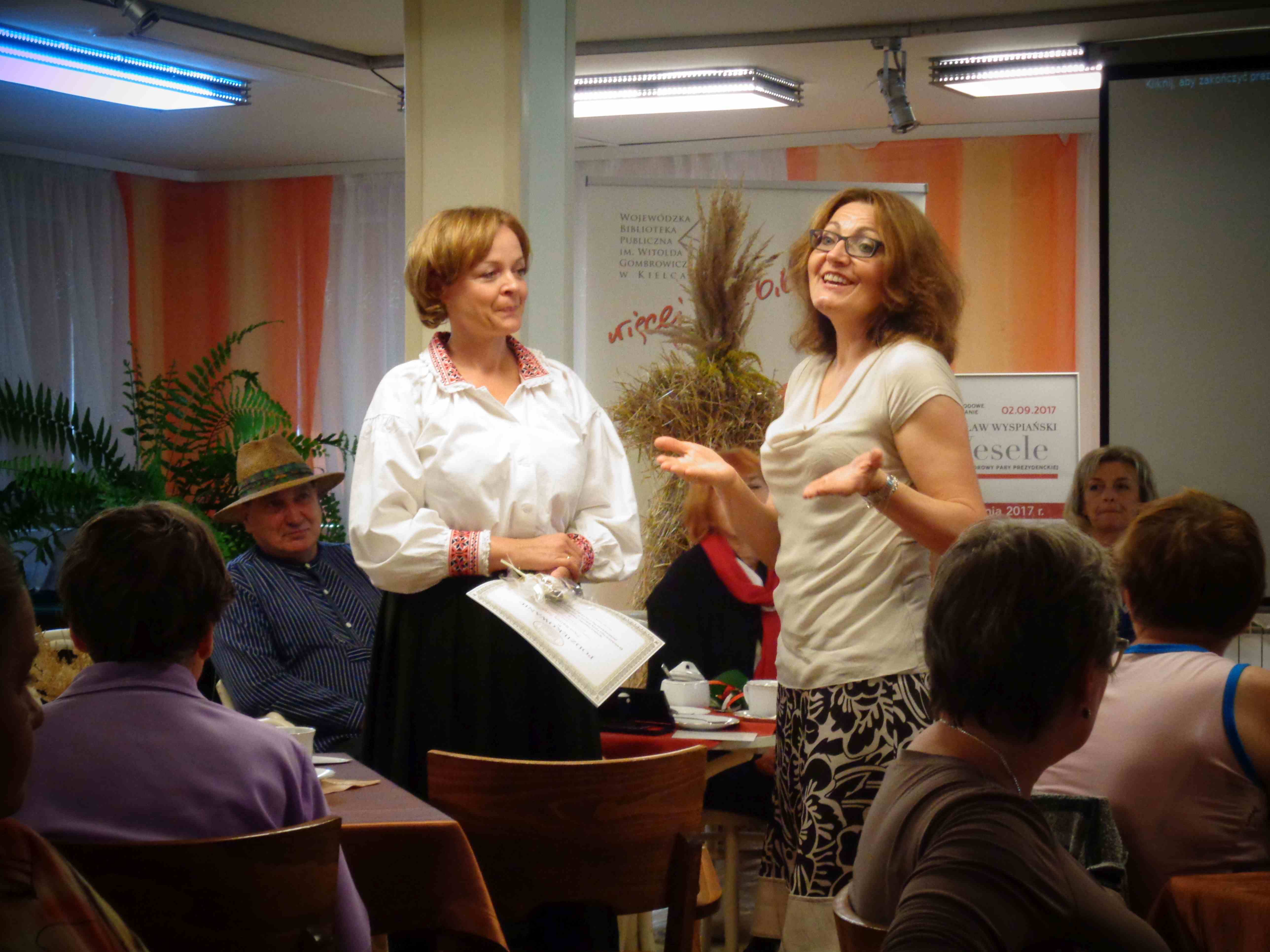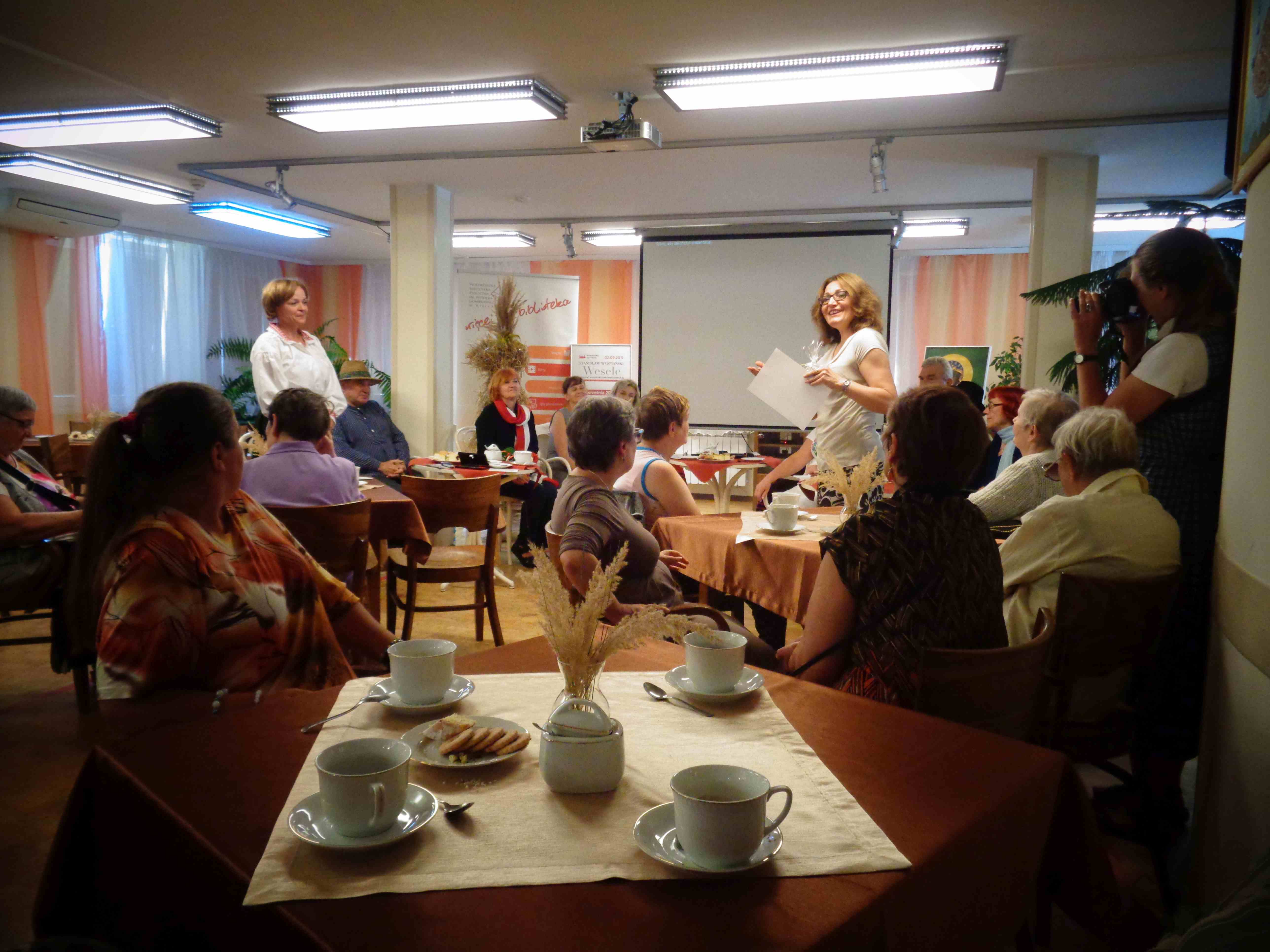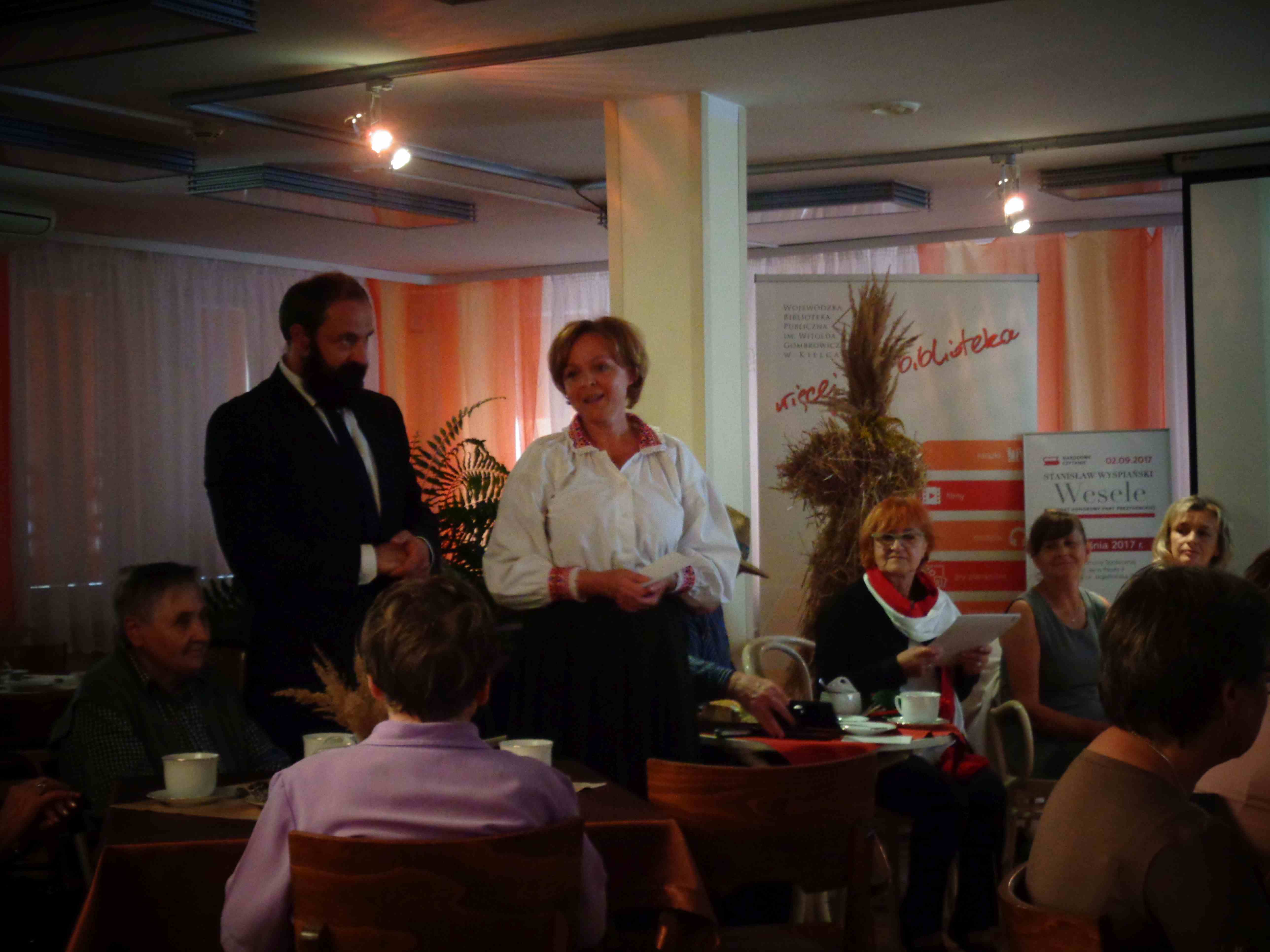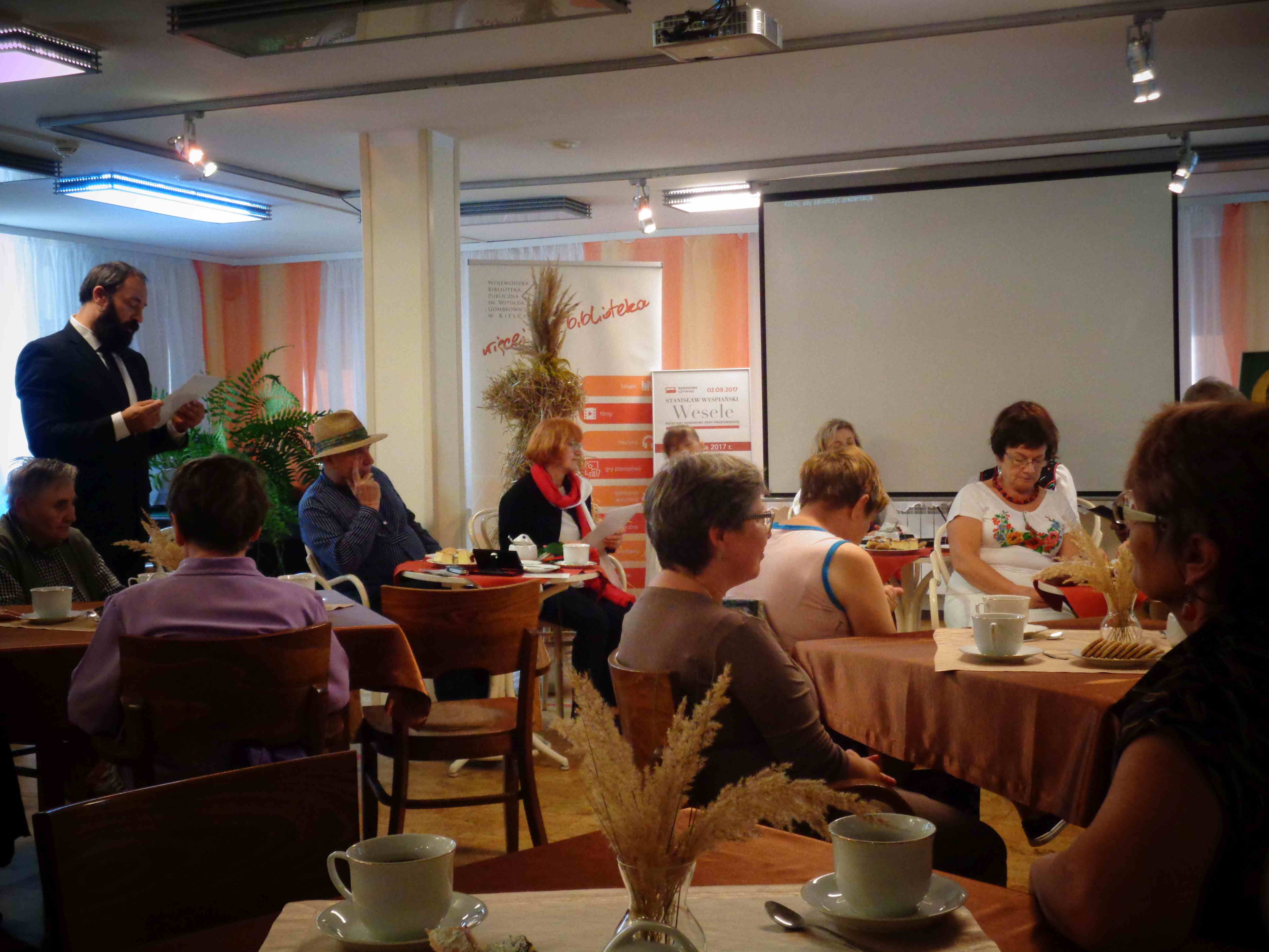 Z okazji Narodowego Czytania 2017 „Wesela” Wyspiańskiego – wydarzenia objętego w całym kraju patronatem Pary Prezydenckiej – wzięliśmy udział w spotkaniu przygotowanym wspólnie przez DPS im. Jana Pawła II i Wojewódzką Bibliotekę Publiczną im. W. Gombrowicza w Kielcach. Pracownicy biblioteki i zaproszeni przez nich do DPS goście odczytali wybrane fragmenty „Wesela”.