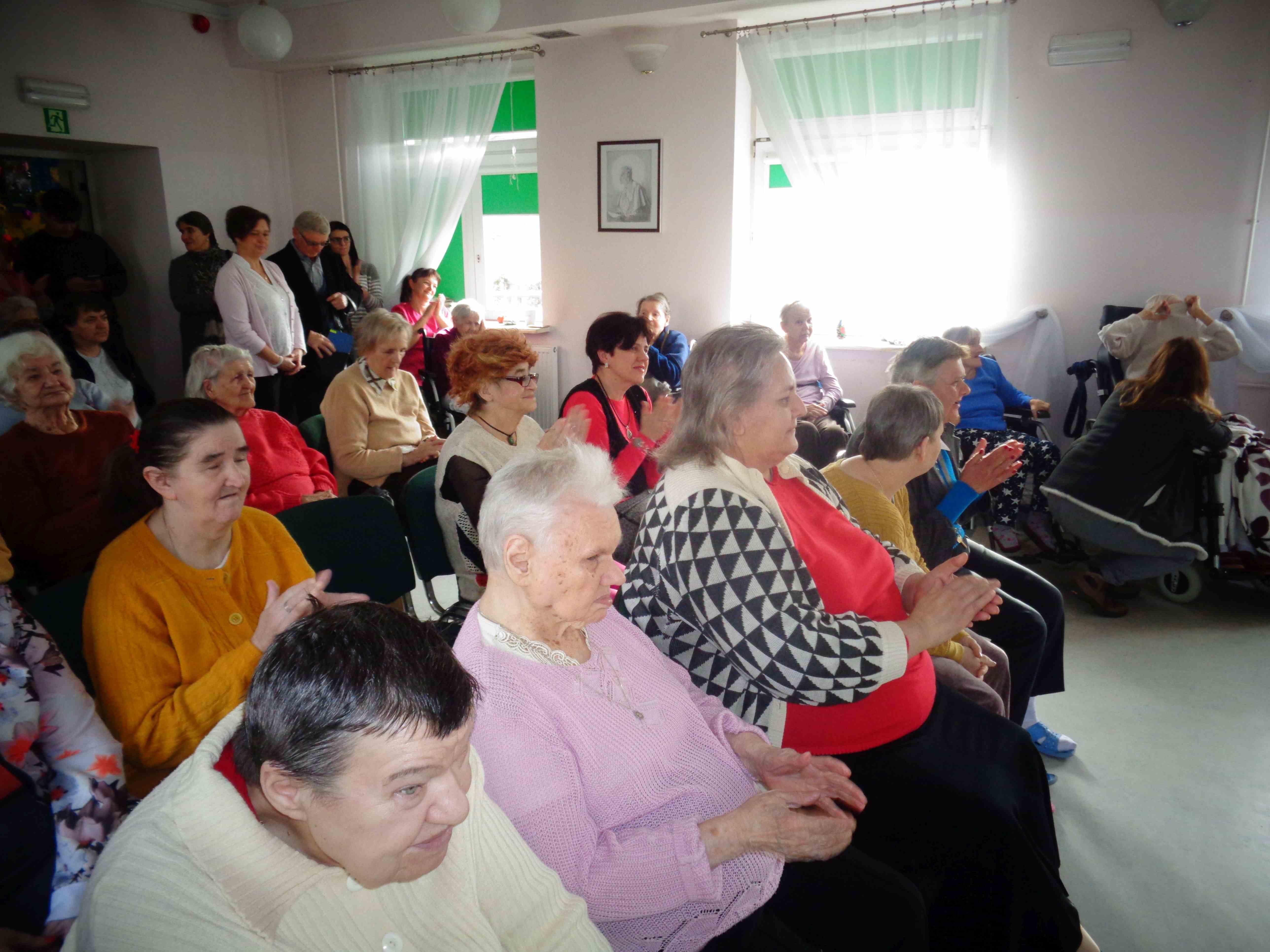 Chór wojskowy „Żołnierskie Echa” ku uciesze naszych mieszkanek zaprezentował się w naszym Domu! Repertuar chóru – piosenki żołnierskie i patriotyczne – wzbudza dużą sympatię wśród naszych pań. Niektóre doskonale znają teksty pieśni!