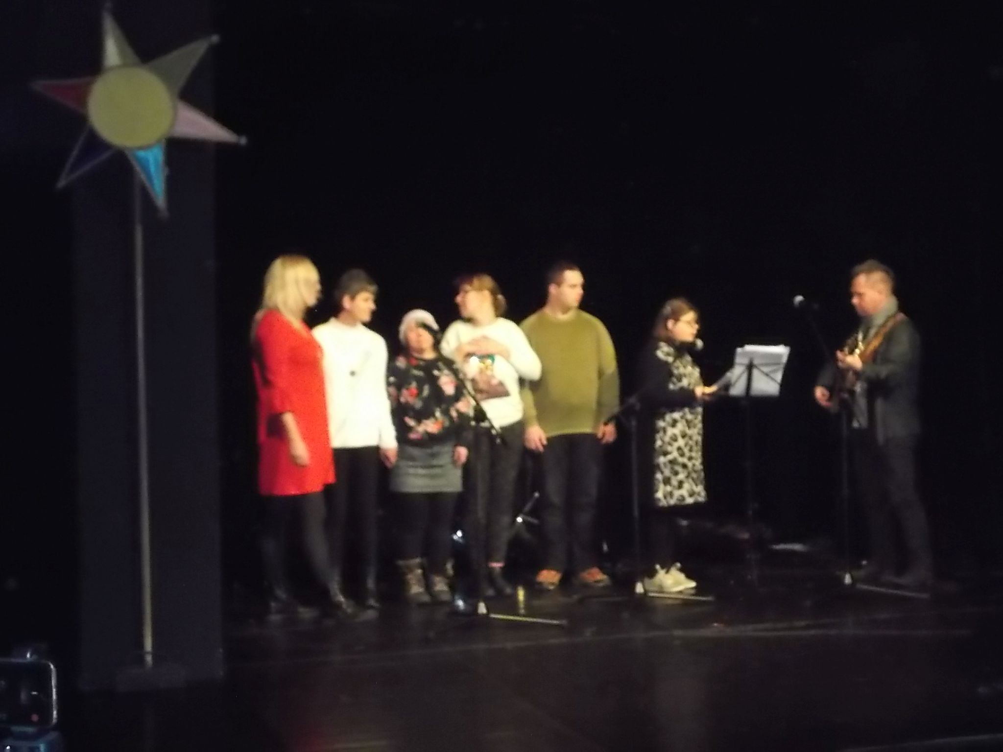 Już zaczęliśmy święta! Mieszkanki zaprezentowały na scenie „Kubusia” 3 kolędy, oklaskiwały też innych występujących – uczestników kieleckich Środowiskowych Domów Samopomocy, wychowanków Młodzieżowego Ośrodka Wychowawczego z Podzamcza Chęcińskiego i członków stowarzyszenia „Szansa dla Niewidomych”. Śpiewaliśmy do późnego wieczora a później w powrotnej drodze podziwialiśmy świąteczne dekoracje w centrum miasta. Za wspaniałą organizację imprezy odpowiada stowarzyszenie NAWIGACJA – dziękujemy!