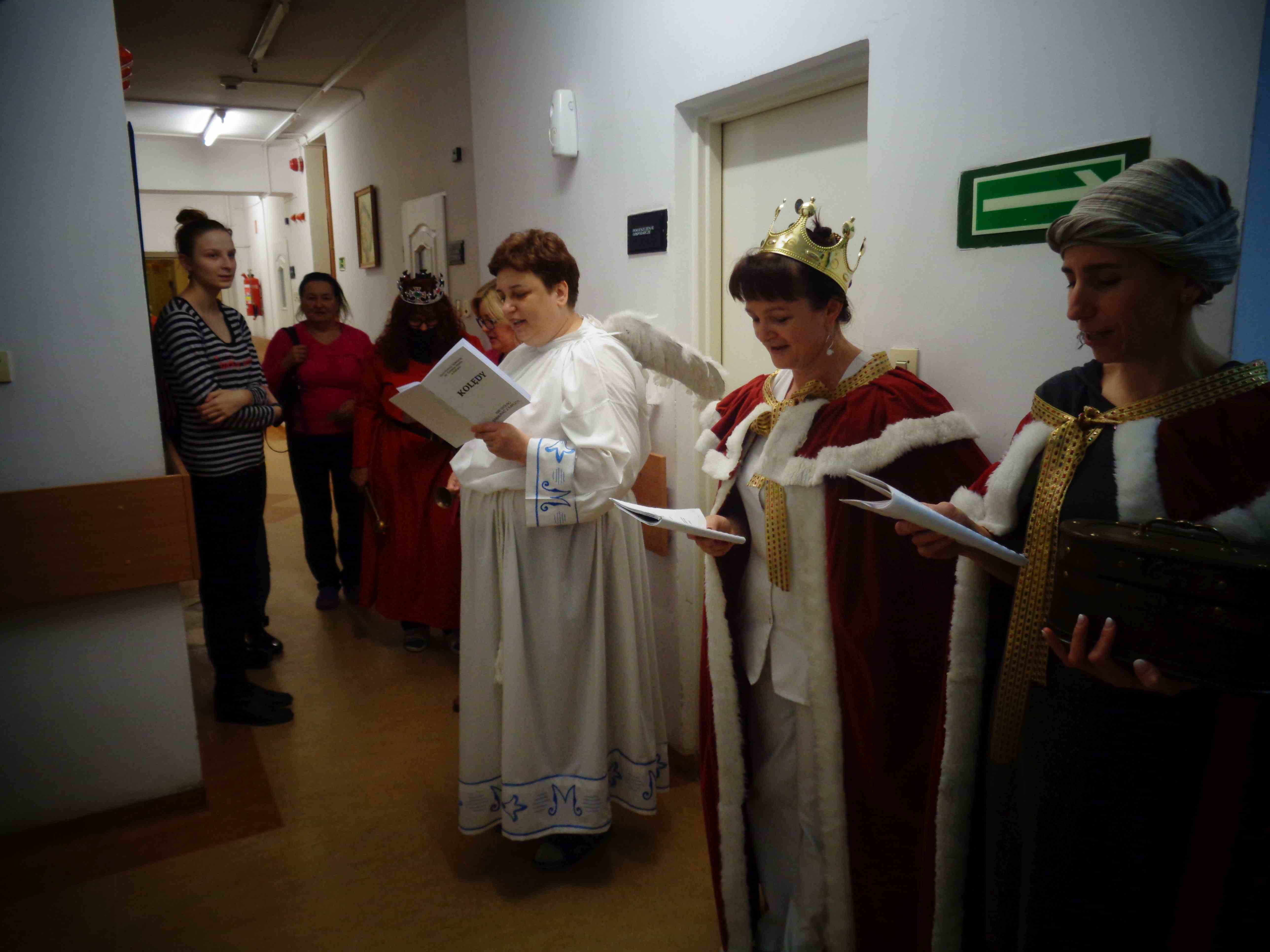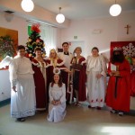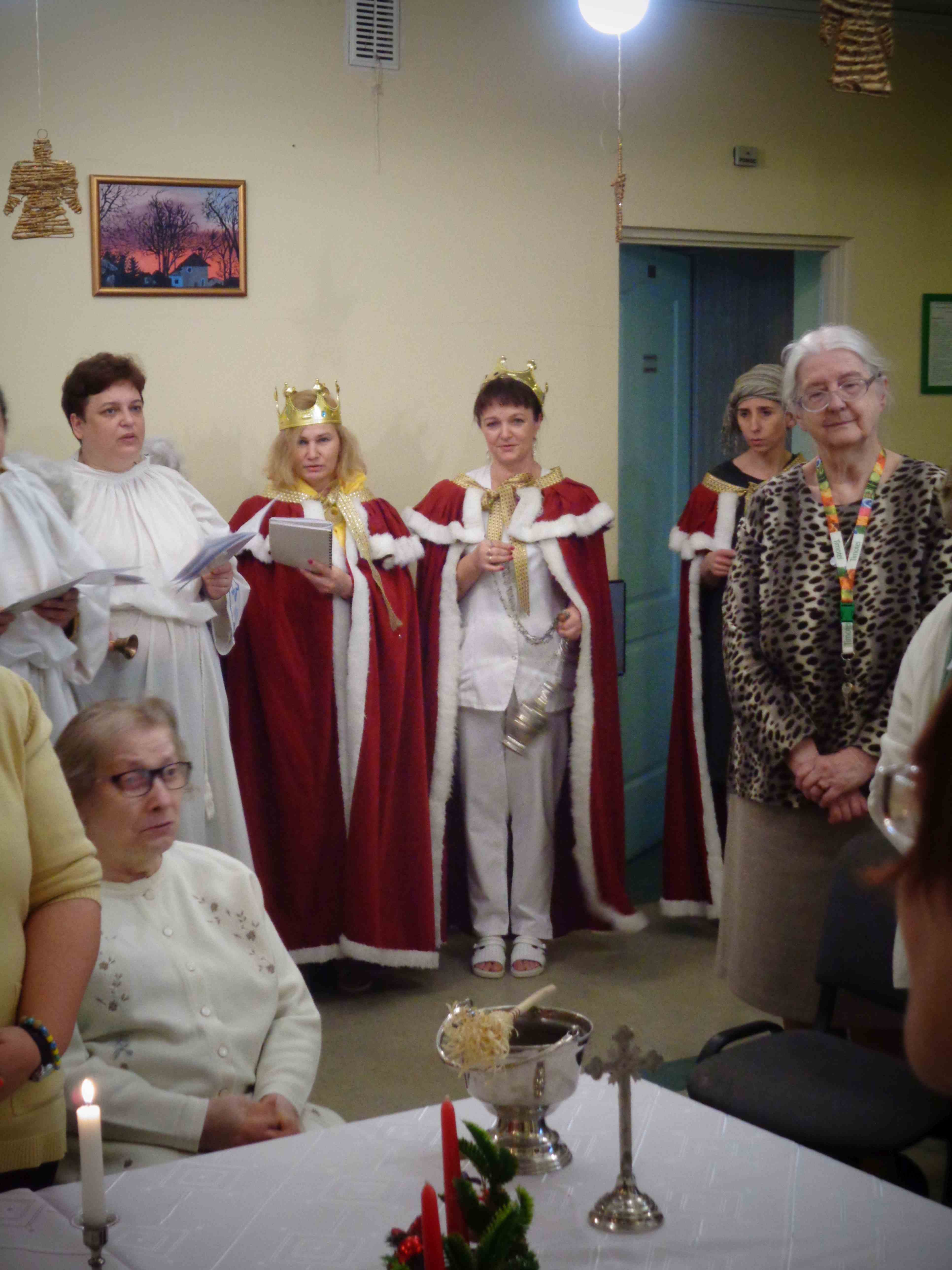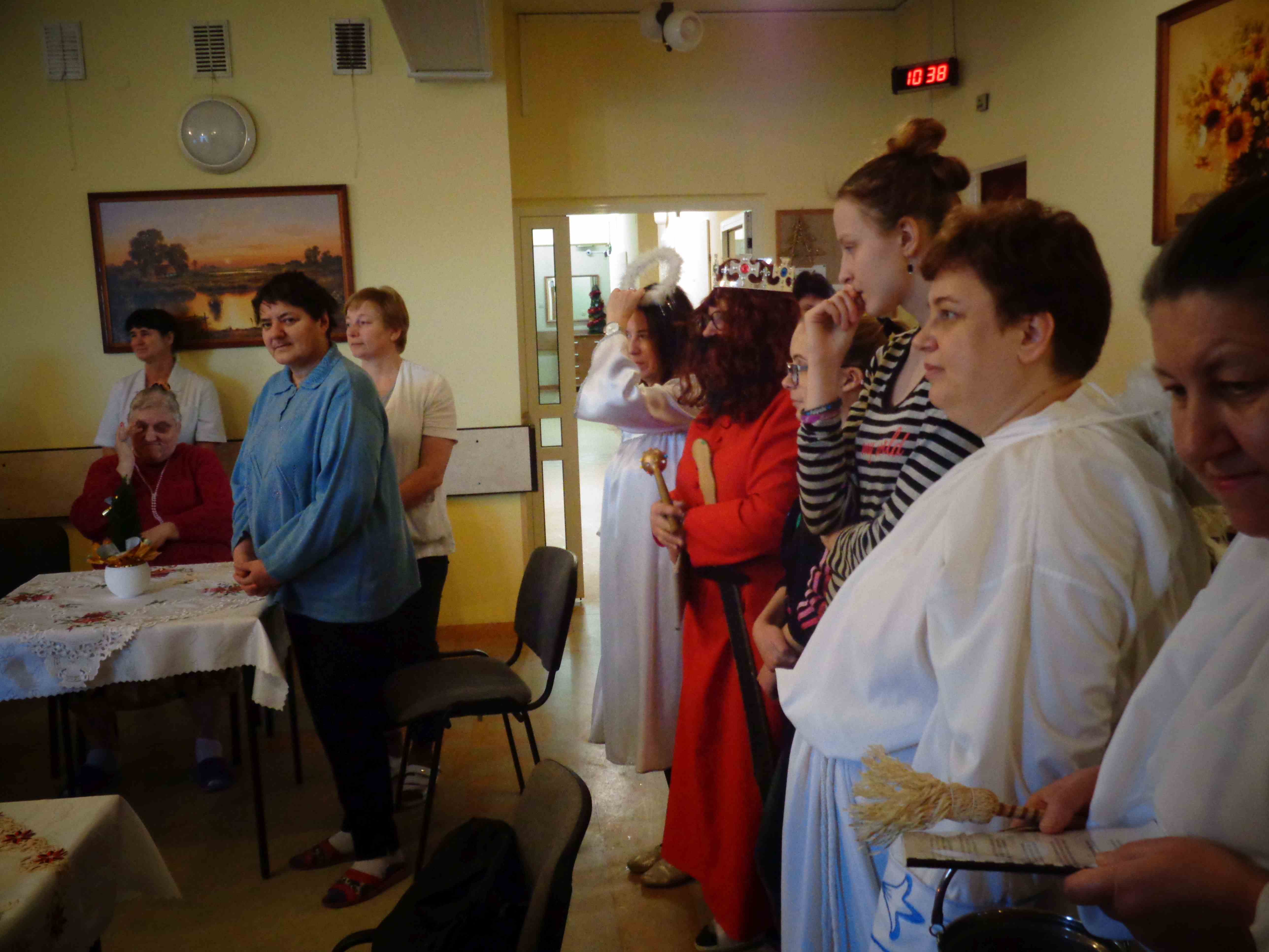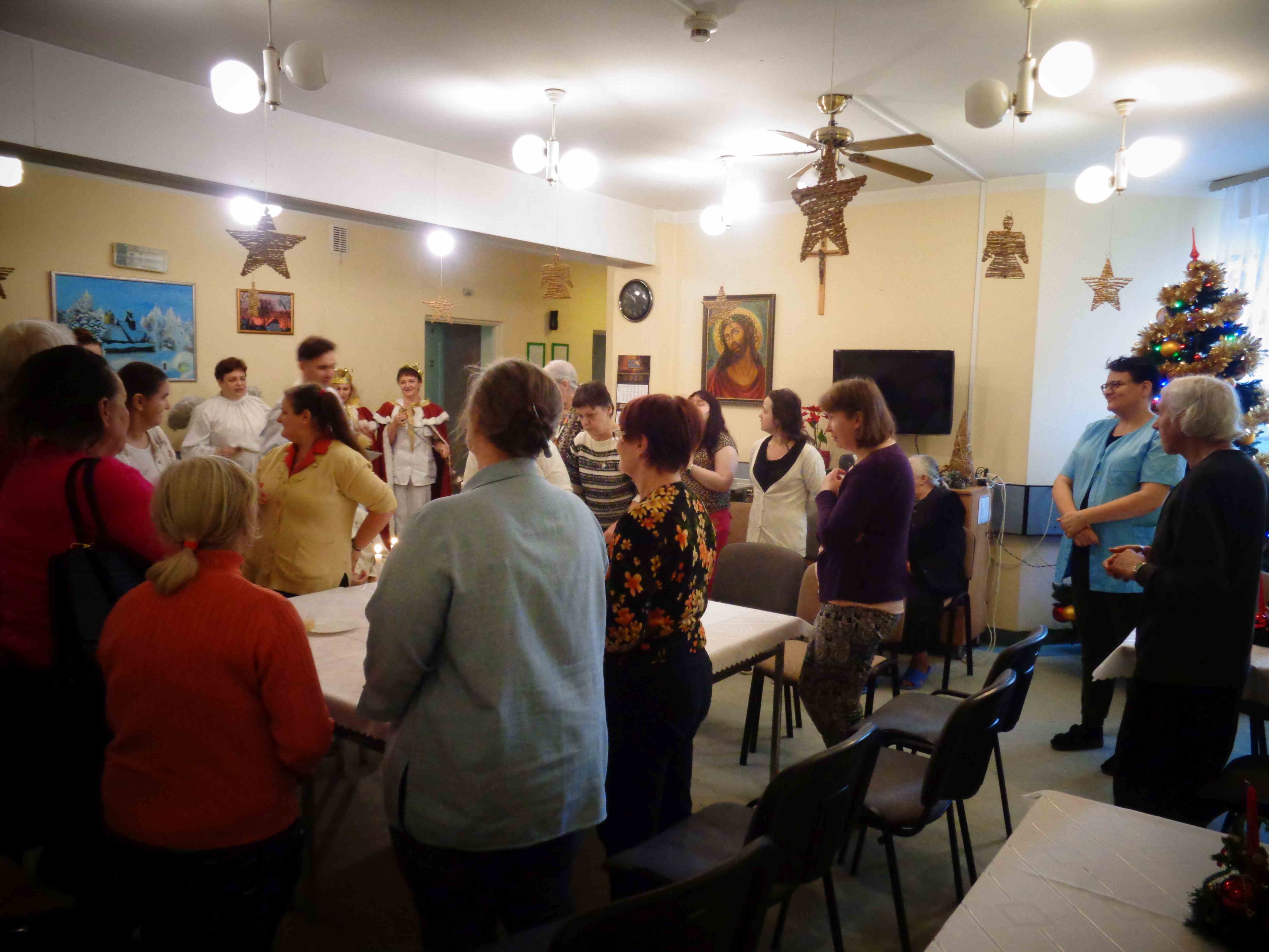 Dzień przed Świętem Trzech Króli w naszym Domu odbyła kolęda. Ks. kapelan Sebastian Lewczuk poświęcił pokoje mieszkanek, wspólne świetlice, pracownie terapii i rehabilitacji. Z roku na rok nasz orszak kolędników zasila coraz więcej osób – tym razem pracownicy i mieszkanki wcielili się w role króli, aniołów i Heroda. W przyszłym roku grono kolędników jeszcze się powiększy!