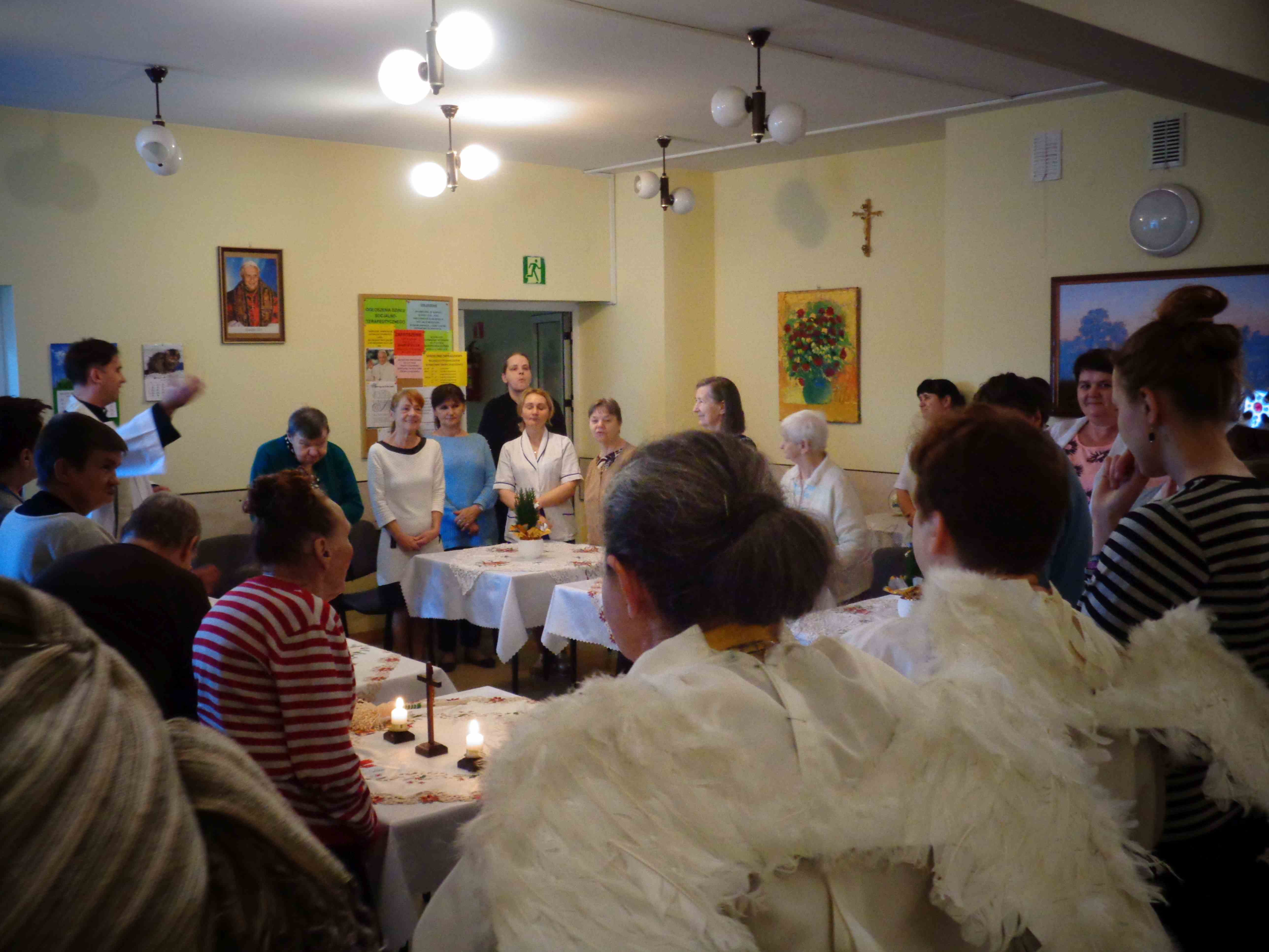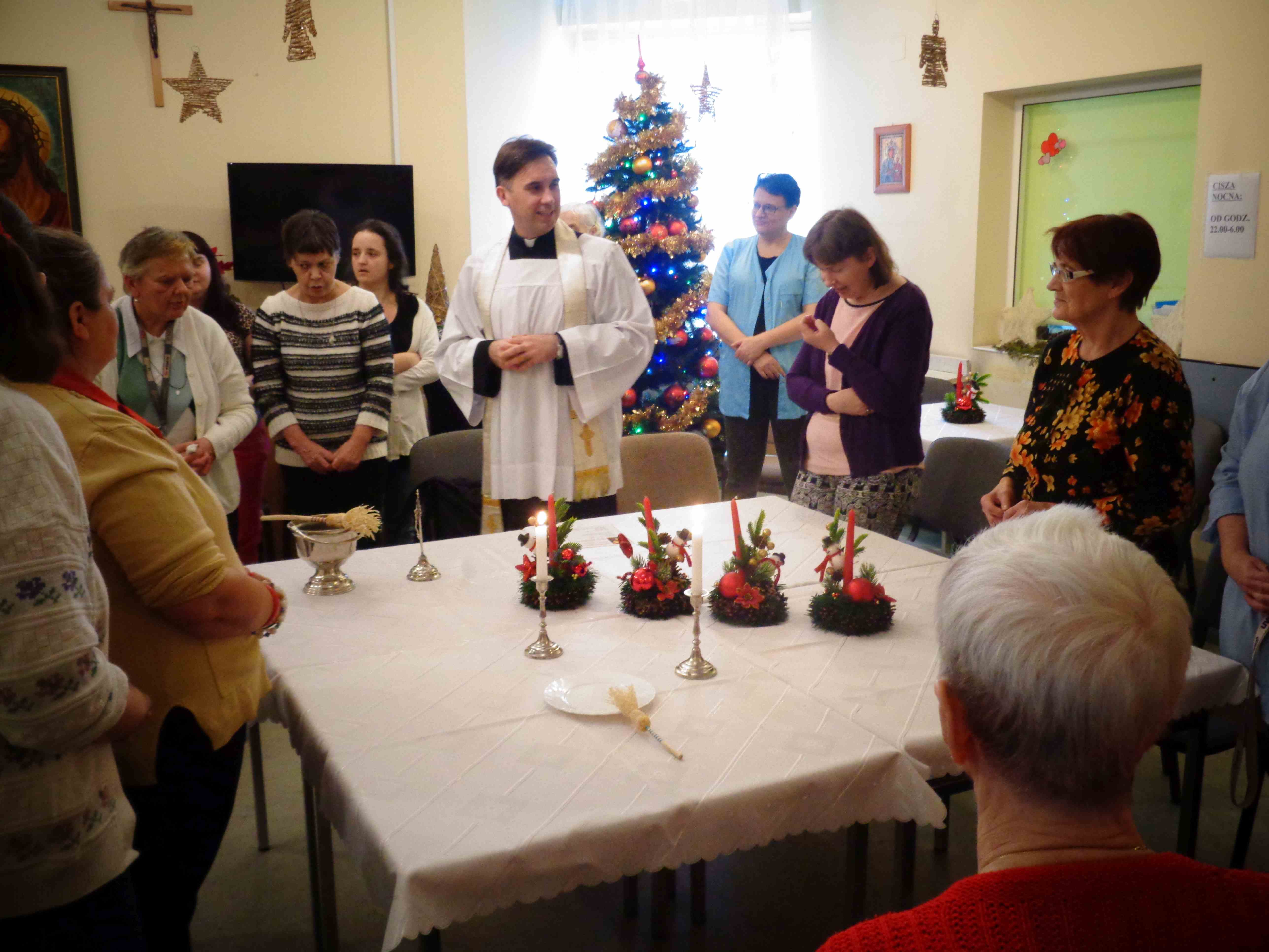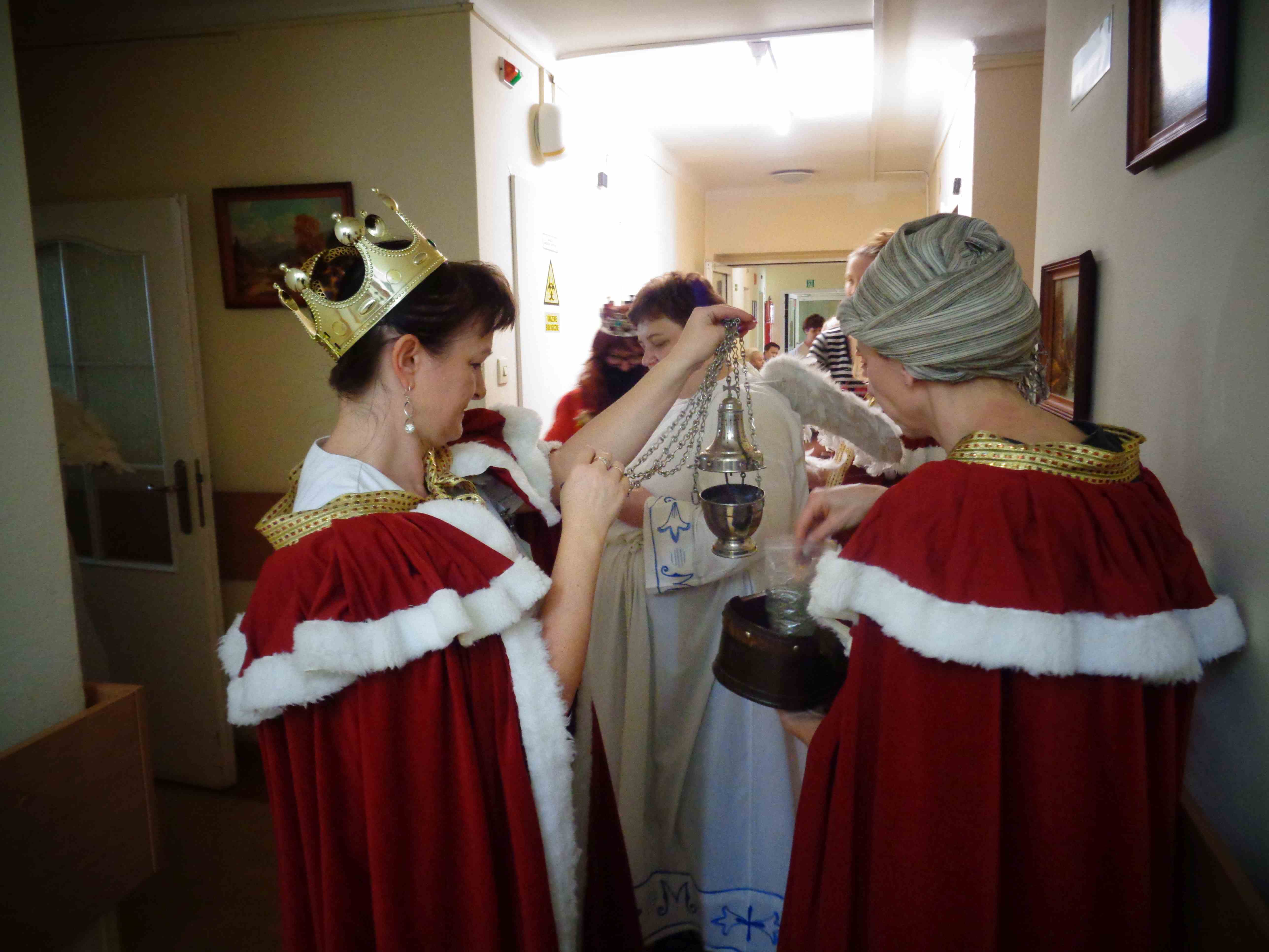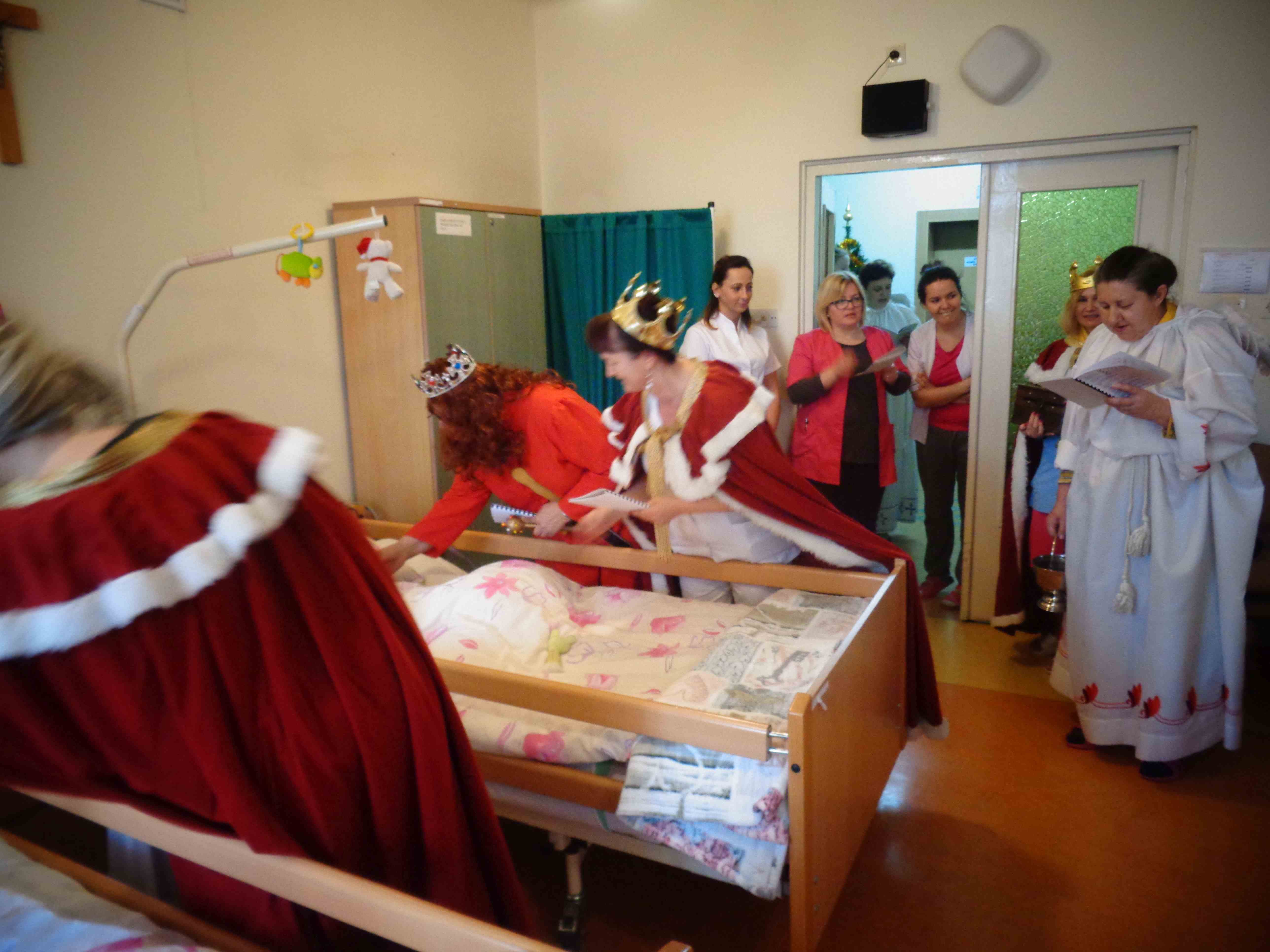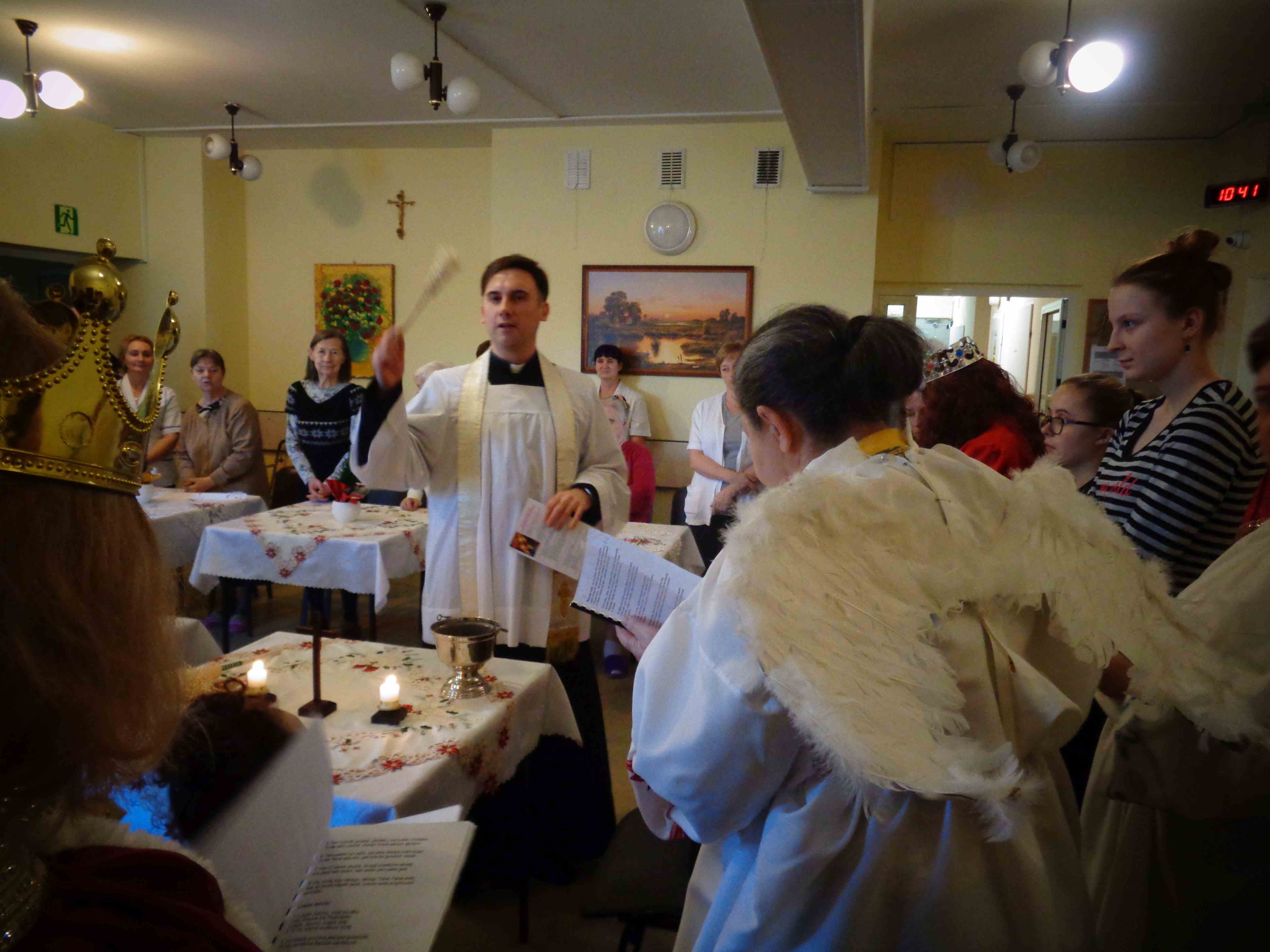 Dzień przed Świętem Trzech Króli w naszym Domu odbyła kolęda. Ks. kapelan Sebastian Lewczuk poświęcił pokoje mieszkanek, wspólne świetlice, pracownie terapii i rehabilitacji. Z roku na rok nasz orszak kolędników zasila coraz więcej osób – tym razem pracownicy i mieszkanki wcielili się w role króli, aniołów i Heroda. W przyszłym roku grono kolędników jeszcze się powiększy!