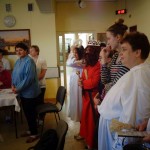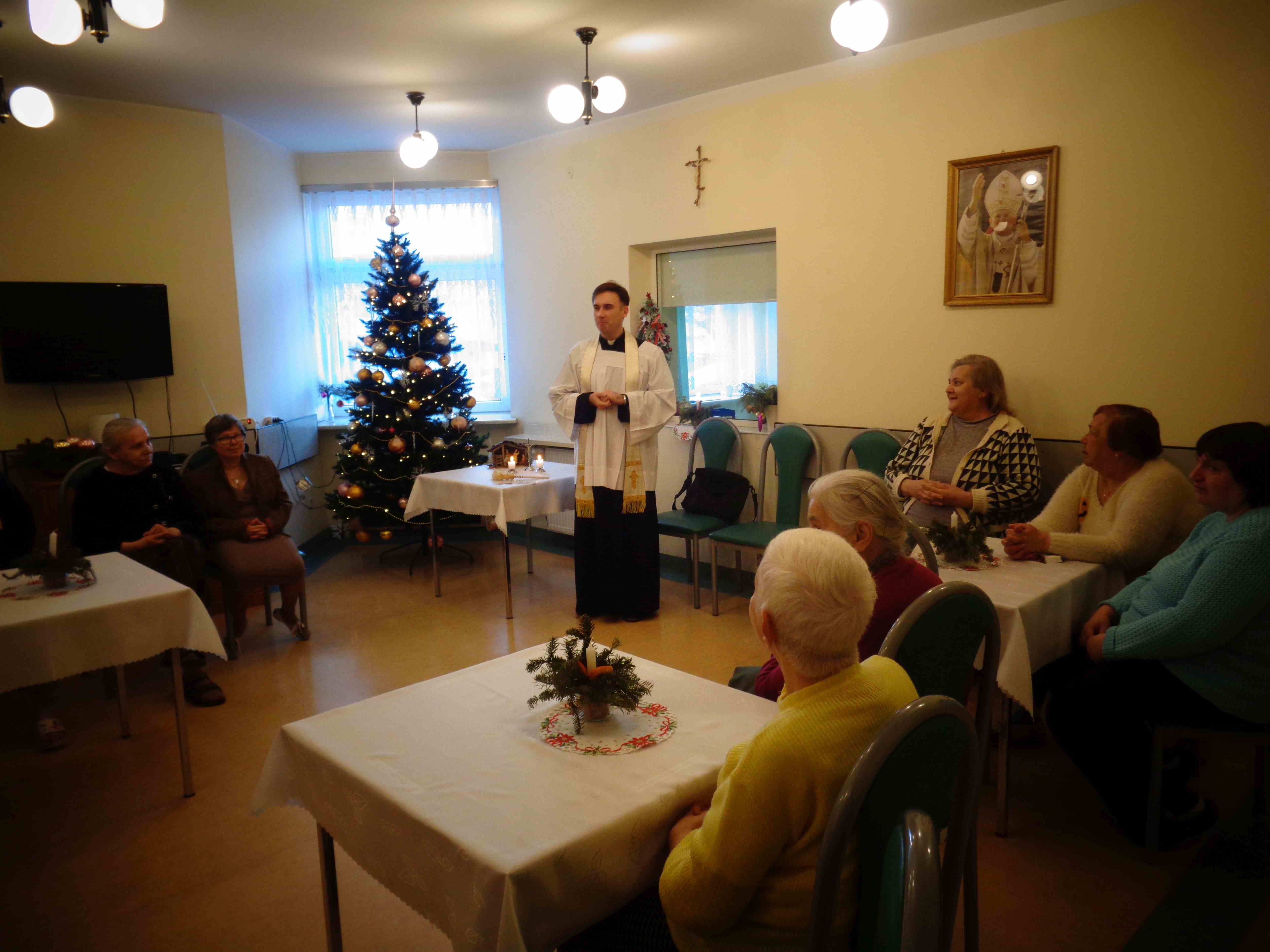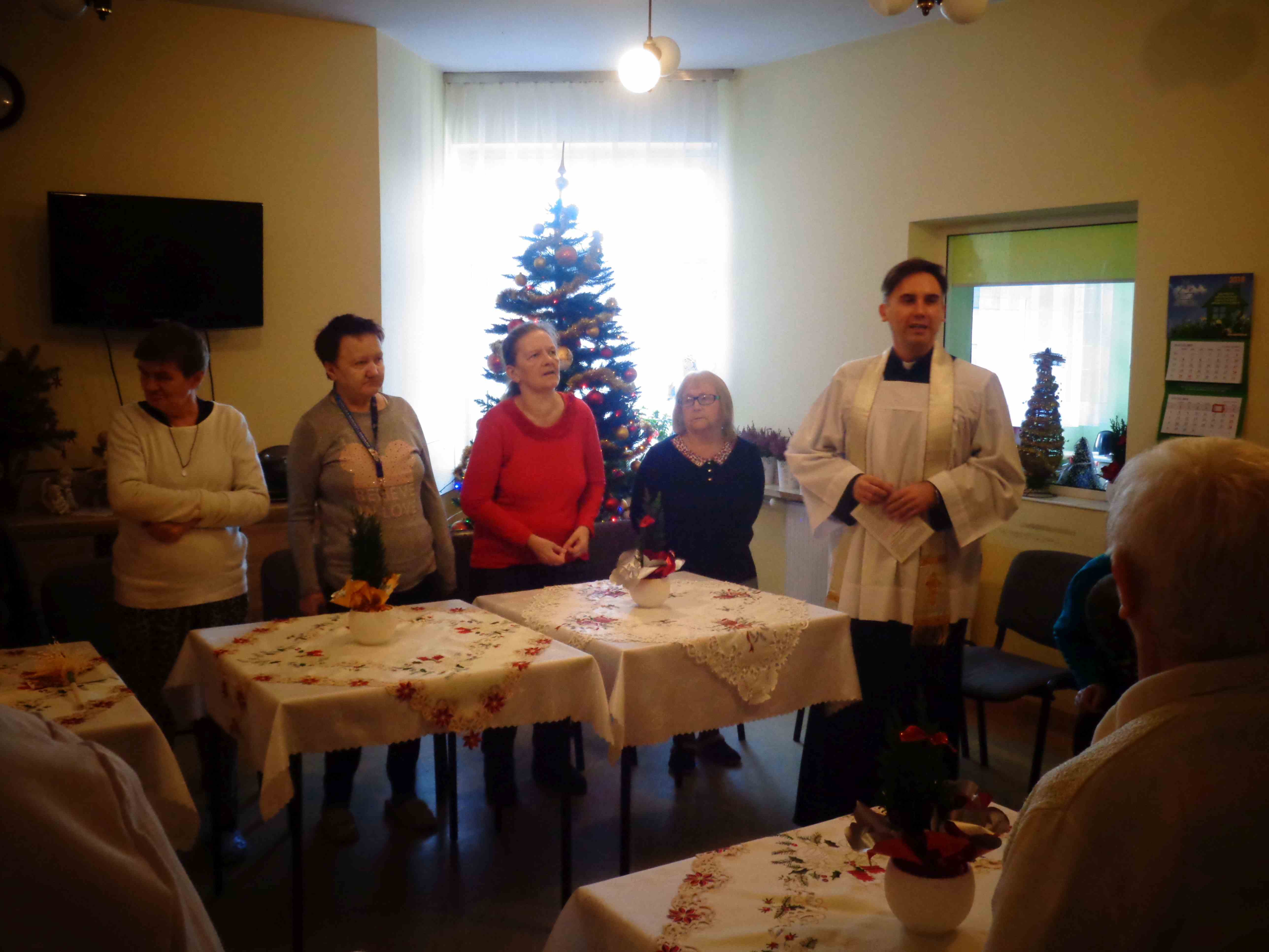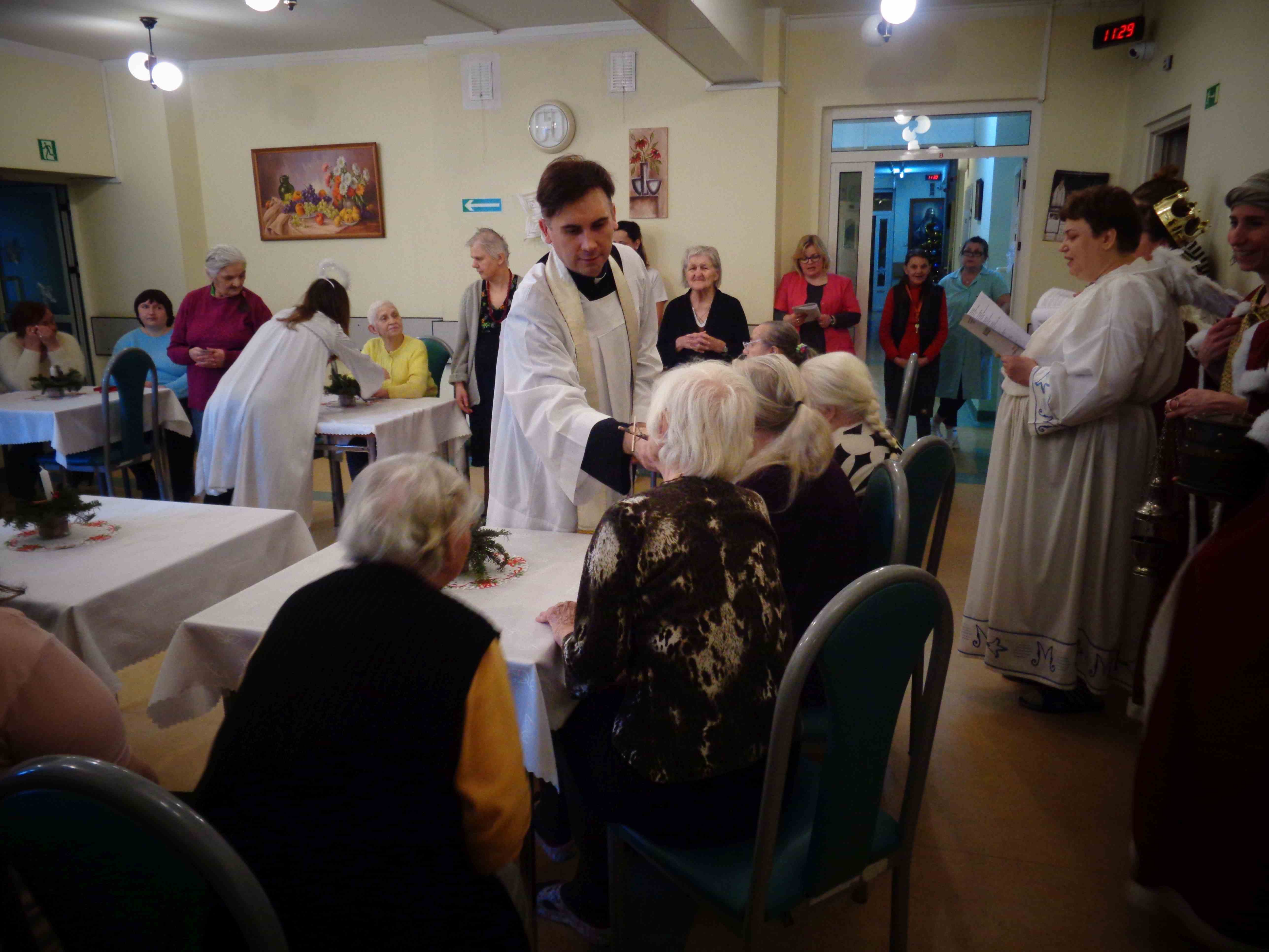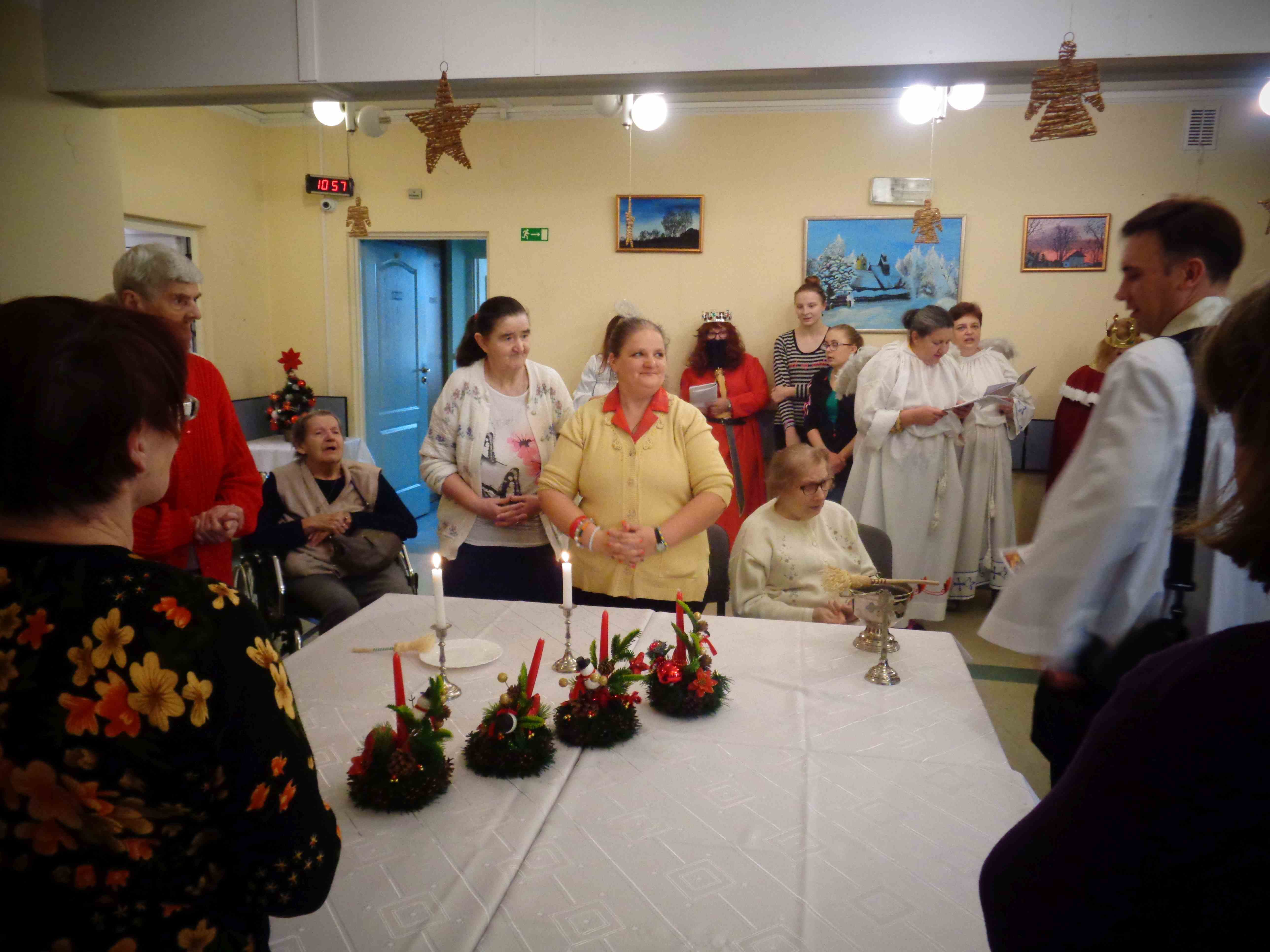 Dzień przed Świętem Trzech Króli w naszym Domu odbyła kolęda. Ks. kapelan Sebastian Lewczuk poświęcił pokoje mieszkanek, wspólne świetlice, pracownie terapii i rehabilitacji. Z roku na rok nasz orszak kolędników zasila coraz więcej osób – tym razem pracownicy i mieszkanki wcielili się w role króli, aniołów i Heroda. W przyszłym roku grono kolędników jeszcze się powiększy!