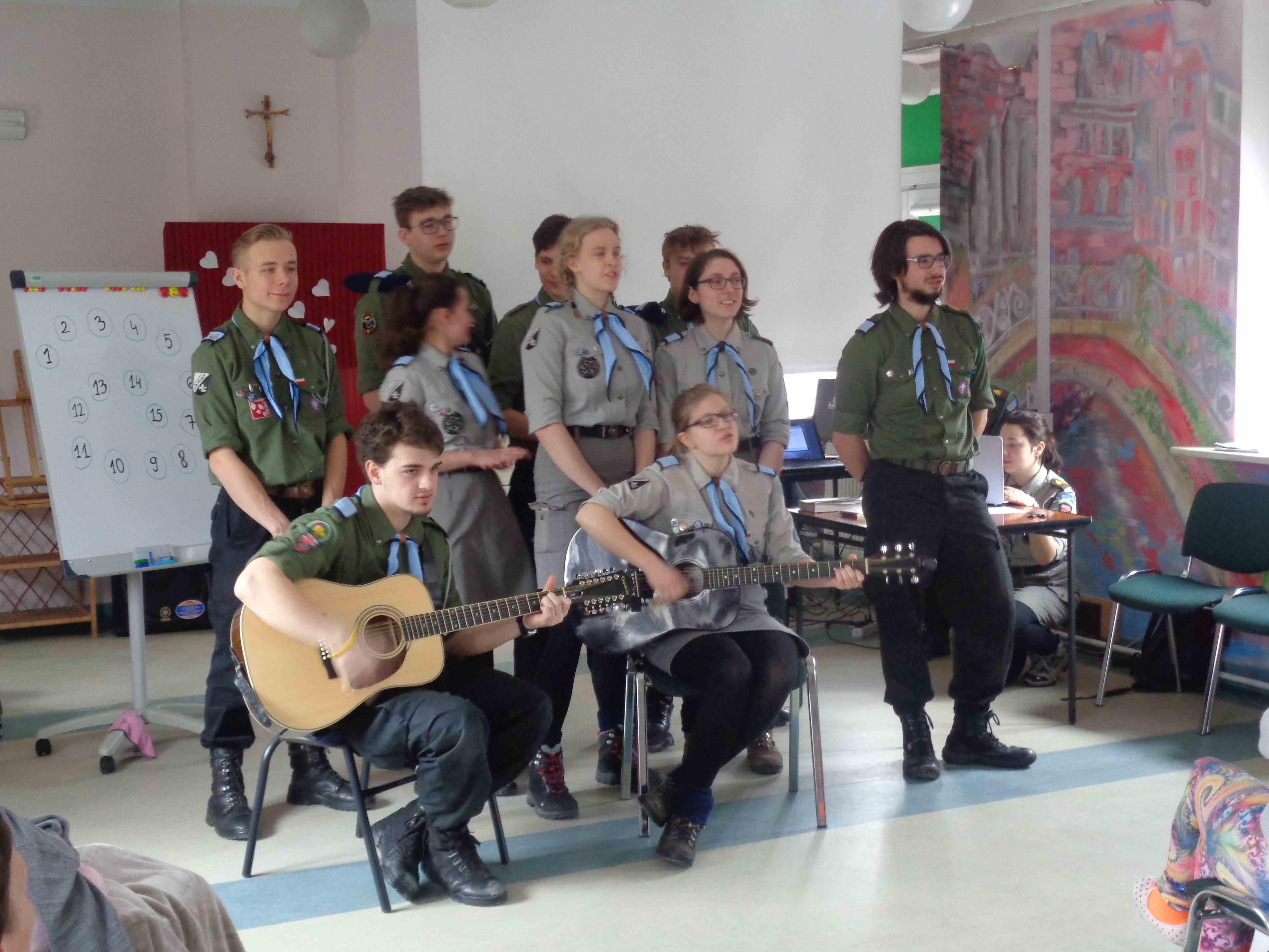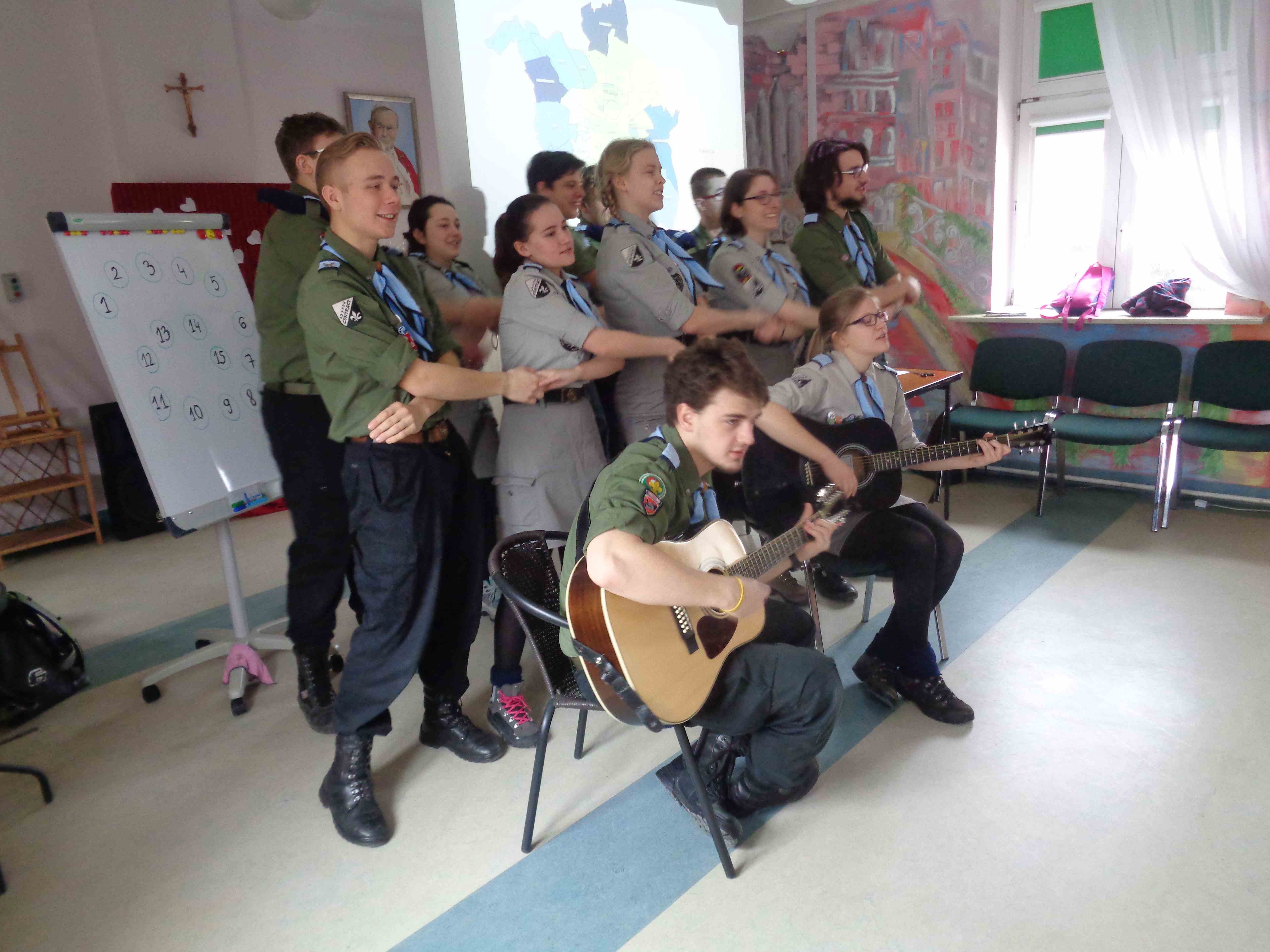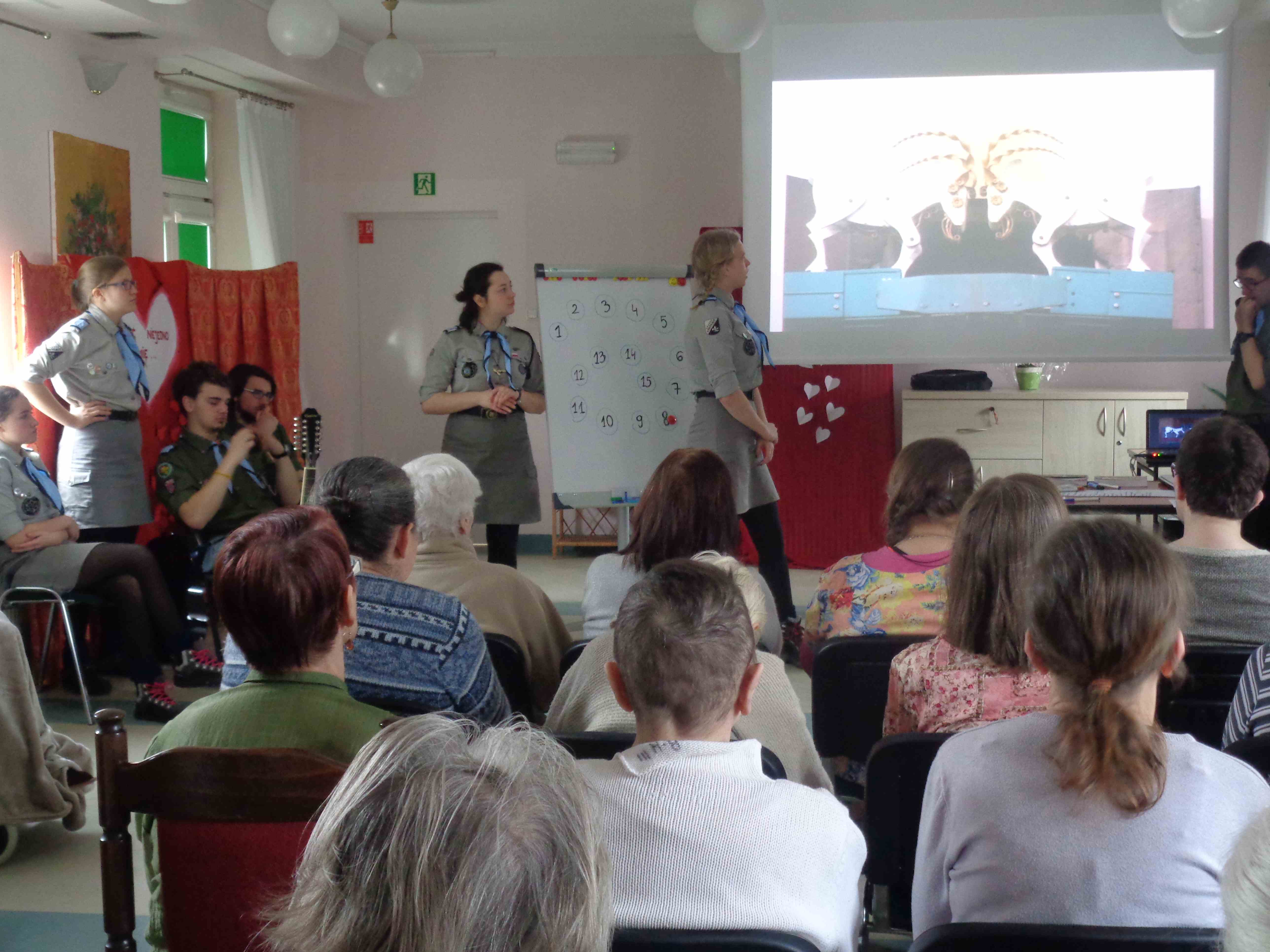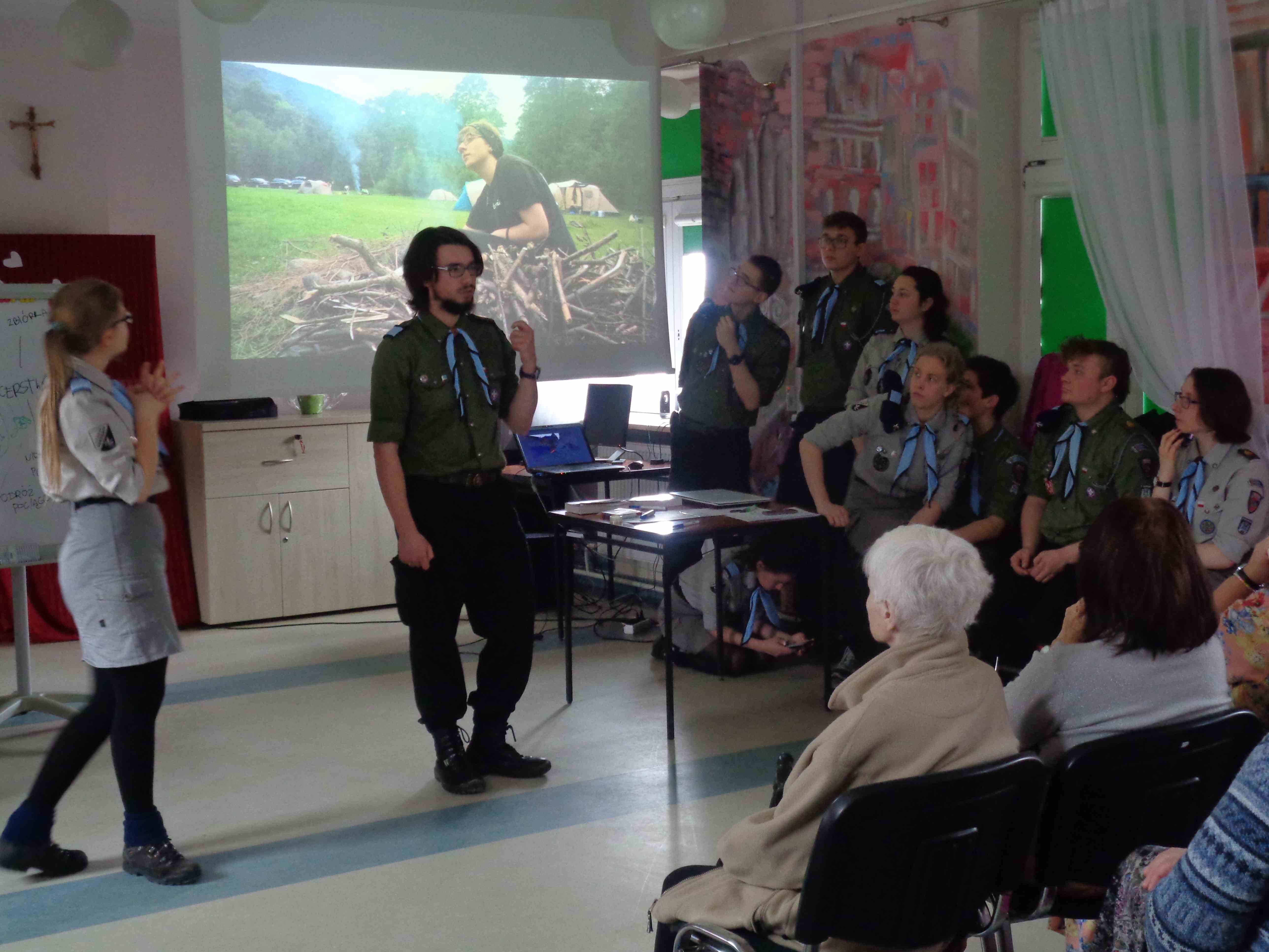 Serdecznie dziękujemy Drużynie Wędrowniczej z Poznania za spędzenie całego dnia razem z nami! Harcerze przygotowali dla mieszkanek nietypowy klub podróżnika – pokazali zdjęcia i opowiedzieli o swoim rodzinnym mieście. Przedstawili nam również zwyczaje i piosenki harcerskie. Po obiedzie odwiedzali panie w pokojach, czas upłynął na rozmowach i wspólnym śpiewaniu. To bardzo ważna i miła dla nas wizyta, dziękujemy i raz jeszcze życzymy młodym harcerzom zapału w realizacji podobnych inicjatyw!