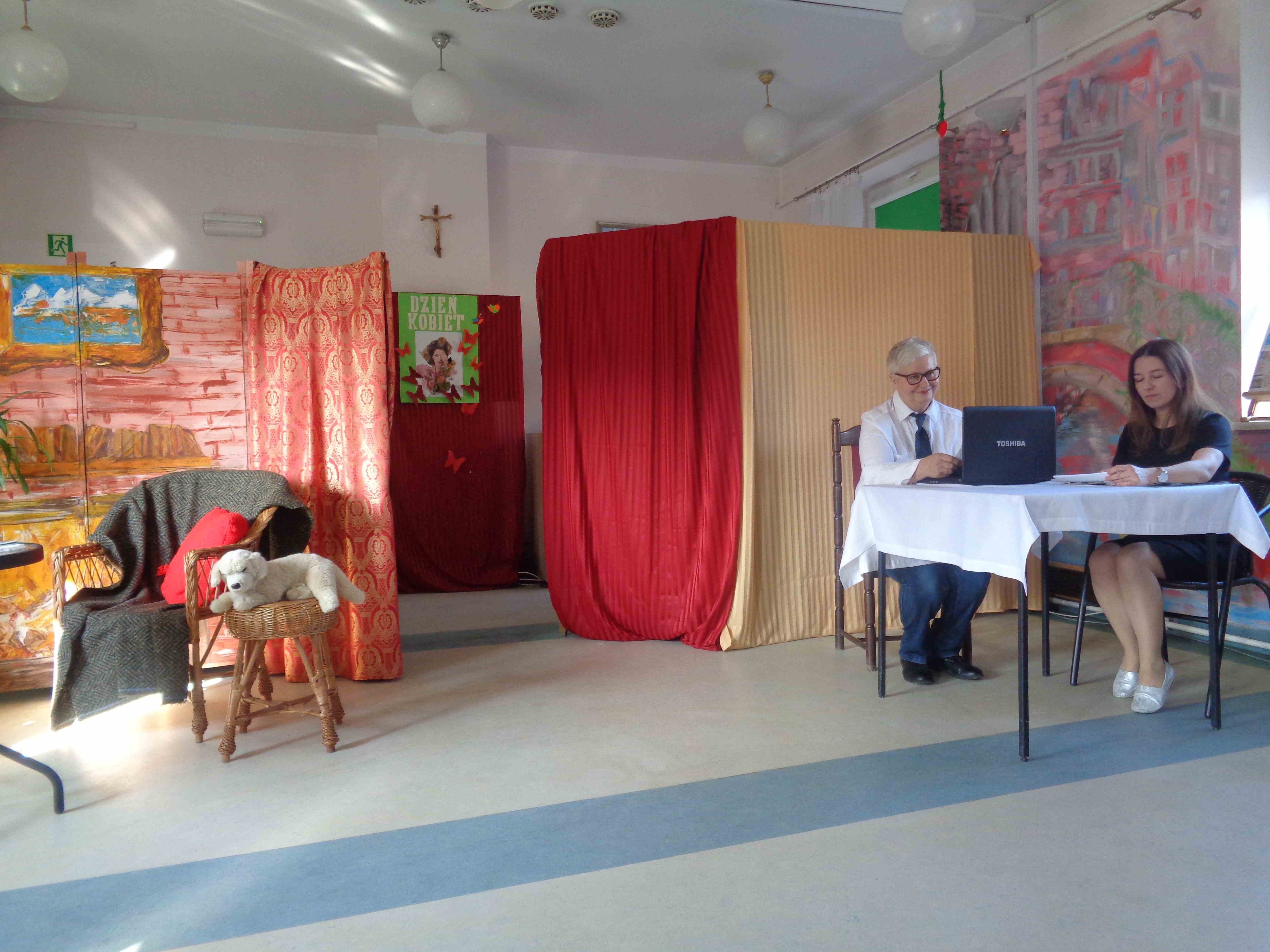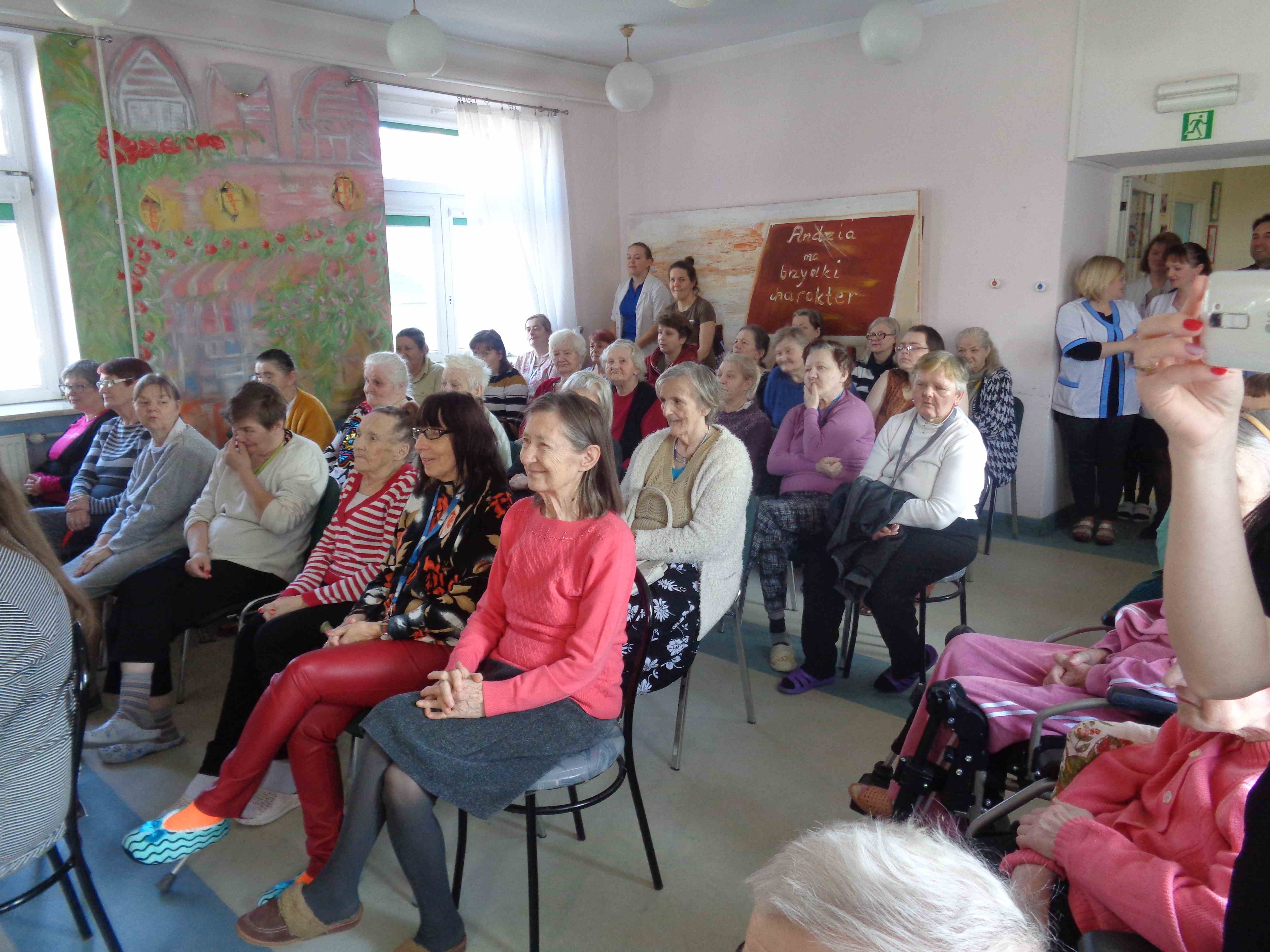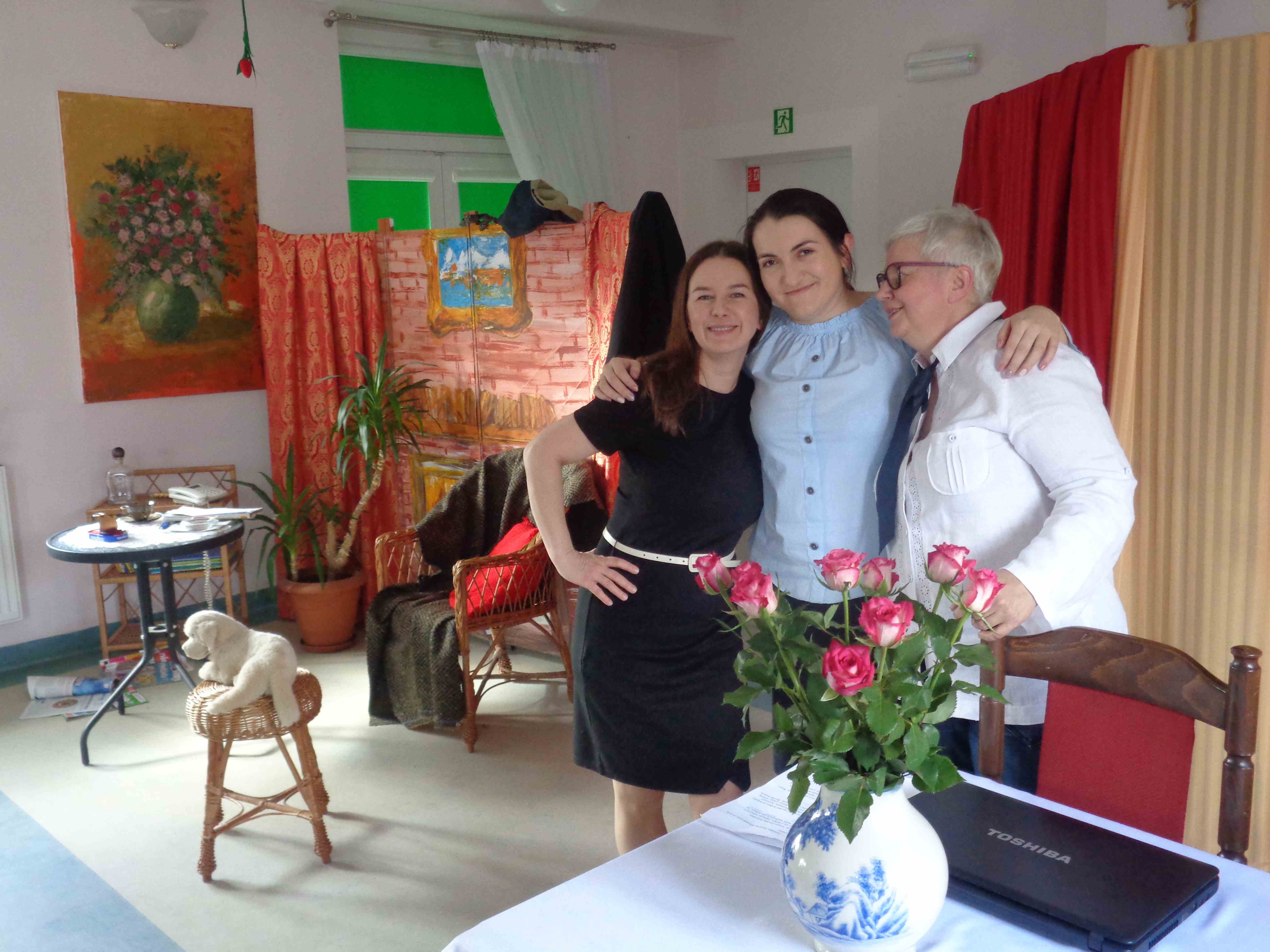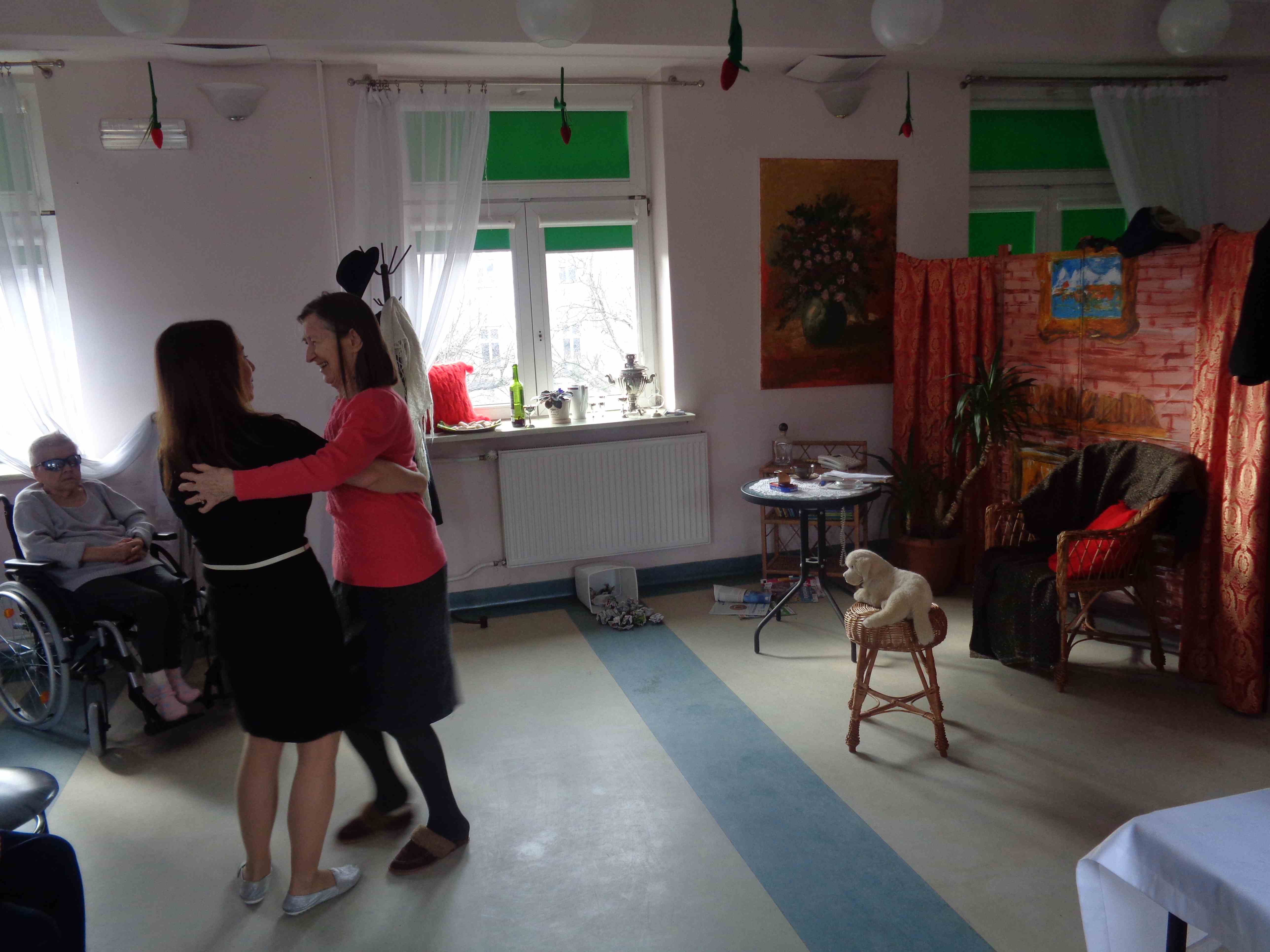 Pracownicy działu socjalno-terapeutycznego przygotowali dla naszych mieszkanek wyjątkową niespodziankę z okazji Dnia Kobiet. Zwykle to Grupa Teatralna „Albercik” bawi i wzrusza naszych domowników, dziś tę rolę przyjęli na siebie pracownicy! Terapeuci, psycholog i pracownik socjalny przygotowali wspólnie całe widowisko – scenariusz, scenografię i stroje oraz oczywiście najważniejsze – występ na scenie.