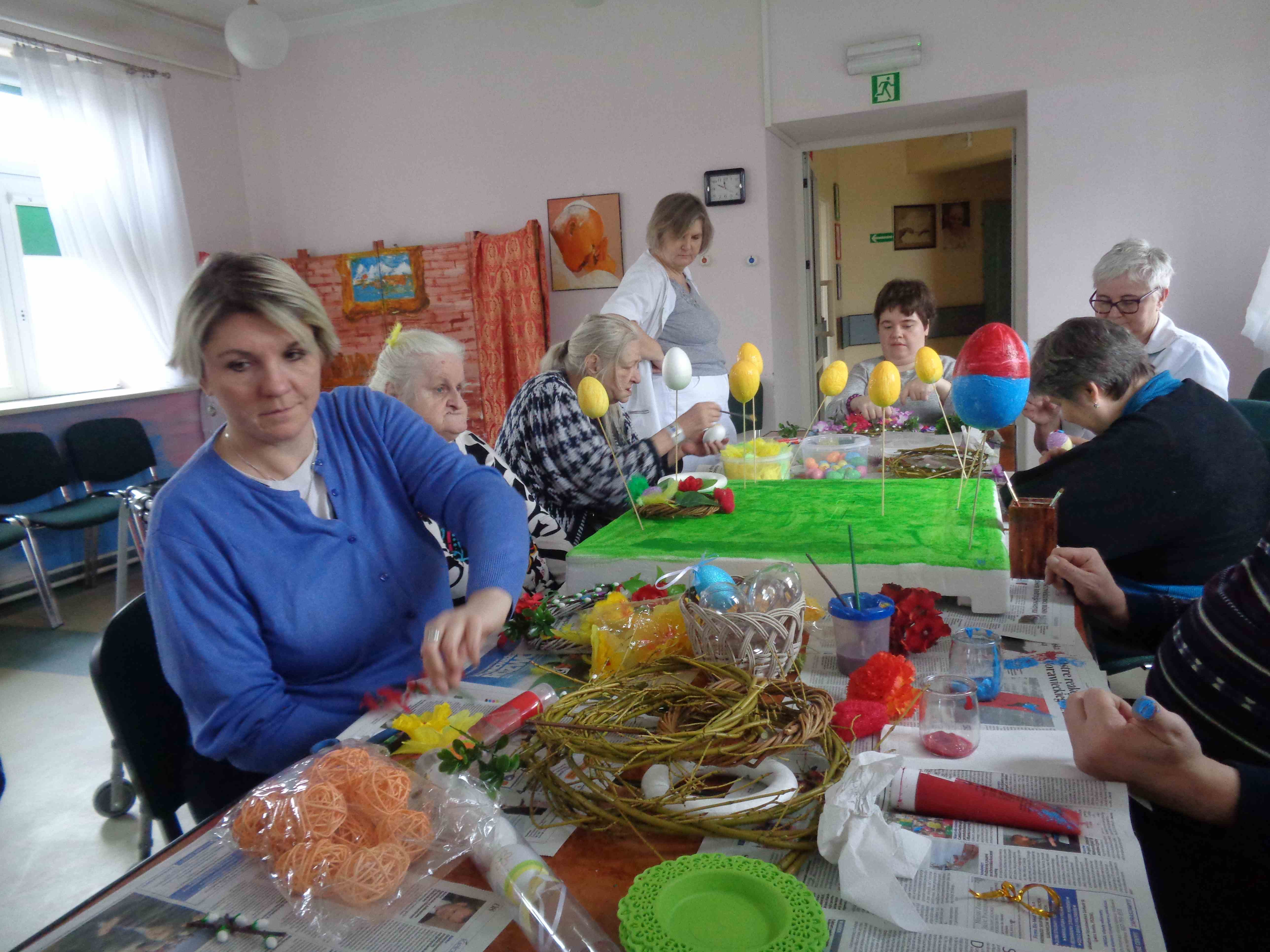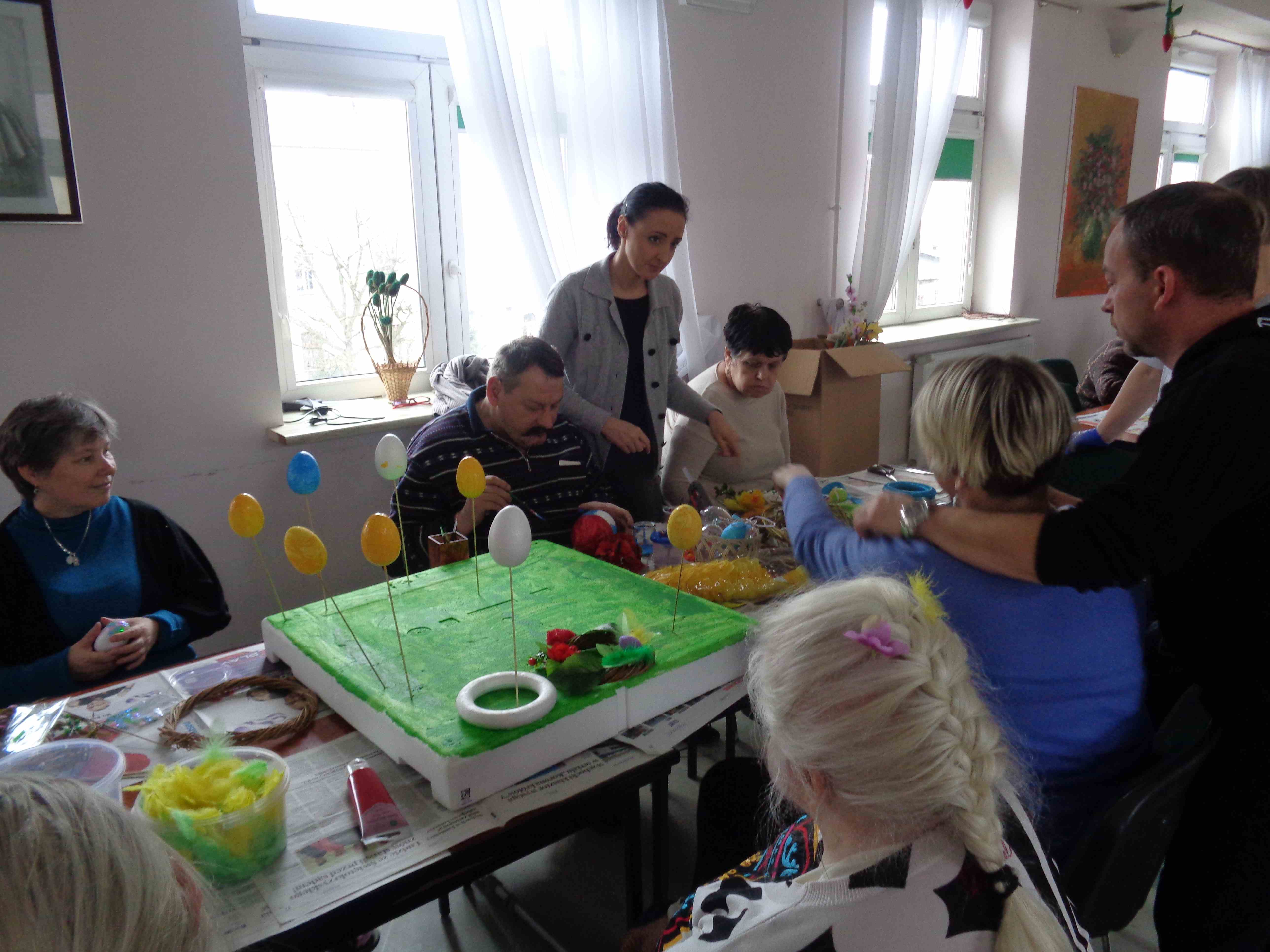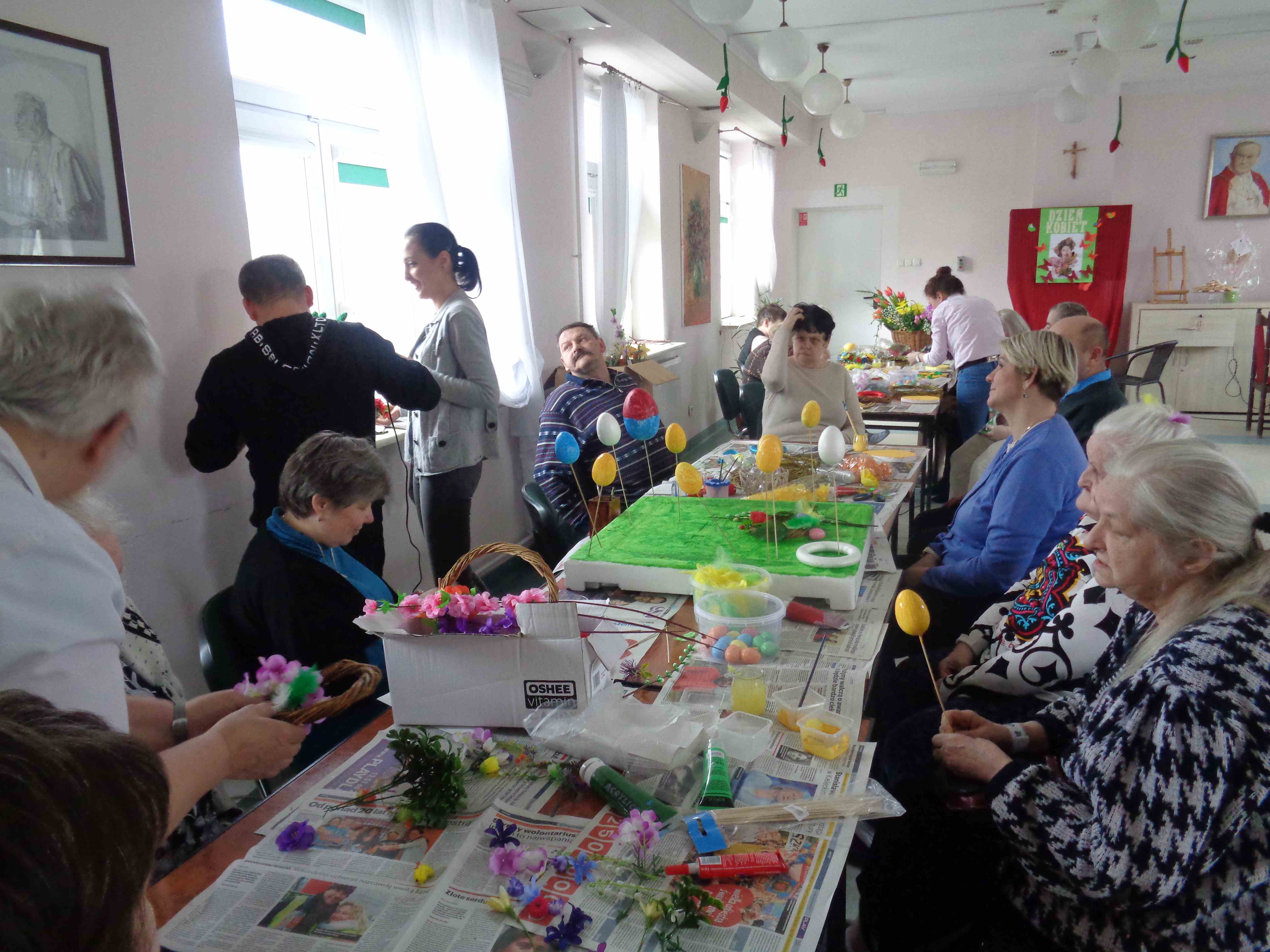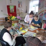 Przedświąteczny czas spędzamy na zajęciach plastycznych – w dn. 14.03.2018 wspólnie z uczestnikami Środowiskowego Domu Samopomocy z ul. Orzeszkowej mieszkanki przygotowywały wielkanocne ozdoby ze sztucznych kwiatów i kolorowe styropianowe pisanki.