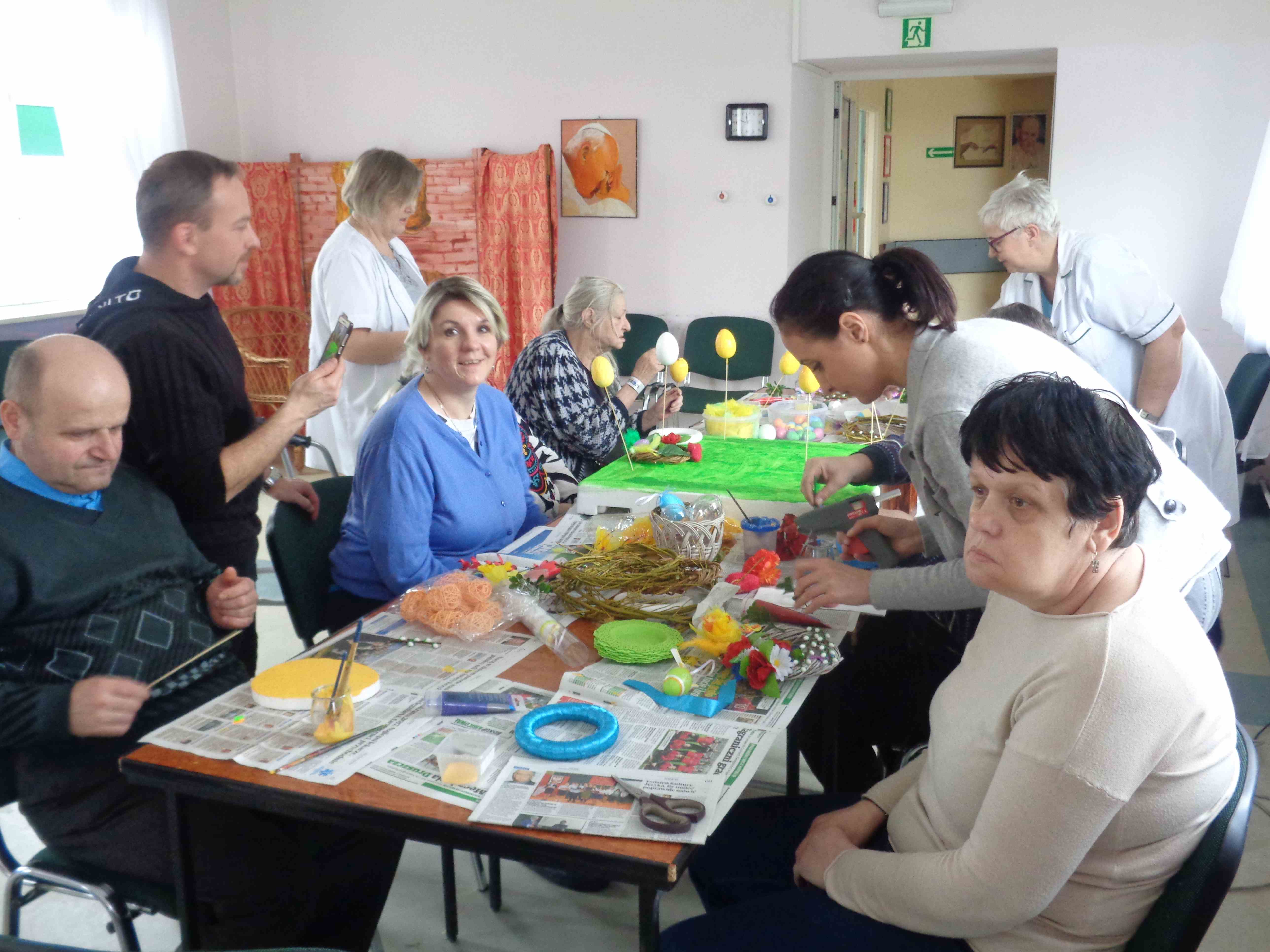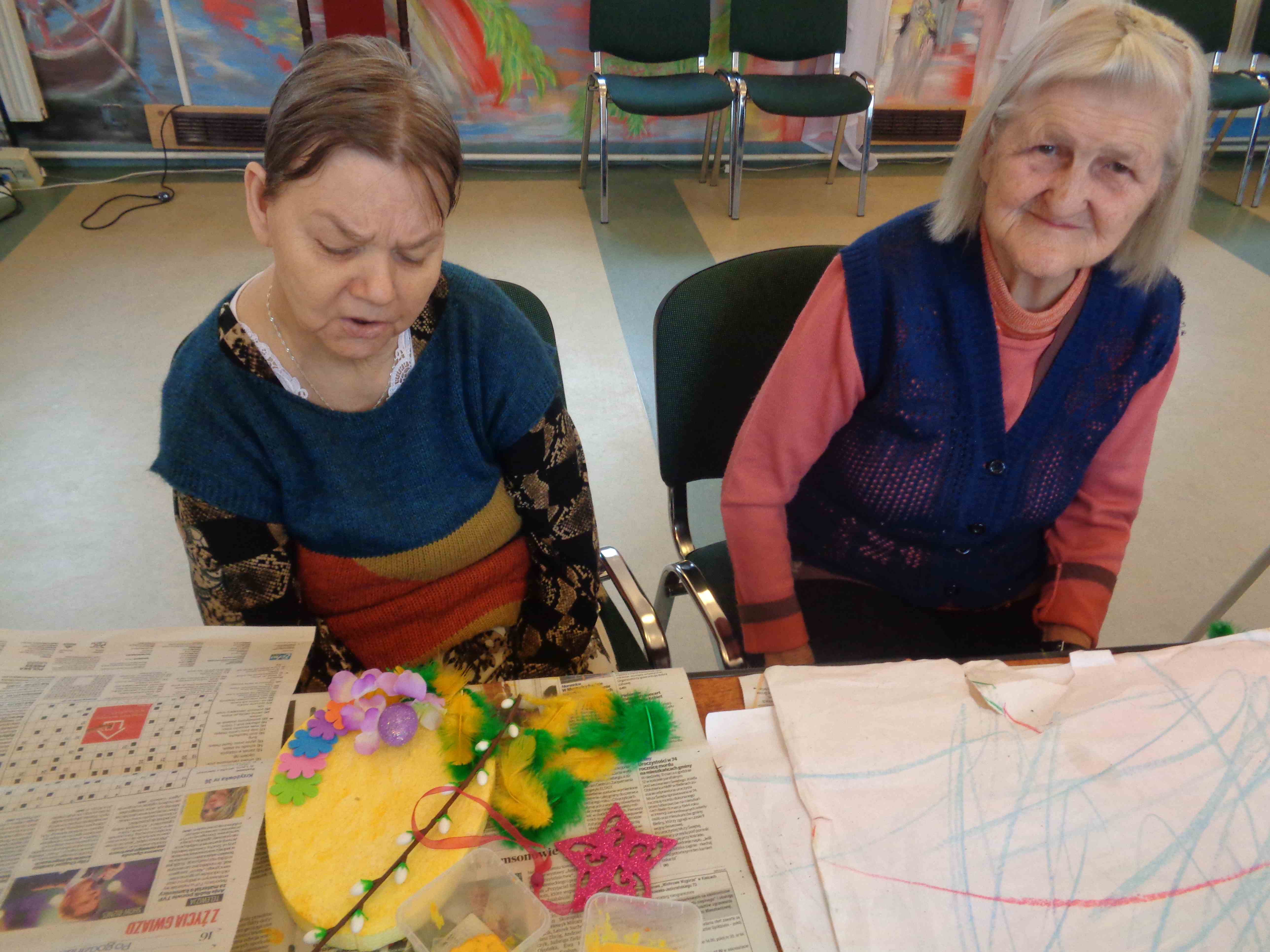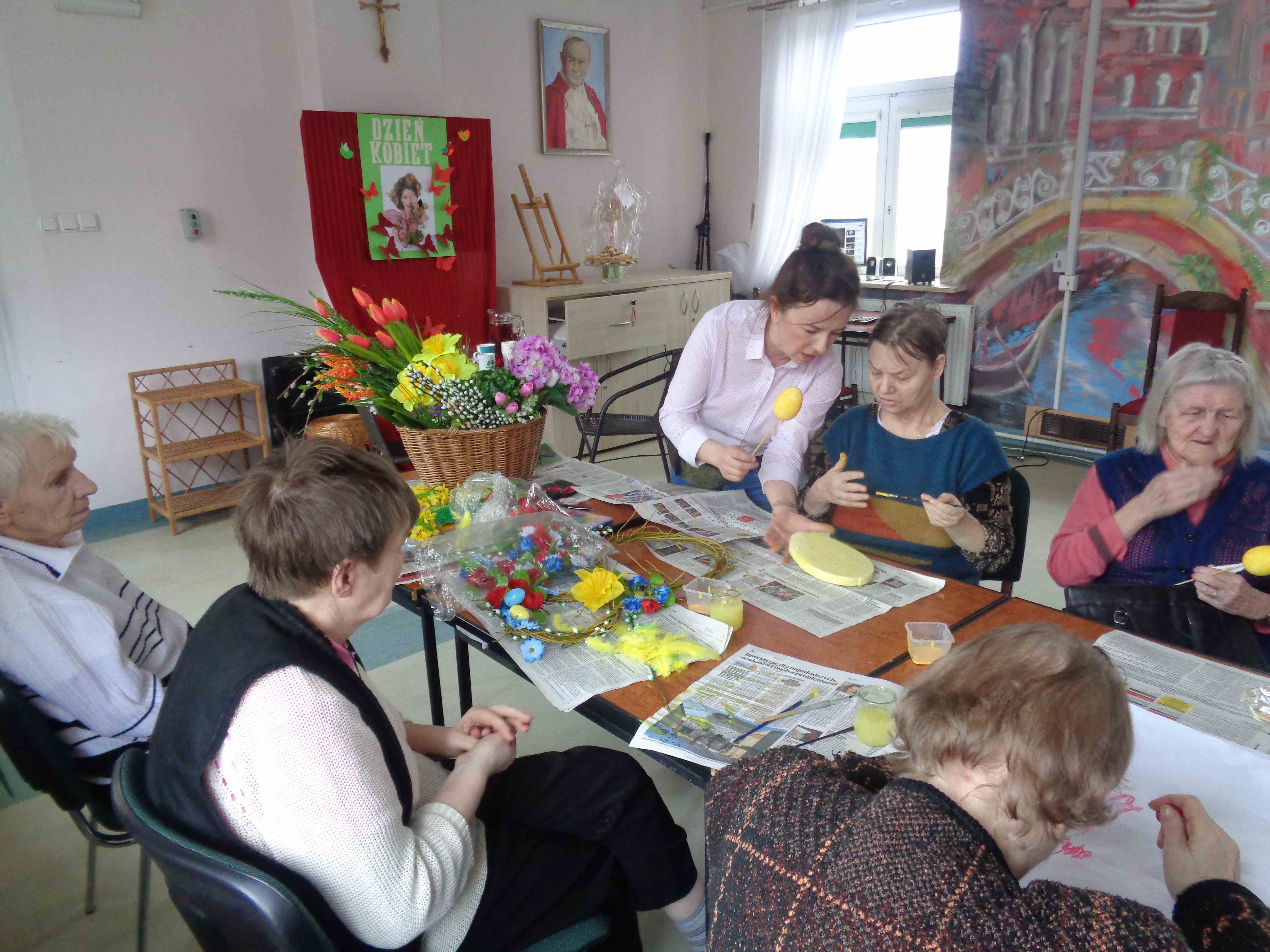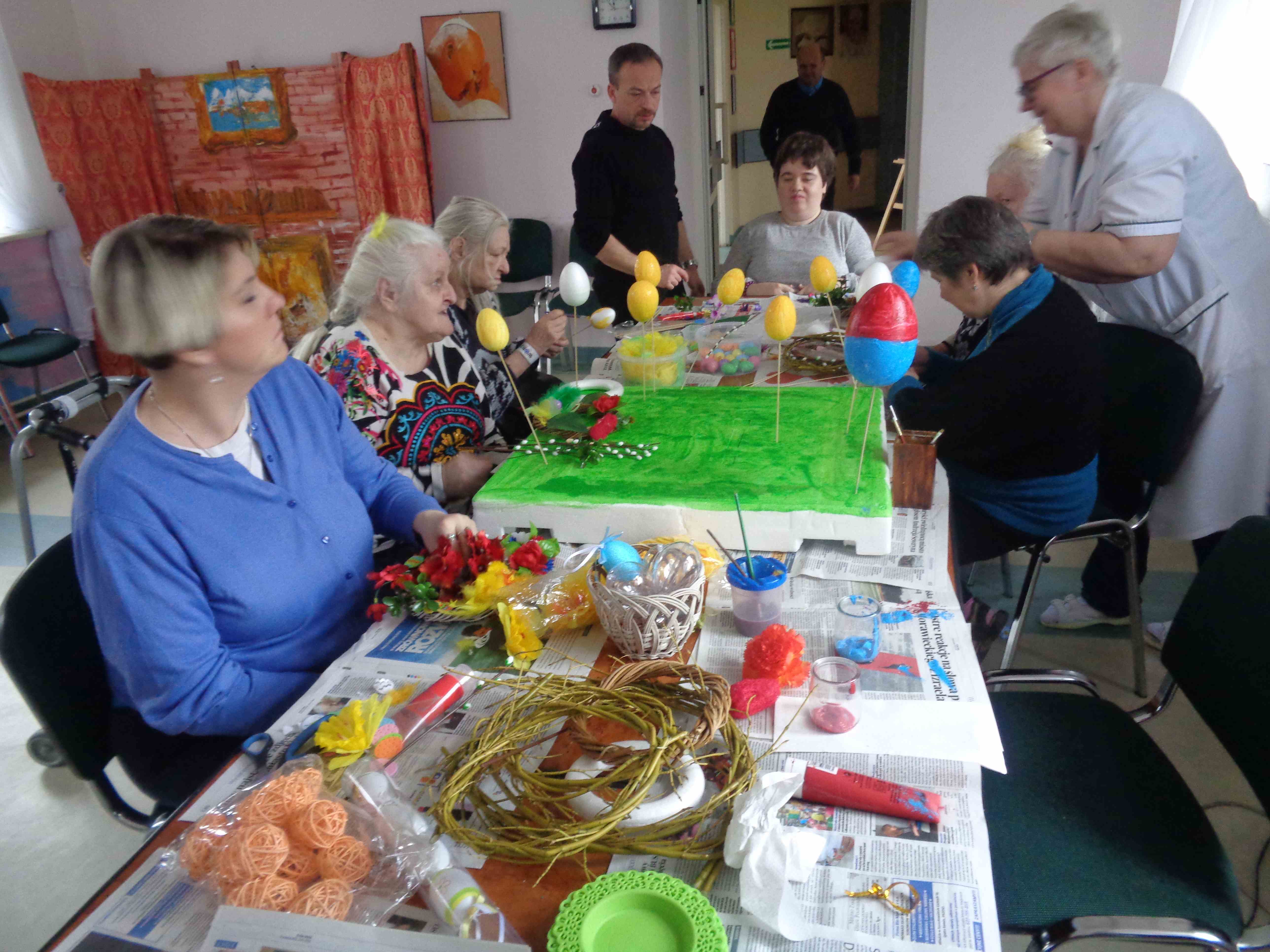 Przedświąteczny czas spędzamy na zajęciach plastycznych – w dn. 14.03.2018 wspólnie z uczestnikami Środowiskowego Domu Samopomocy z ul. Orzeszkowej mieszkanki przygotowywały wielkanocne ozdoby ze sztucznych kwiatów i kolorowe styropianowe pisanki.