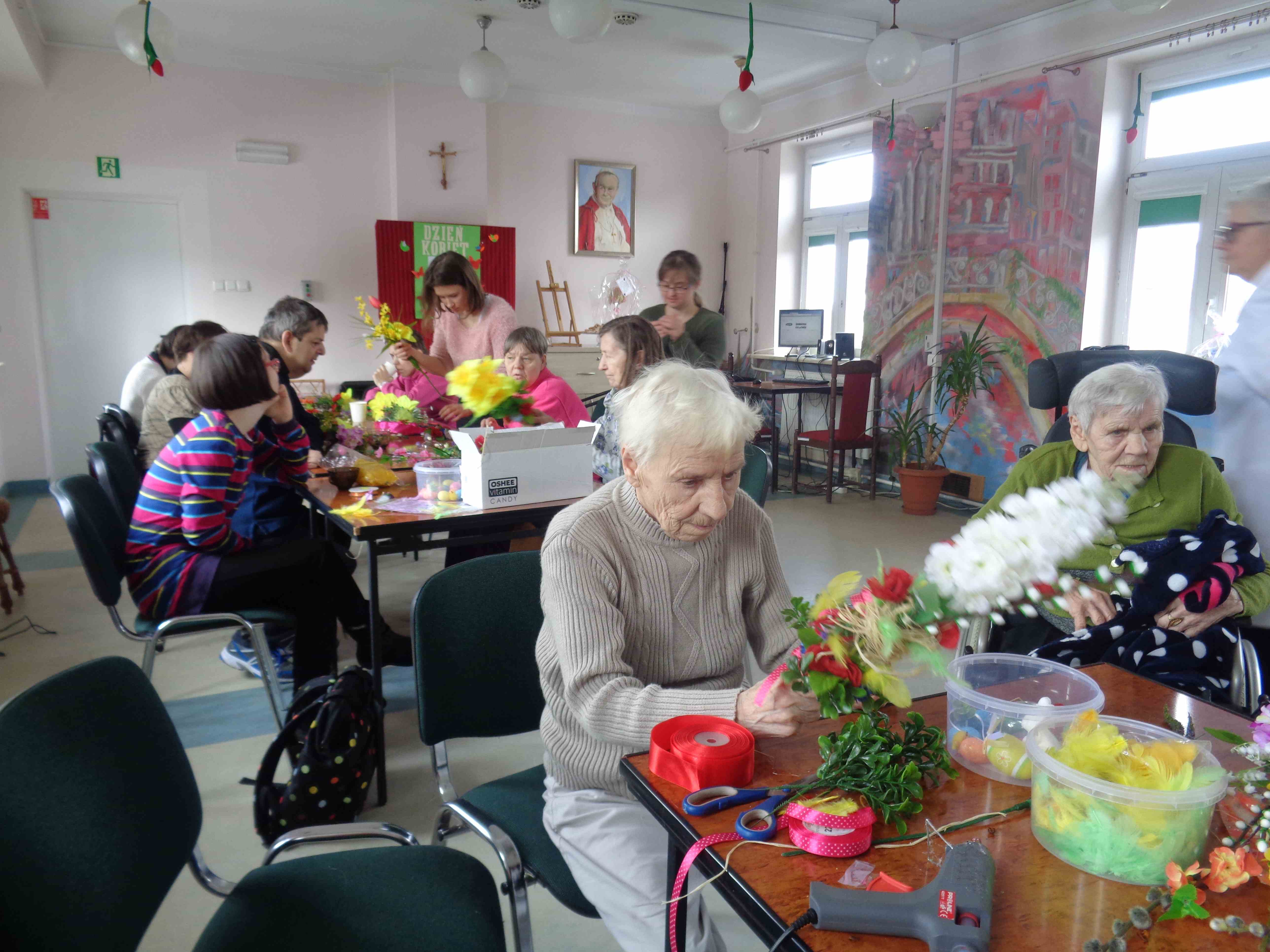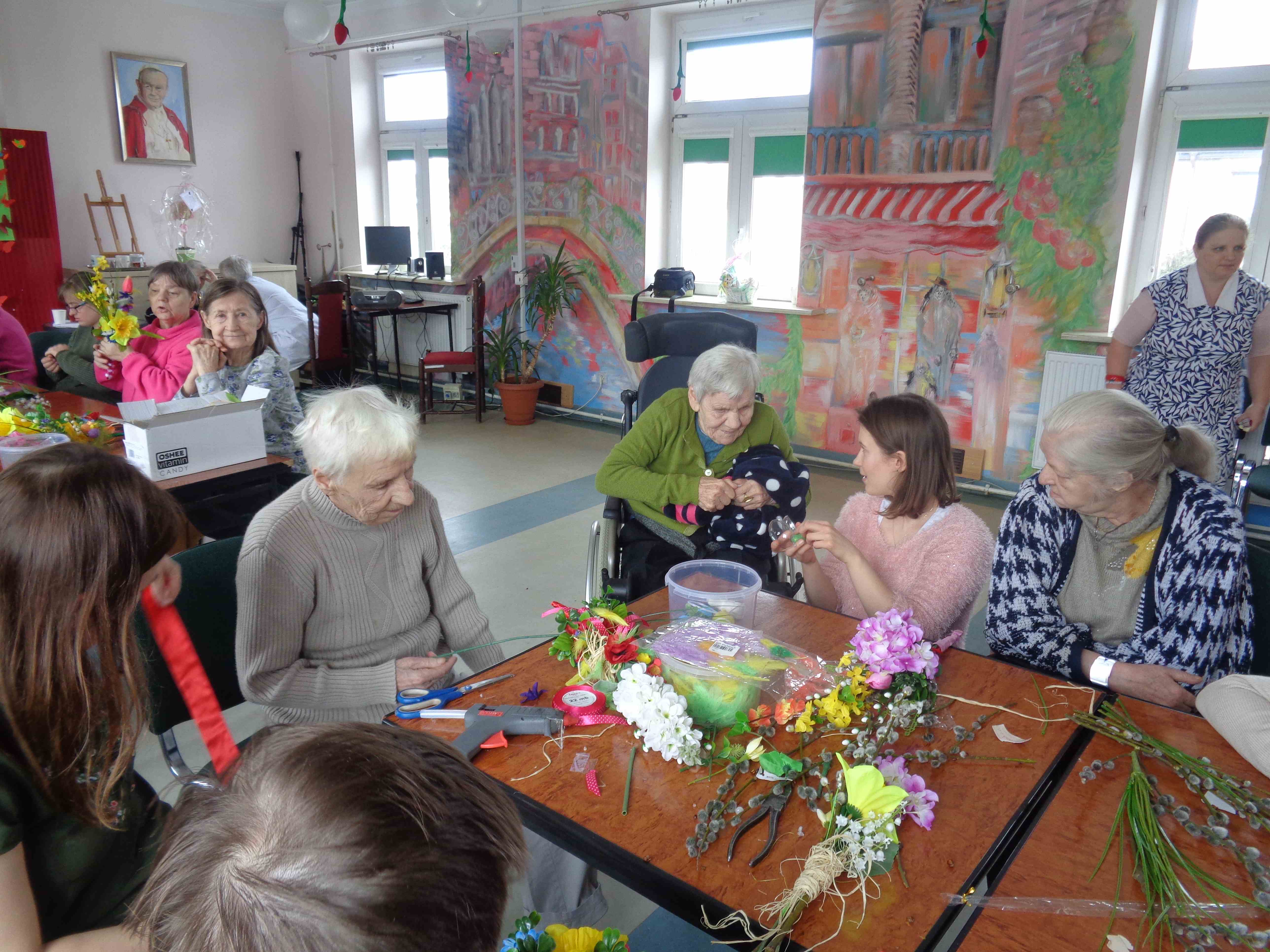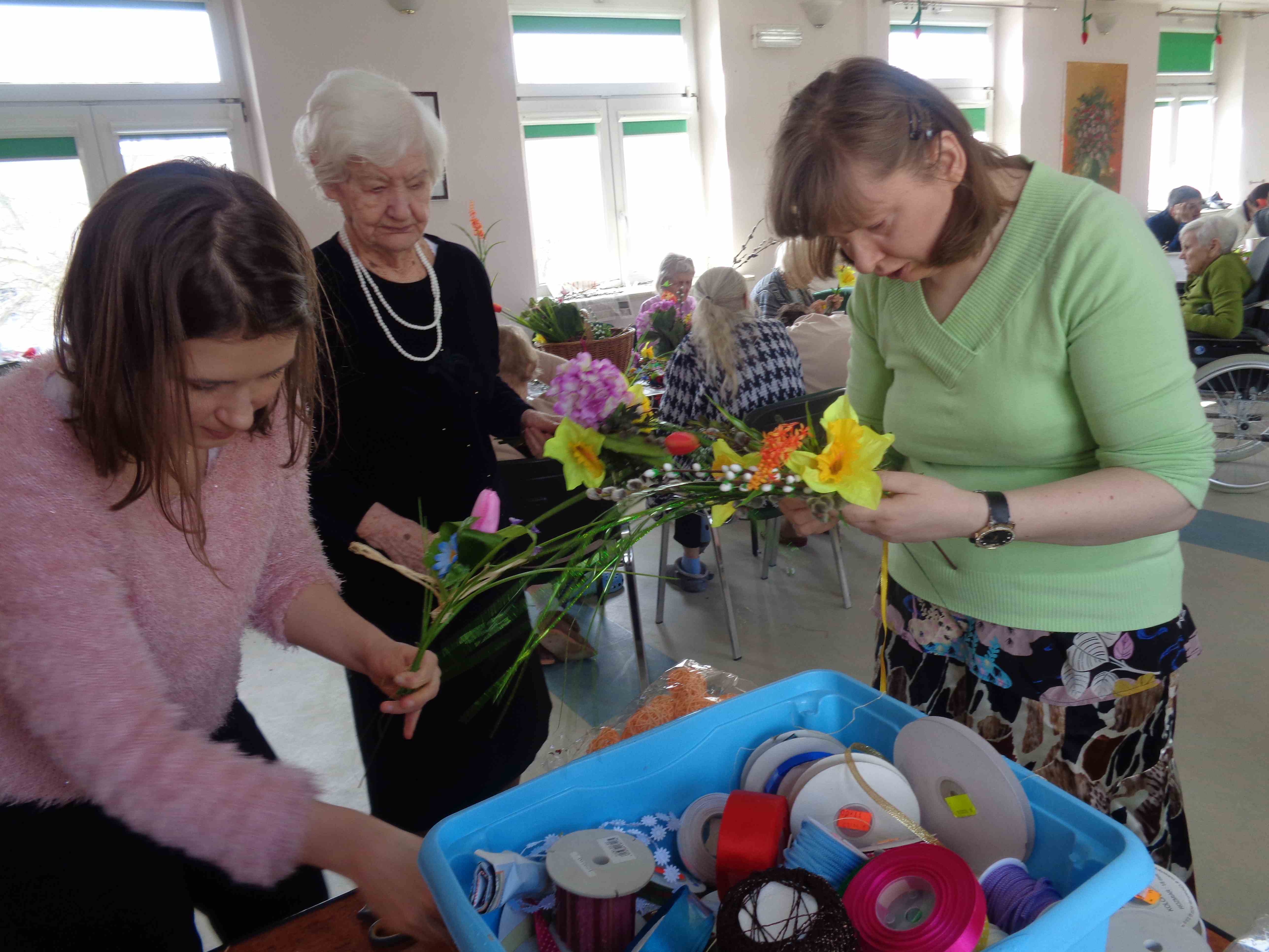 Kontynuujemy przygotowania do Świąt Wielkiej Nocy – tym razem braliśmy udział w zajęciach plastycznych z uczestnikami Środowiskowego Domu Samopomocy z ul. Kołłątaja, grupa przygotowywała palmy wielkanocne.