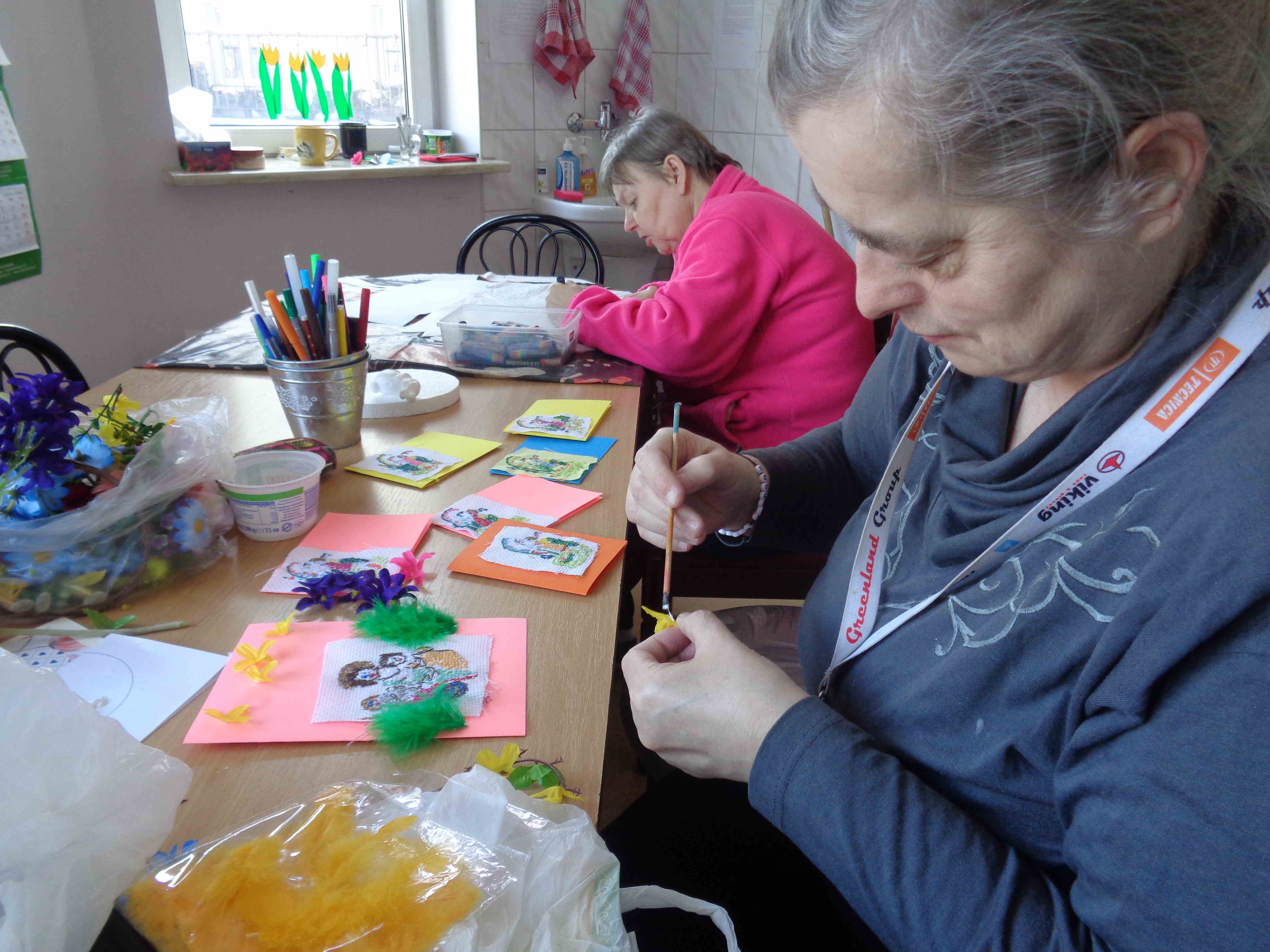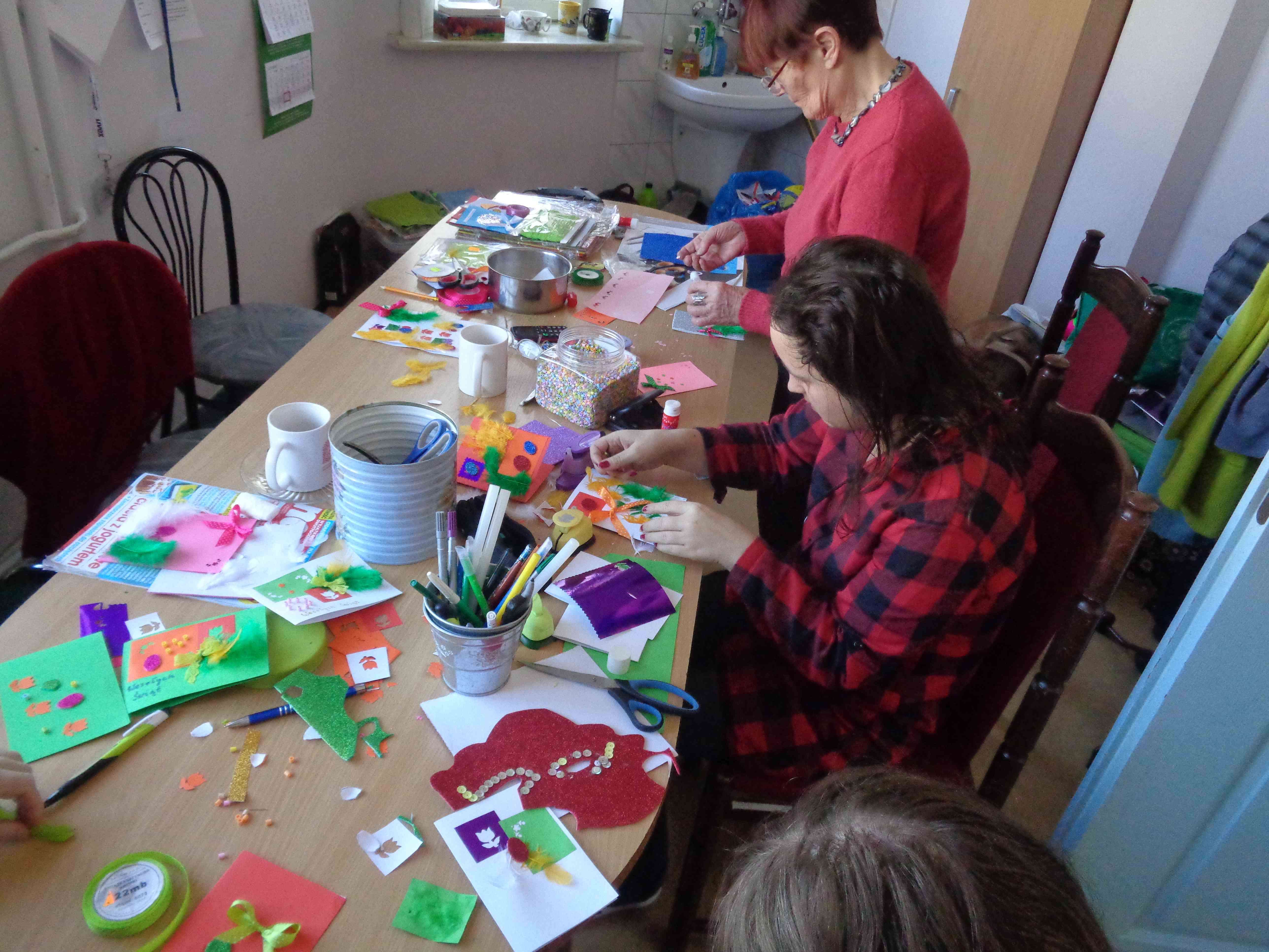 Mieszkanki pod kierunkiem terapeutek przygotowują kartki świąteczne – wszystkie techniki plastyczne są mile widziane! Efekt naszych prac wraz z życzeniami roześlemy do Domów Pomocy w całym województwie.