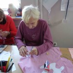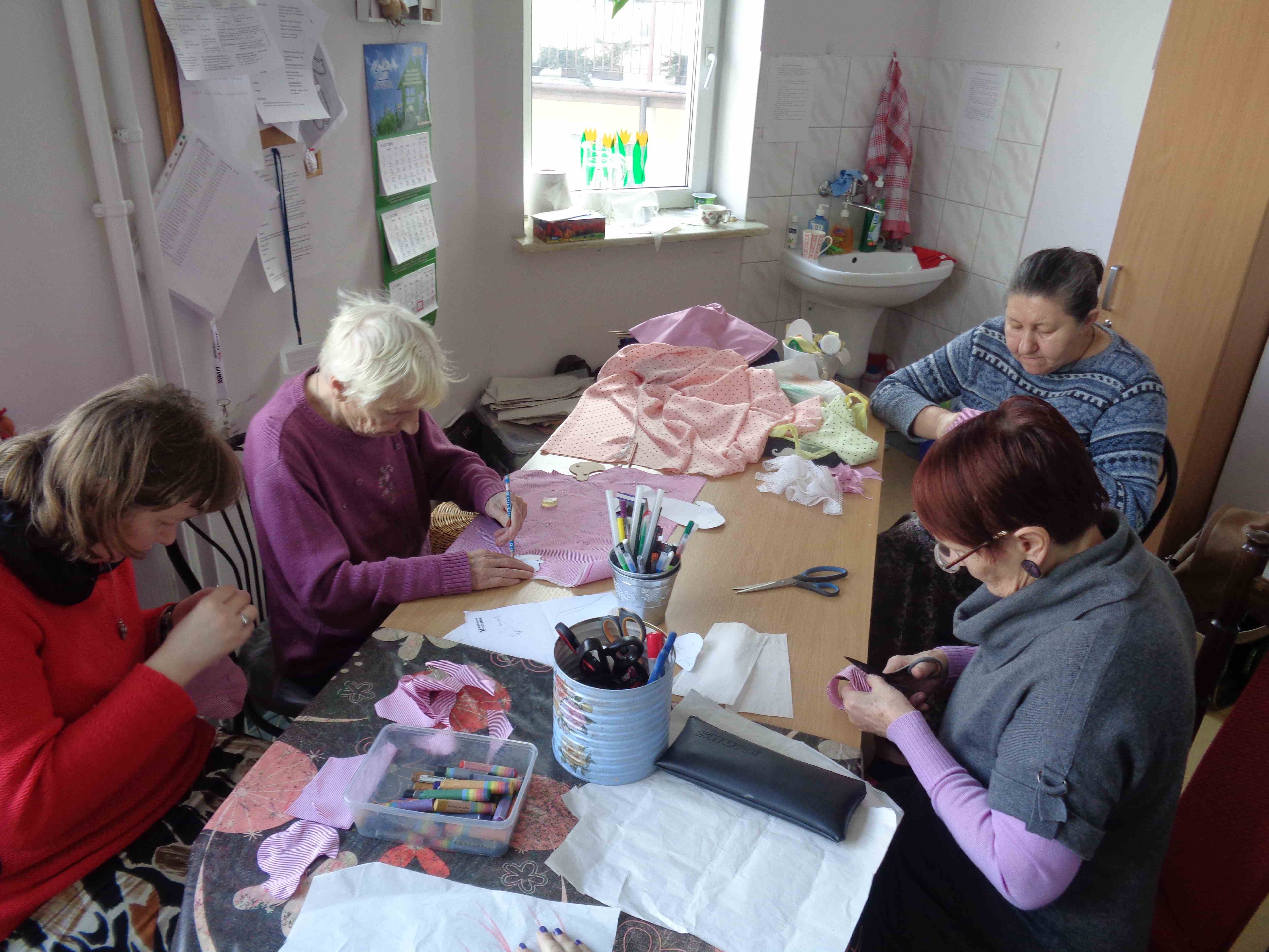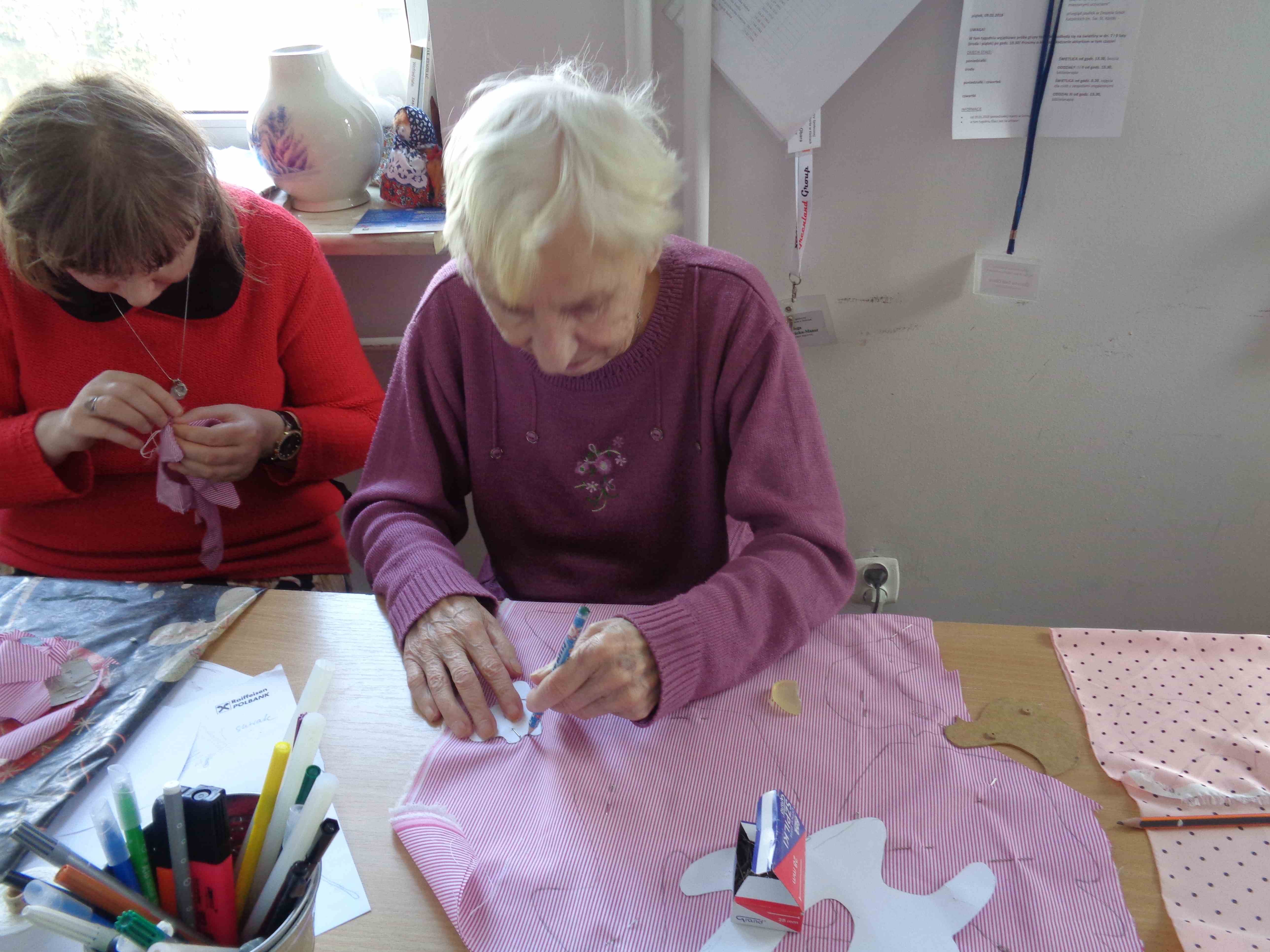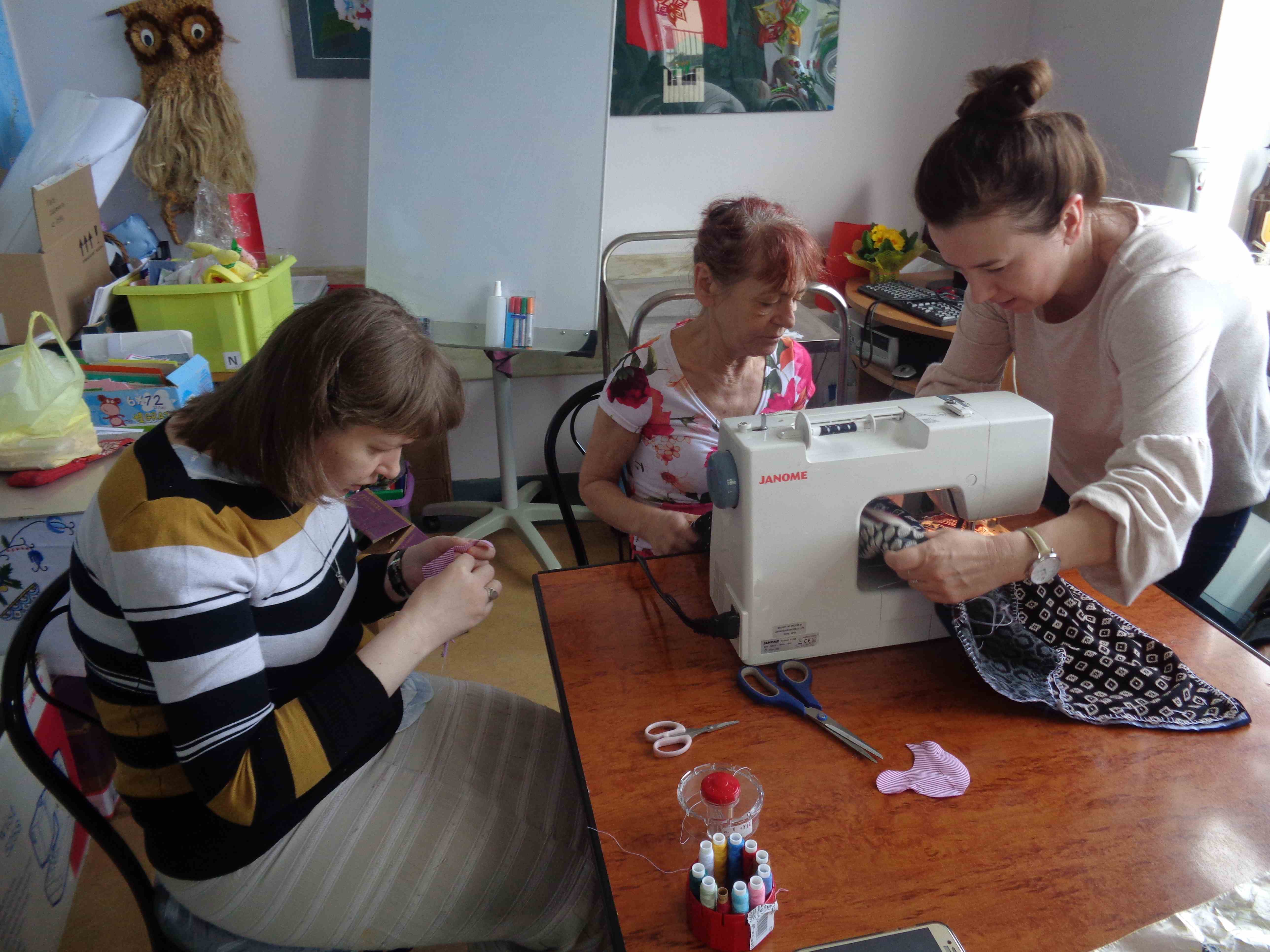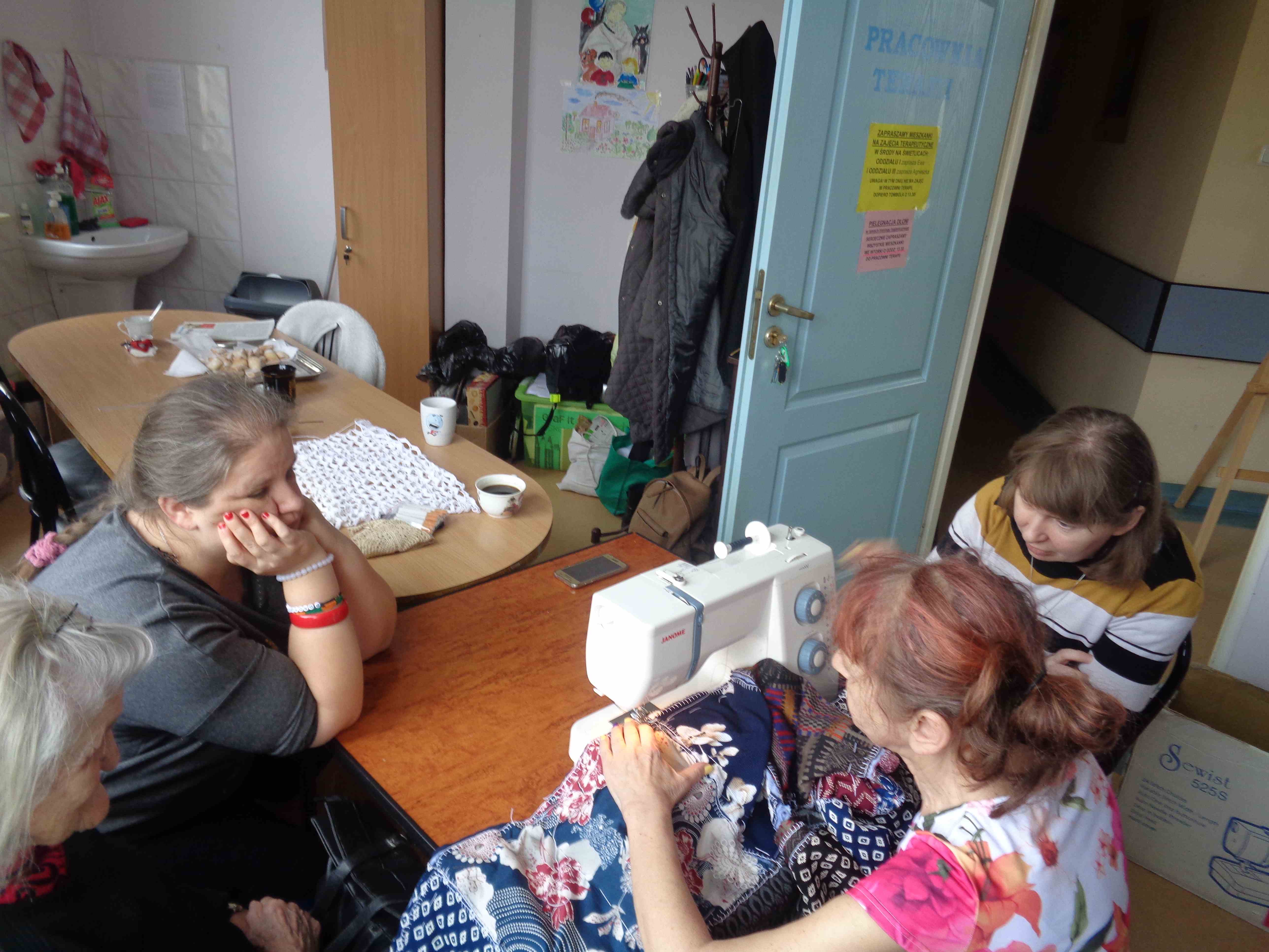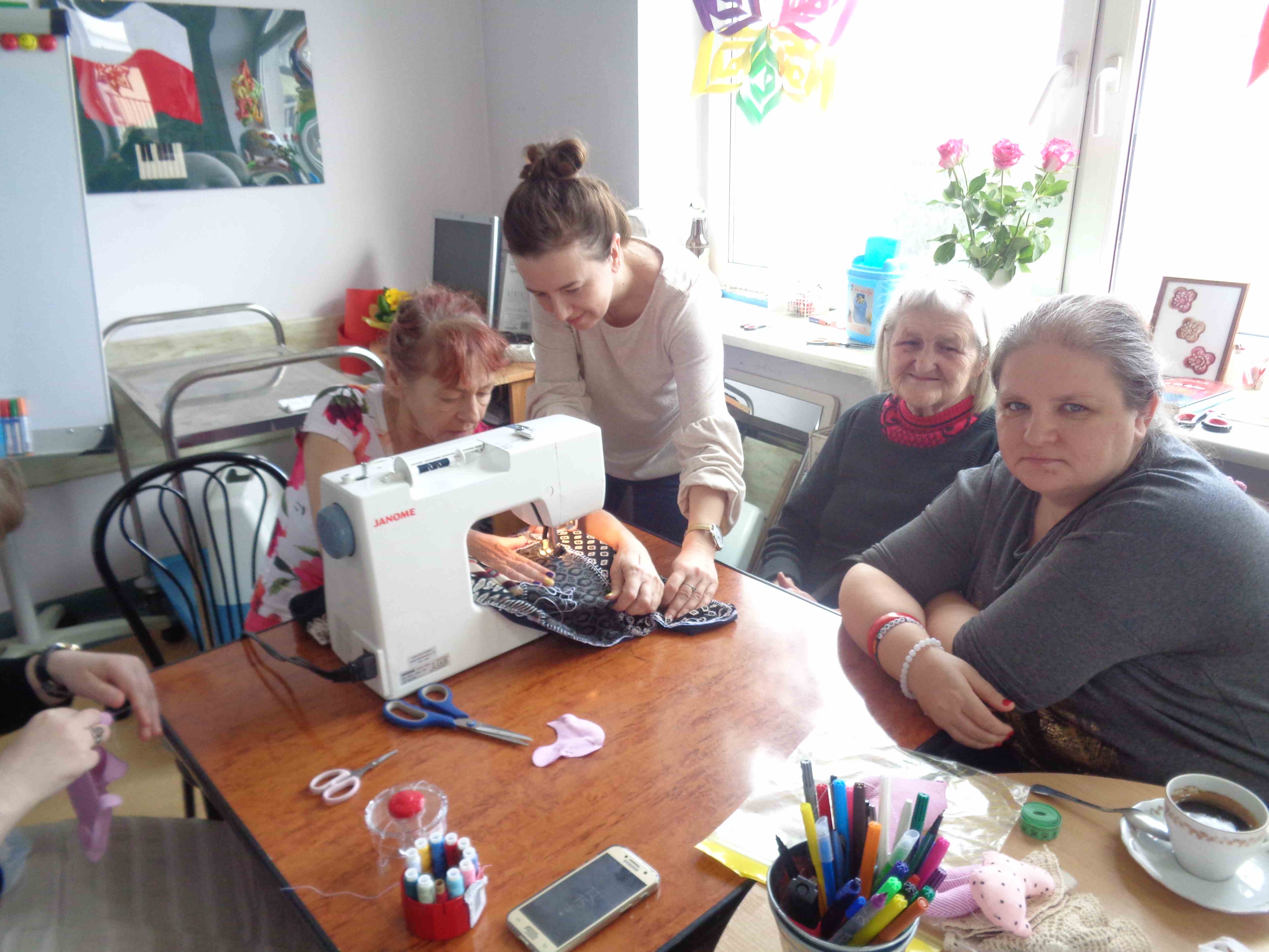 Na zajęciach krawieckich mieszkanki szyją m.in. wiosenne zajączki i kurki. Zdarzają się też większe prace – jedna z mieszkanek uszyła kapę!