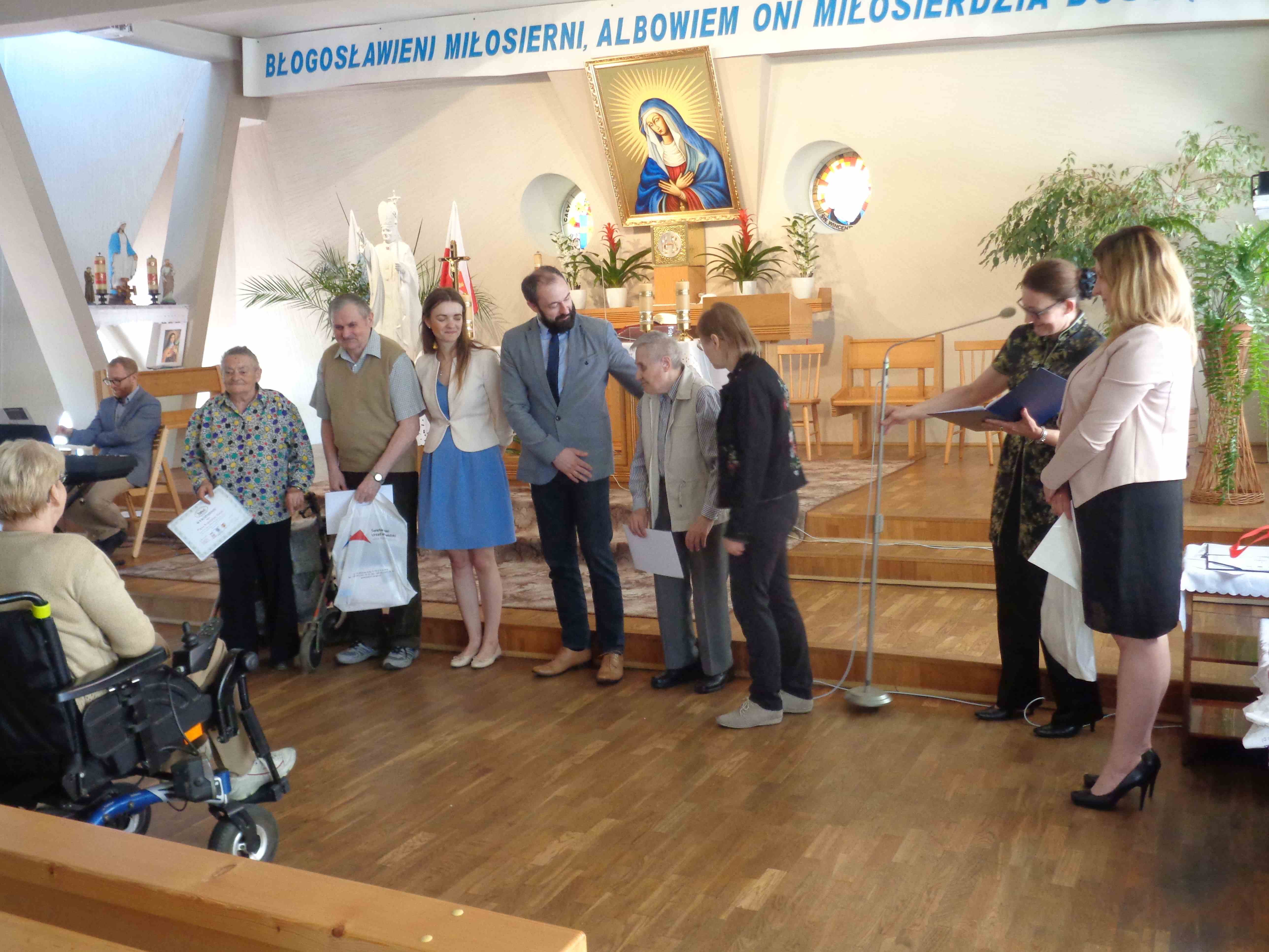 Odebraliśmy nagrody za udział w konkursie plastycznym pn. „Rodzina wiosną” zorganizowanym w DPS im. Jana Pawła II. Mieszkanka naszego Domu zajęła I miejsce w kategorii collage, druga z pań otrzymała wyróżnienie w tej samej kategorii. Prace na konkurs nadsyłają mieszkańcy DPS-ów z całego województwa, w tym roku jury przyznawało nagrody w dziedzinach: malarstwo, tkanina, collage oraz inne – prace z drewna. Podobnie jak w poprzednich edycjach konkursu wernisaż prac poprzedzały uroczystości: msza św. i koncert uczniów szkoły muzycznej.