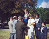 11.09.2000 – Wycieczka po Ponidziu – Chroberz, na schodach pałacu Wielopolskich |